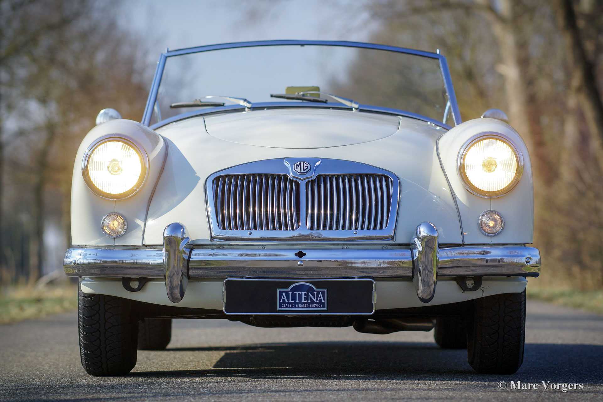 MG MGA Twin-Cam roadster, year 1958. Colour Old English White with a red leather interior and black carpet. This rare and fabulous MGA Twin-Cam roadster was shipped to Belgium as a CKD export model. The car was assembled in Belgium and it was sold new in the same country. It is said that the car was raced at Spa-Francorchamps in its early days. In 1960 the car was purchased by a renowned Dutch publisher of technical car books (Piet Olyslager). In 1969 the car was sold to a surgeon who drove the car until 1973. Then a restoration was planned, and the car was taken apart. The restoration never started, and the car was sold in parts to the current owner in 1983. Then a full restoration and overhaul followed. The body and chassis were stripped of paint, sand-blasted and epoxy coated. Then the car was painted in its original colour again. The Twin-Cam engine was fully overhauled, to high compression specifications, by specialist Peter Wood in England. The old Twin-Cam head was replaced by another unit, hence the later serial number. The other mechanicals were overhauled, the interior was restored and the ‘bright-work’ re-chromed. A photo reportage of the restoration is present!