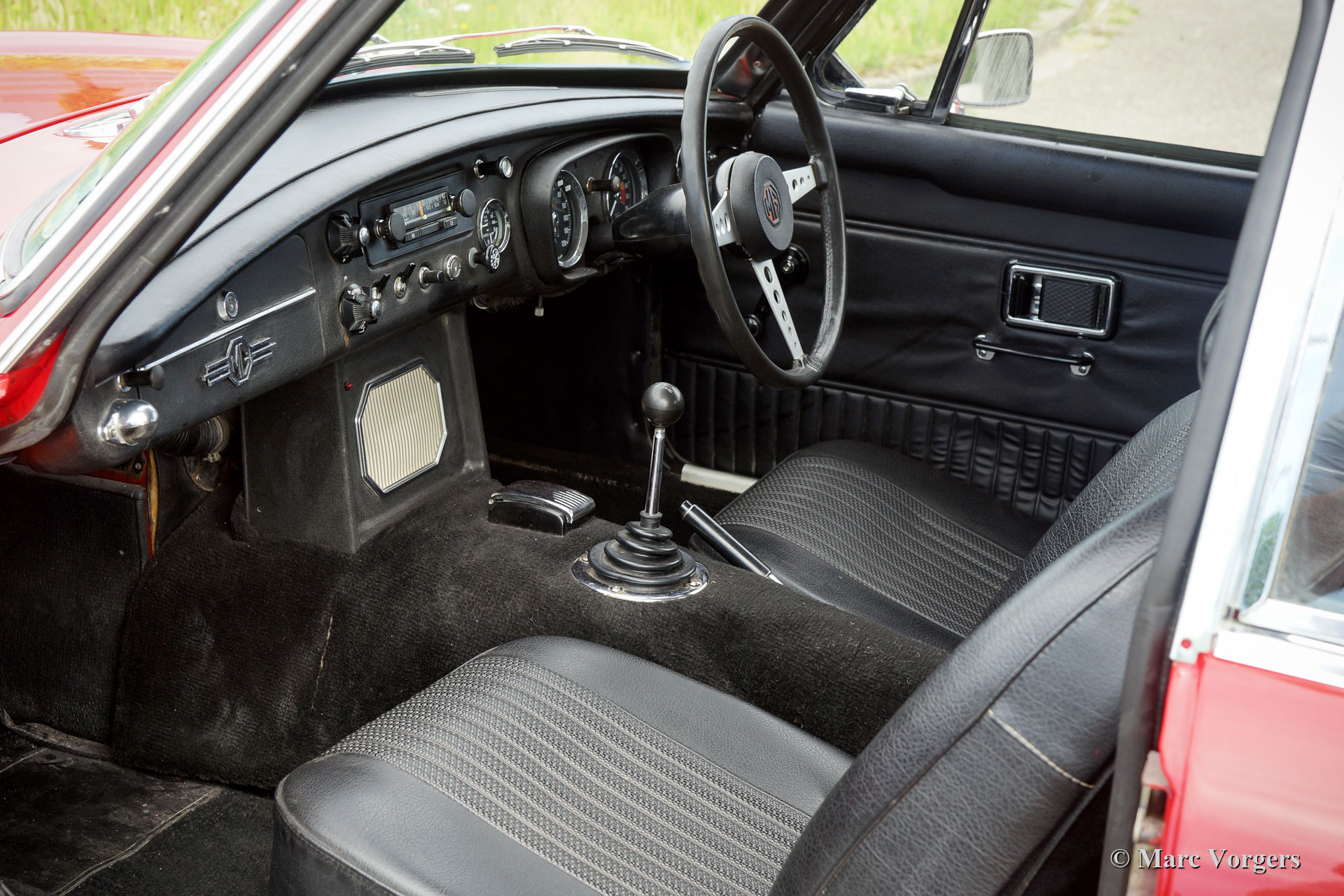 MG MGB GT, year 1970. Colour red with a black leathercloth interior and black carpet. This right-hand drive (RHD) MGB GT was sold new in the U.K. The last Dutch owner has cherished the car for many years. The car is serviced and maintained very well. This MGB GT is in very good condition with normal signs of use. The 1800 cc four-cylinder engine is a delight, especially in combination with the overdrive unit which reduces the engine revolutions at high speeds. This is a very reliable classic car to be enjoyed to the fullest. The car features all the original details and it is fitted with chrome wire wheels. The car can be converted quite easily to left-hand drive steering in our workshops. We have carried out this modification many times before, we can give you a quotation of the additional costs. This is a delightful and very original MGB GT!