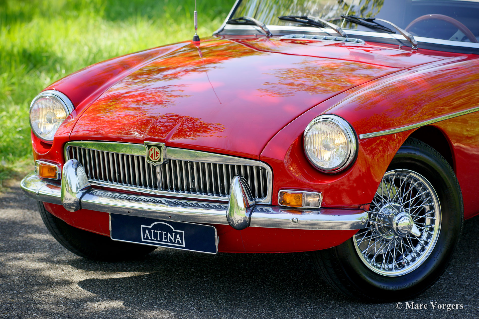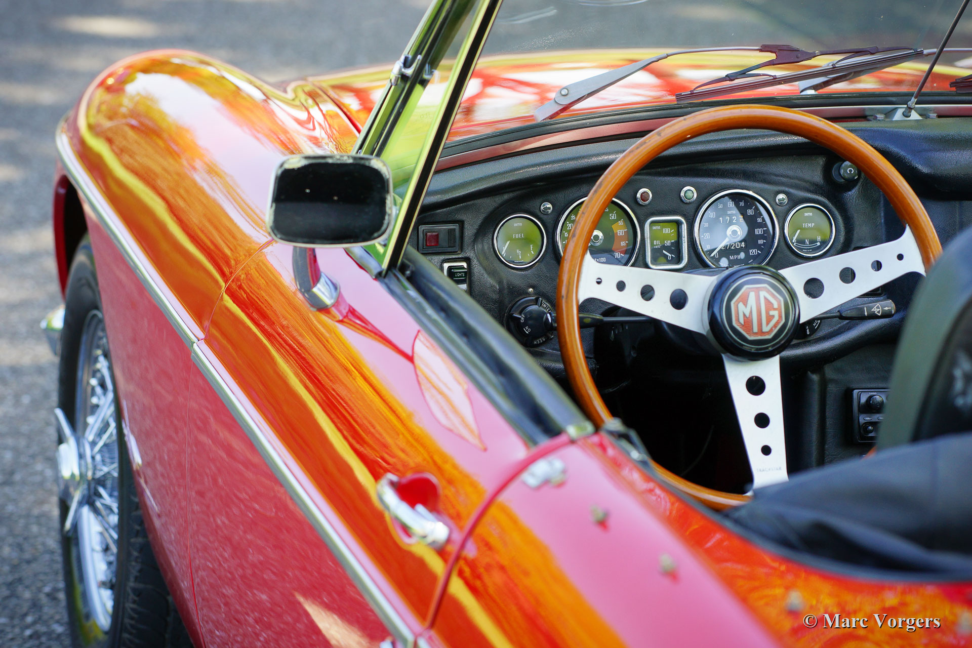 MG MGB roadster, year 1969. Exterior colour red combined with a black leather interior trimmed with black carpet. Black vinyl soft-top. This beautiful MGB roadster was imported from the USA to the Netherlands in the year 1993. A few years later, the car was extensively restored and overhauled. The work was completed in the late 1990s. Since the year 2000 the car is being cherished by the last owner! The MGr is in a very good driver condition and the car drives perfectly. This MGB shows slight signs of previous use and was very well serviced. This fine MGB features chrome wire wheels and a wonderful sports steering wheel with a wood rim and MG logo in the centre. The bodywork shows a very good panel fit, and the underside of the bodywork is clean and well detailed. The MGB roadster is one of the most practical and easy to maintain British open sports cars. The car is very suitable to enjoy weekend trips, B&B / hotel holiday trips, and historic touring (rally) events. The price / quality level of this MGB is excellent, be quick, because the car will sell quickly!