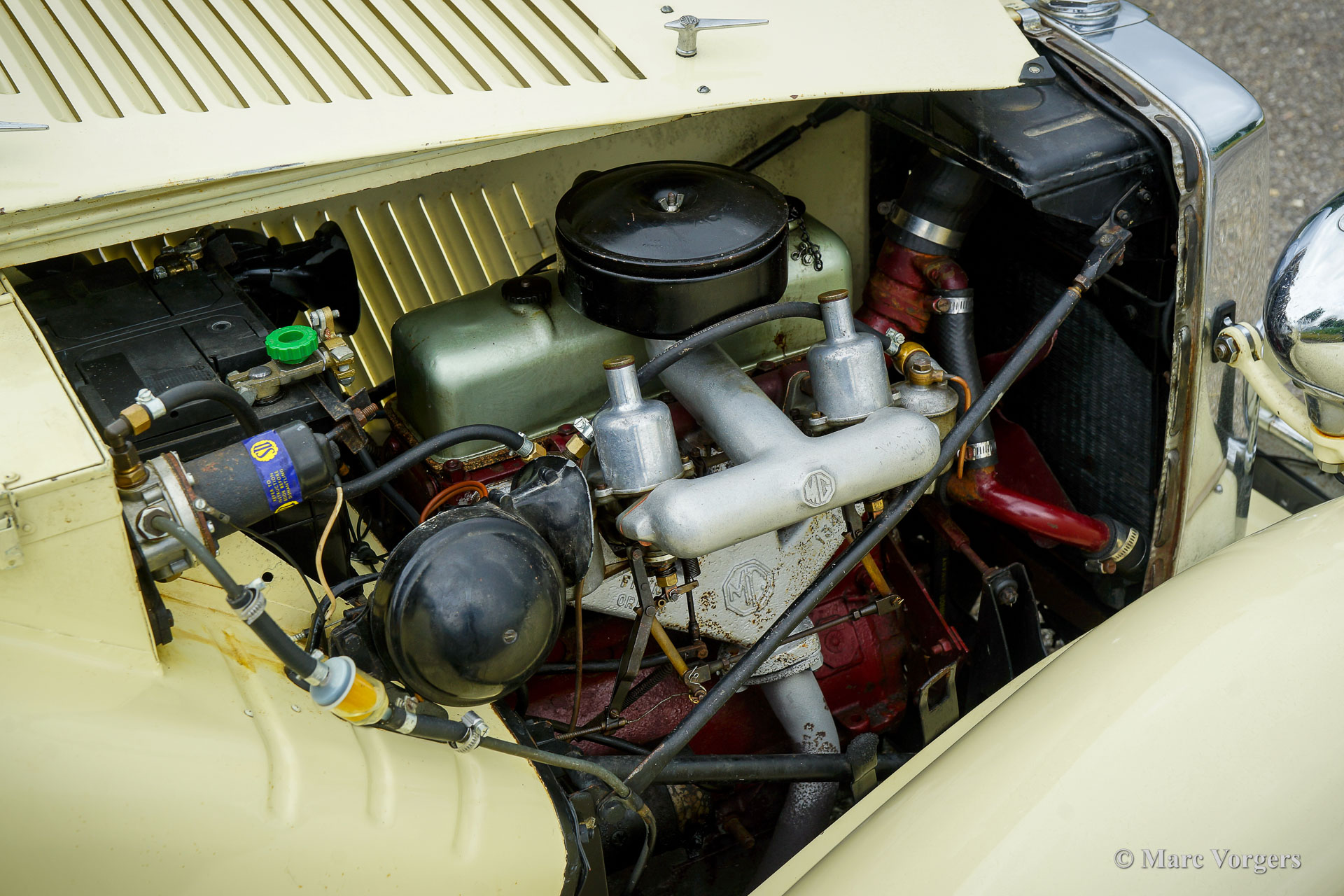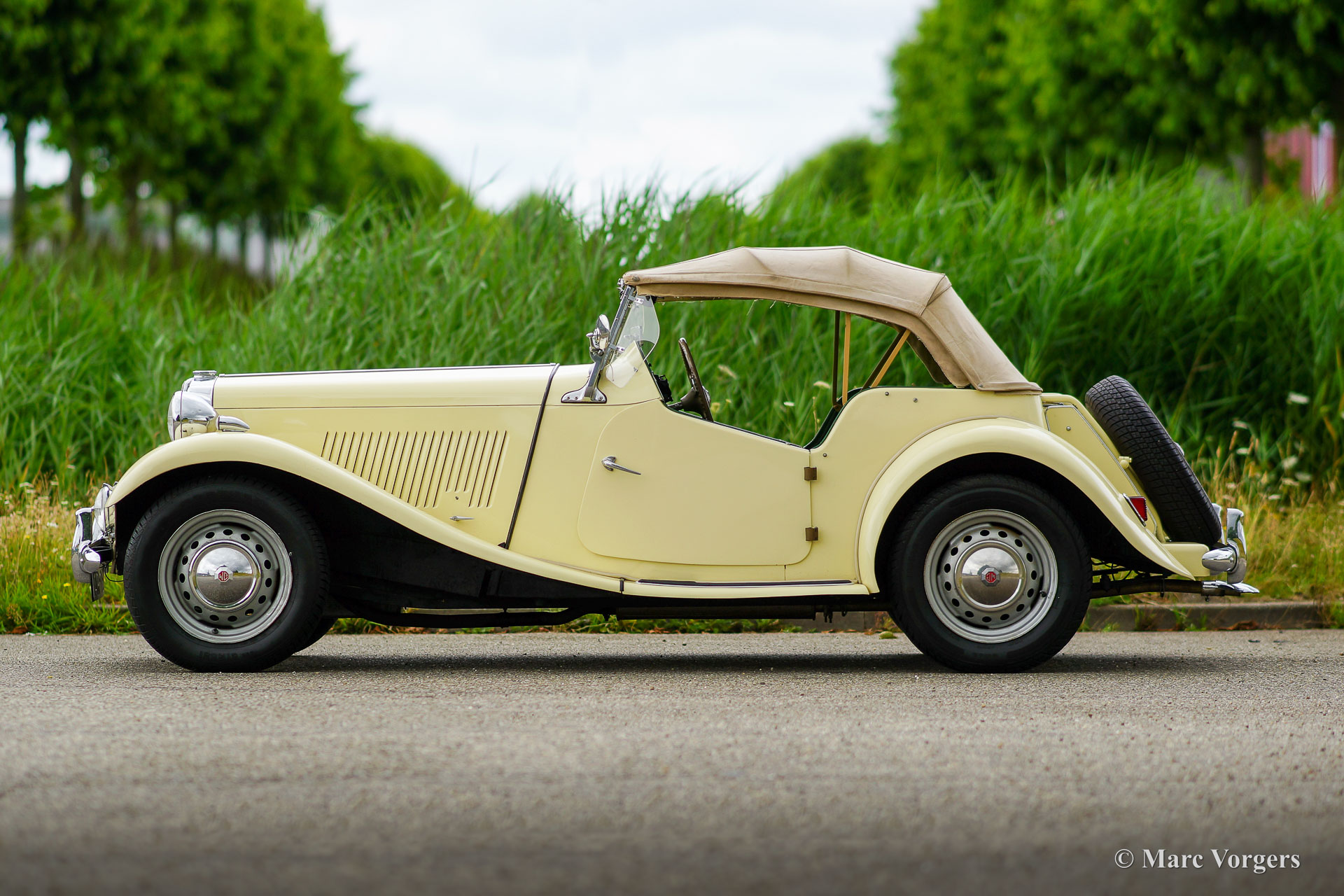 The MG TD was the successor of the MG TC, the British sports car that stole the hearts of the American soldiers returning to their country. Like the MG TC, America was the most important market for the TD. Chassis and body of the TD were largely similar to the TC. But the TD had a rack and pinion steering-gear, coil springs (instead of the leaf springs) and an independent wheel suspension in the front. The wings were different in form, as the large 19-inch wire wheels in the TD gave way to 15-inch wheels. A Mk II version was introduced in 1950, and was built simultaneously with the Mk I. The Mk II had a more powerful engine and a "power bulge" on the engine valve on the right. The MG TD was in production until 1953 and was replaced by the MG TF.