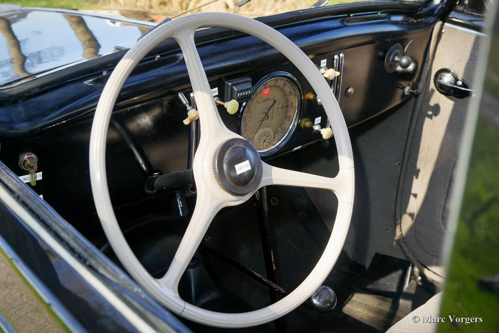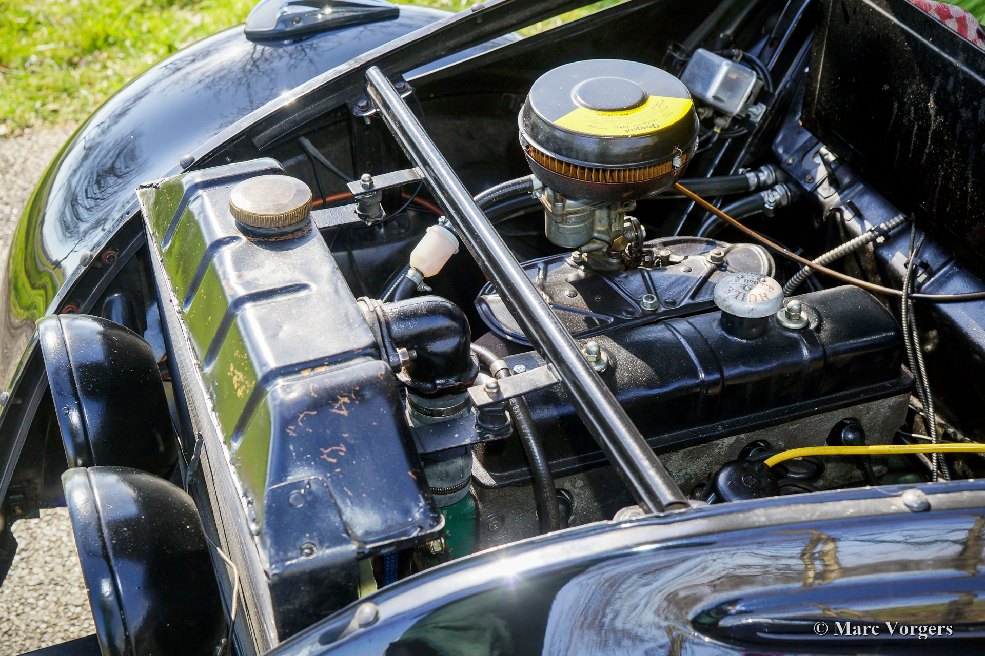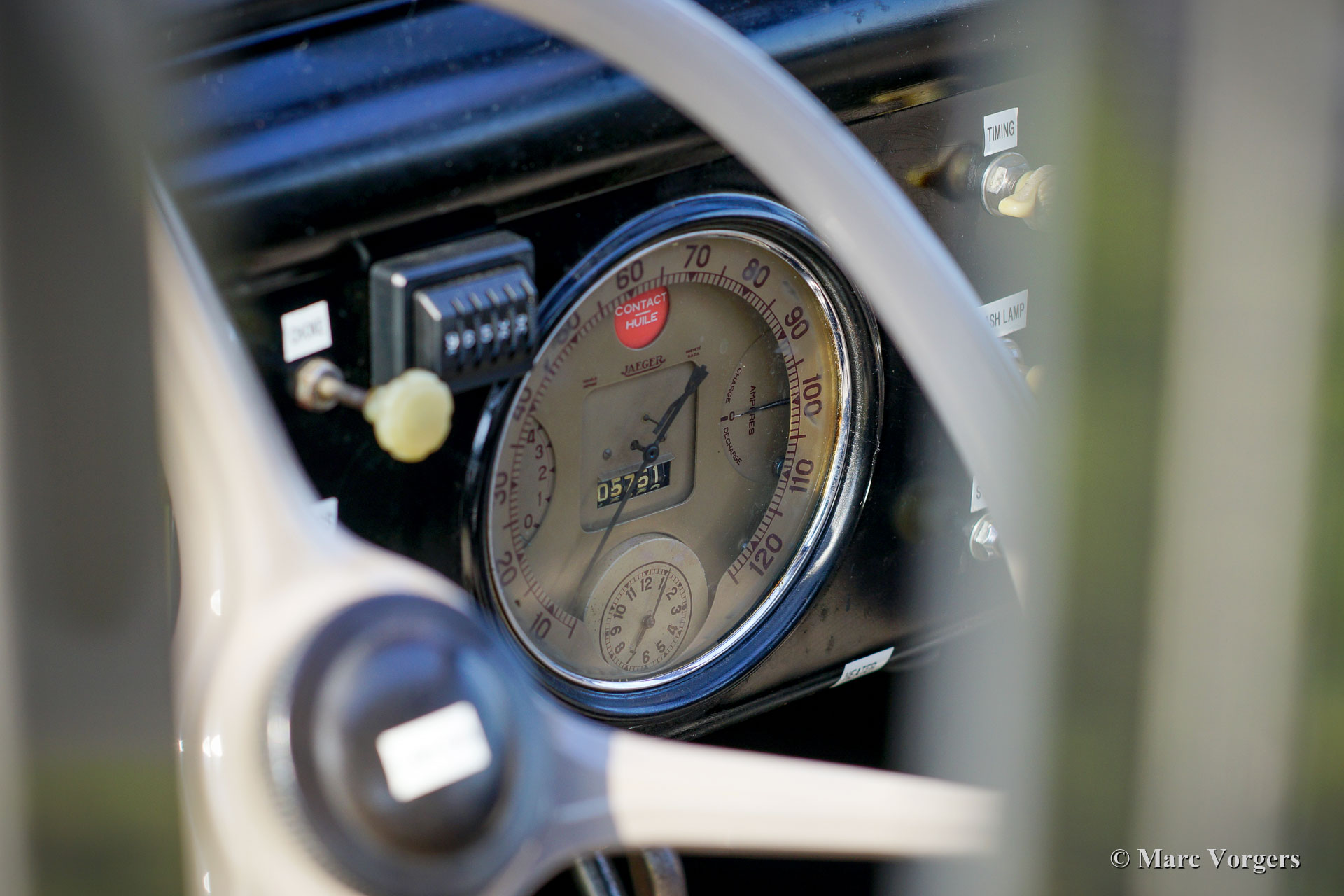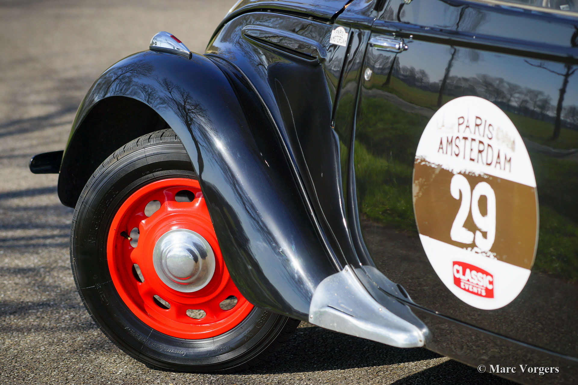 Peugeot 202 saloon, year 1940. Exterior colour black with wheels painted red. Grey melange interior upholstery and black rubber protective mats. The Peugeot 202 is a compact version of the 402, both models were presented in 1939 and featured a wonderful aerodynamic design. The 202 was available as four-door saloon (Berline), four-door cabriolet (decapotabe) and two-door drophead Coupé. The 202 is fitted with a four-cylinder 1133 cc engine and a three-speed synchronised gearbox with column change. The presented Peugeot 202 is in a very good condition, the bodywork is in wonderful condition, the interior was newly upholstered in the past, the very nice original dashboard gauges are working. The car shows beautiful original details, and it features an original sliding sunroof and a roof rack. The car is fully up-to-date and was serviced by Altena Classic Service. In the hands of the last owner the Peugeot 202 participated in historic pre-war car events like the 2019 Paris-Amsterdam. This splendid Peugeot 202 is a delightful driver car and a fantastic find for the pre-war car enthusiast.