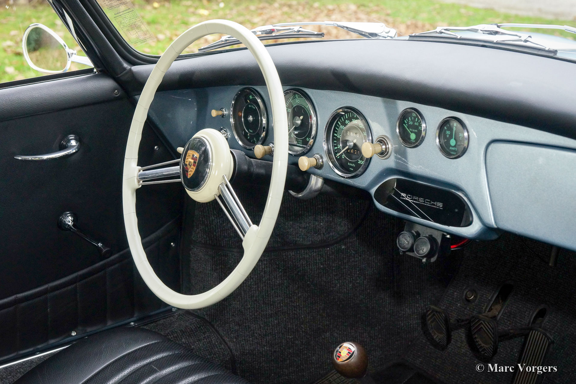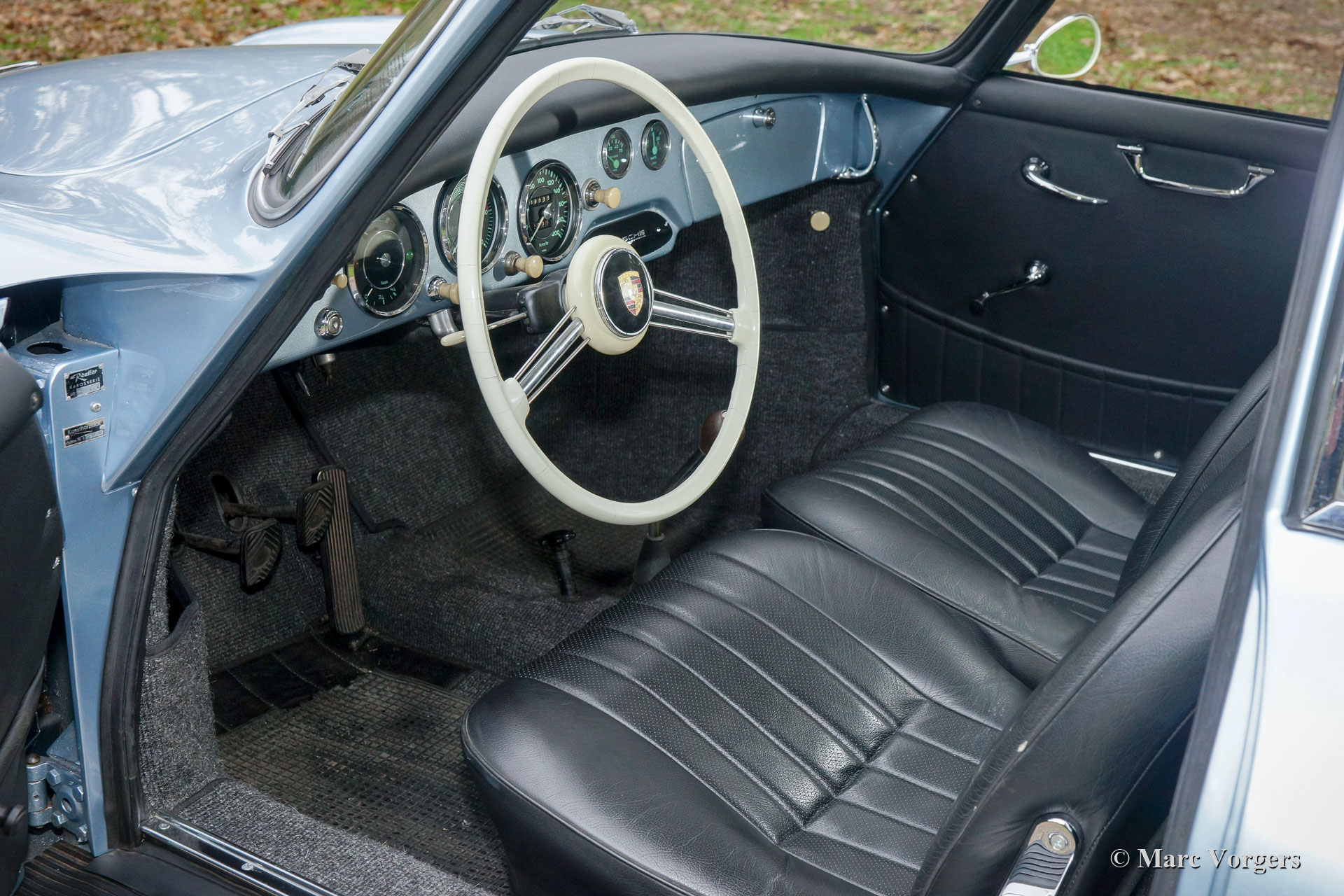 Porsche 356 A T2 1600 S, year 1958. Matching numbers. Colour pale blue metallic combined with a black leather interior and dark grey carpet. This fabulous Porsche 356 A was extensively restored to TOP condition, of course the engine and the gearbox were overhauled in the process. The cylinder capacity was enlarged from 1582 cc. to 1750 cc, the engine now delivers 101 bhp. The work on the engine was carried out very recent, the engine is not fully run-in yet. Invoices, giving a clear view on the work that has been carried out, are present. This is a highly desirable Porsche 356, a splendid driver and a classic in superb top condition!