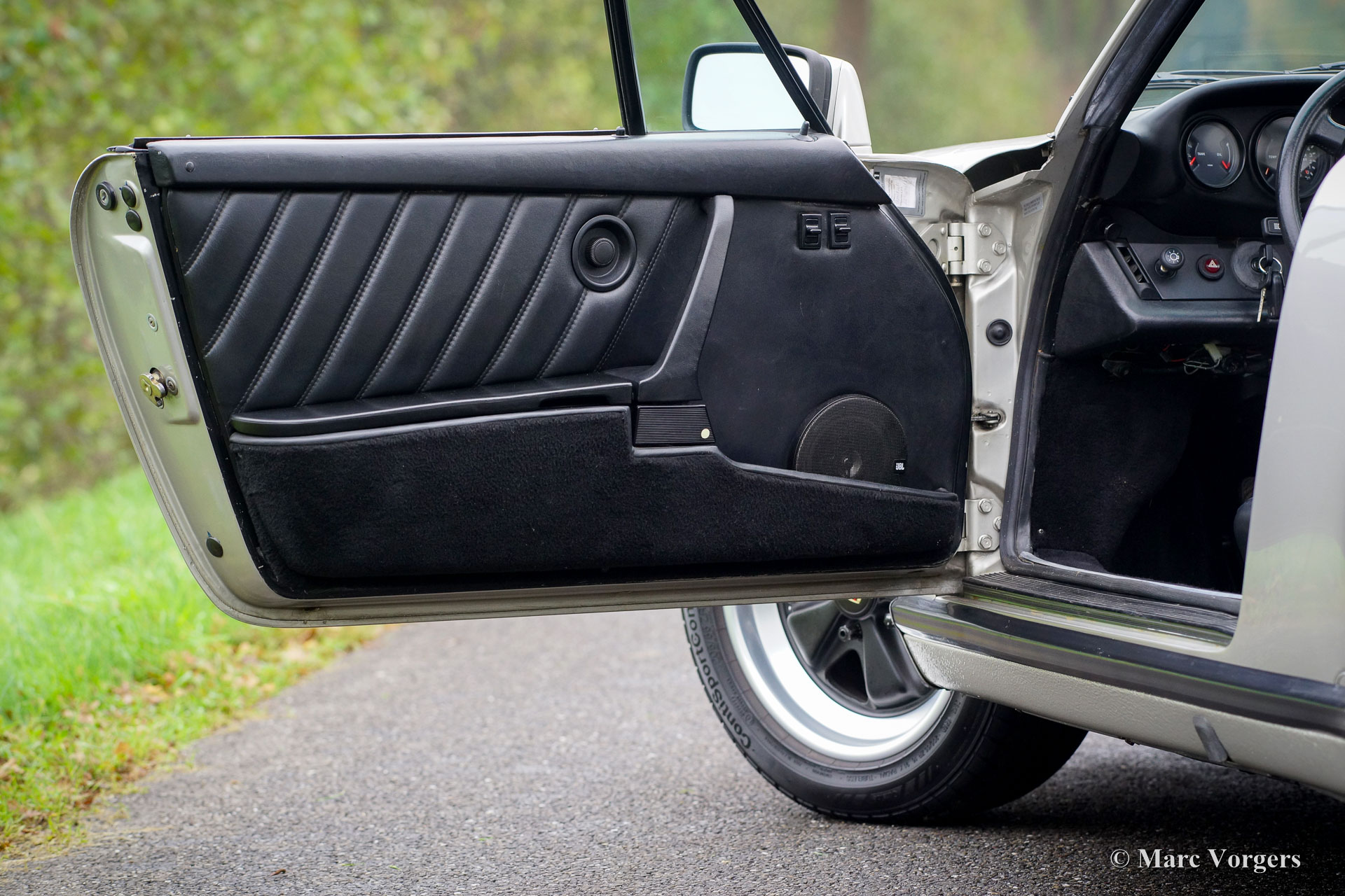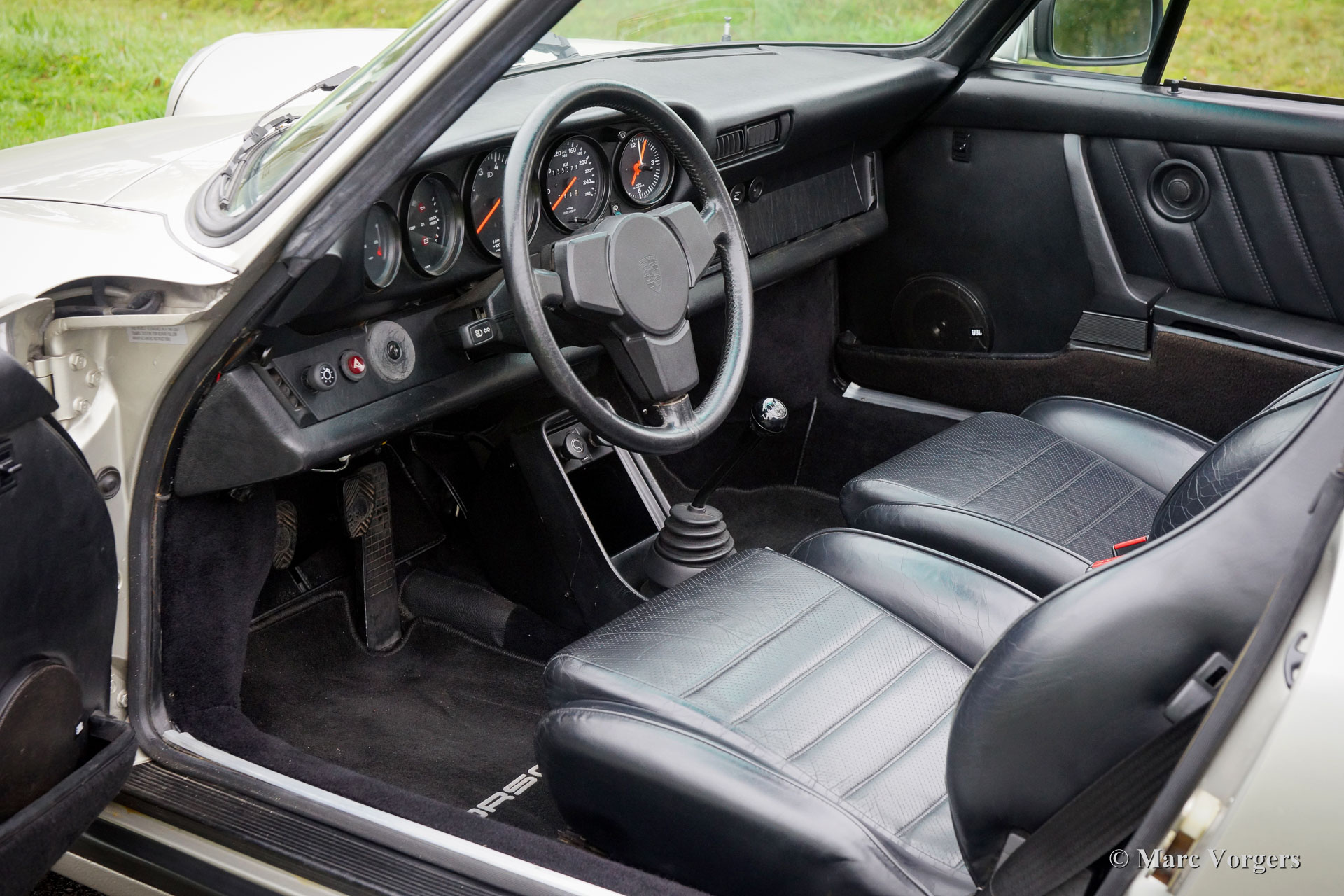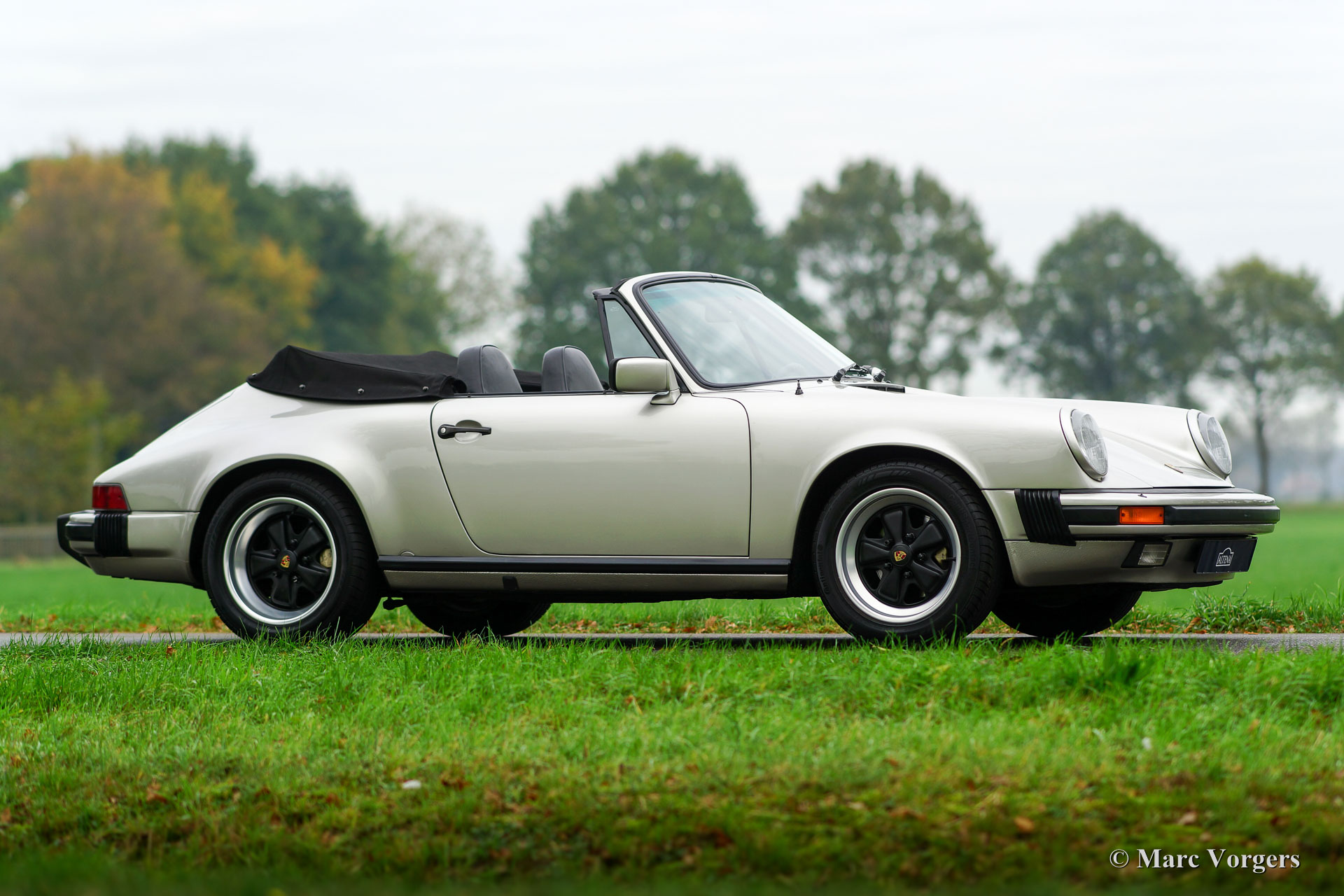 Porsche 911 Carrera 3.2 cabriolet, year 1984. Chassis number WPOZZZ91ZES1707XX with the original engine and gearbox: ‘matching numbers’. Colour ‘Zinn Metallic’ (Porsche colour code 956) with a black leather interior and black carpet. Factory original; ‘matching colours’. Black mohair soft-top, hood-cover and tonneau cover. This magnificent Porsche 911 Carrera 3.2 was sold new in the USA. In the year 1997 the car was imported to the Netherlands where it was adapted to European specifications including the fitment of a km/h odo/speedometer. From new this fine 911 has driven 105.000 miles. This is a very early 1984 Carrera 3.2 in very good to excellent original condition! The car was punctually serviced by Porsche specialists over the years. All the invoices and the service booklet are present. The car is very original; factory stickers are still in place as are the original 911 Turbo seats. Recently the light alloy Fuchs wheels have been superbly restored! The car is fitted with a certified alarm-system. This is a very original and perfectly driving Porsche 911 3.2 cabriolet!