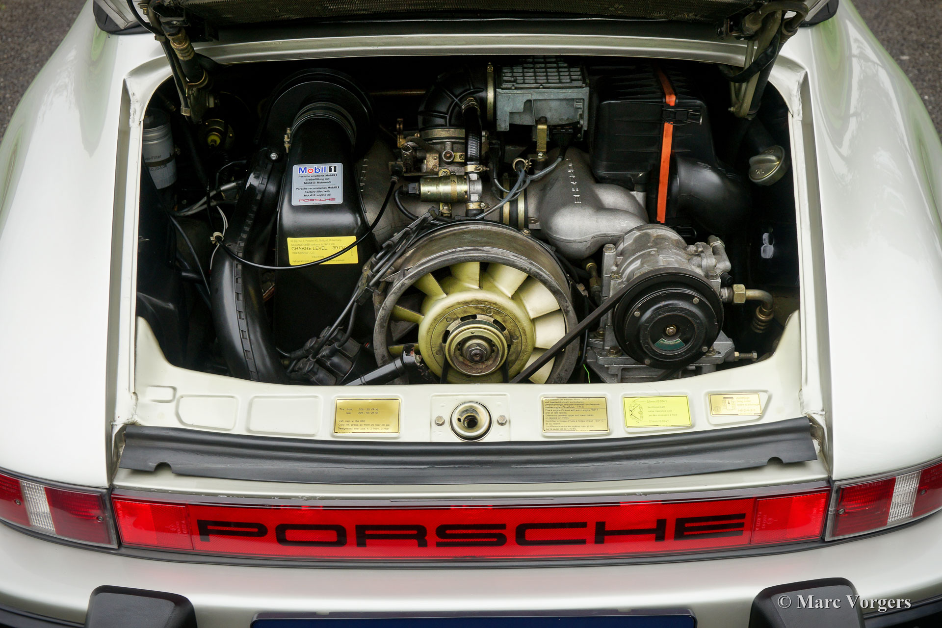 The Porsche 911 was designed with a steel unitary bodywork construction in which the engine was located behind the rear axle. The 911 engine is a air-cooled six cylinder "boxer" engine. The suspension of the Porsche 911 was independent from the start as was a five speed gearbox with floor shift.