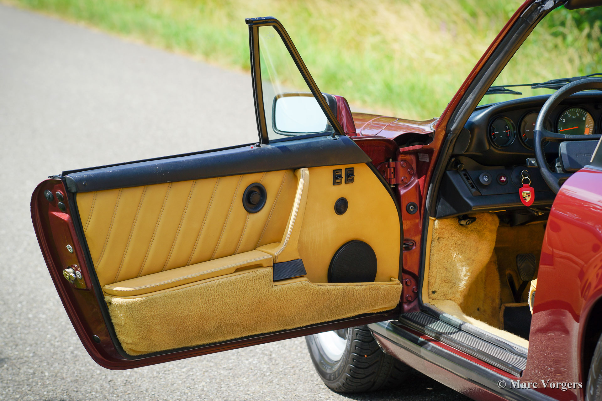 Porsche 911 Carrera 3.2 Targa, year 1985. Colour ‘Granat Rot’ metallic combined with a beige leather interior and beige carpet. Black Targa top. This fantastic Porsche 911 Carrera 3.2 Targa was sold new in San Francisco in the USA. The car was imported to the Netherlands when it had driven 123.419 miles from new (Carfax document is present to confirm this). At a computed 214.000 kilometres the car was given a European speedometer / odometer reading in KM/H. Now the car has driven 221.100 kilometres from new. This Porsche 911 is in very good and fully original condition. The car was always serviced by a make specialist, the service book is filled out and dealer stamped correctly. The complete service history is known and documented with invoices, also a Porsche ‘Geburtskunde’ is present. This fine 911 is fitted with 16-inch Fuchs alloy wheels shod with Michelin tyres, tinted glass, a factory fitted Blaupunkt Monterey radio, central locking and sport / comfort seats. The original spare wheel and original toolkit are present. The Targa version of the Porsche 911 is a very desirable model featuring a fantastic open top driving experience and a coupé like driving experience with the roof panel in place. The sun on your head and the soundtrack of the rugged 3.2 litre flat-six engine playing in your ears!