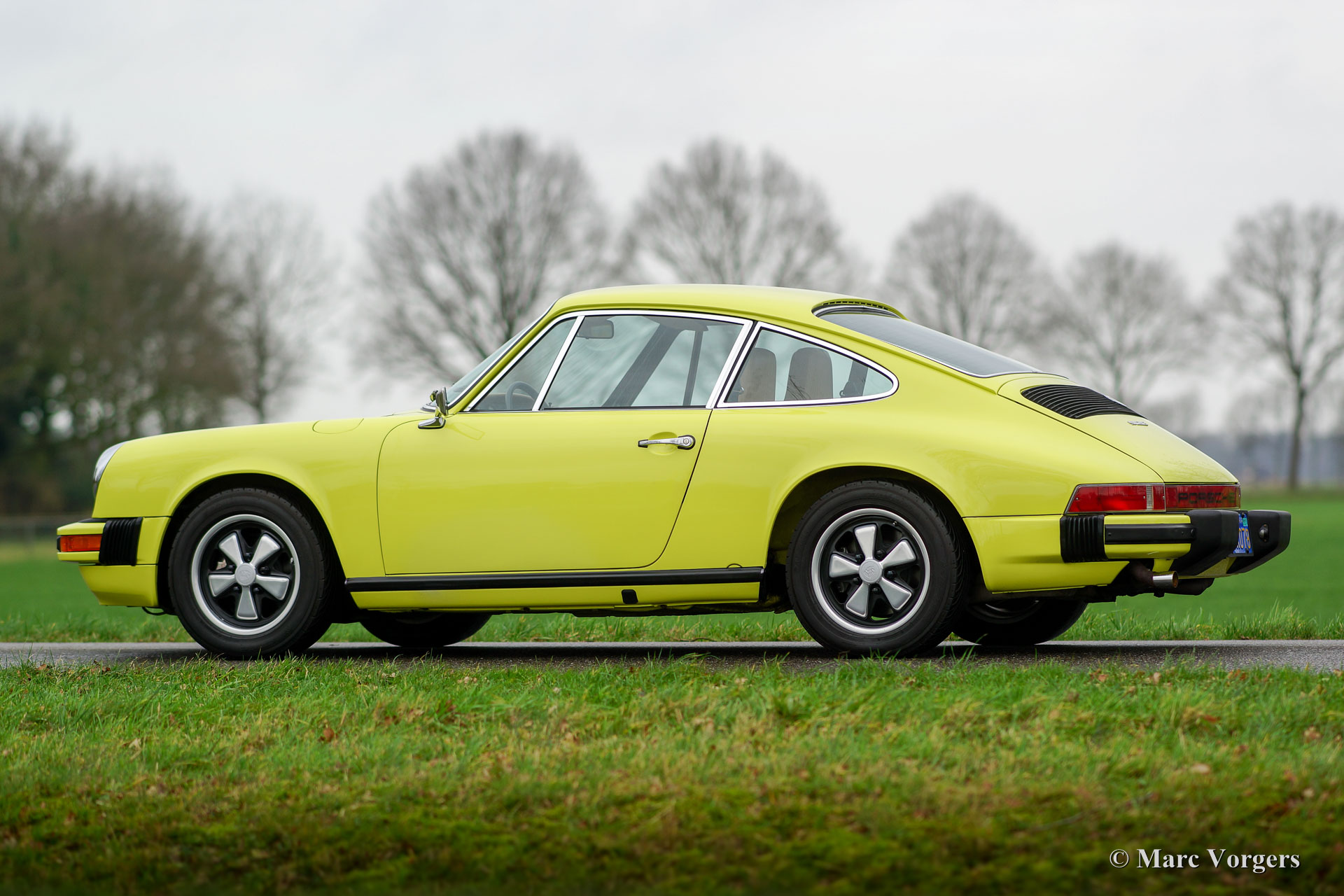 Porsche 912 E, year 1975. Colour lemon-yellow (colour-code 117-9-1) with a dark beige leatherette interior, dark beige carpet and beige protective mats with 912 inscriptions. This wonderful Porsche 912 E was imported to the Netherlands from California, USA. The automobile was sold new in Jacksonville, Florida. In the USA the car was beautifully and extensively restored; the car is in superb top condition and the car shows beautiful original details. The Porsche 912 E (Einspritz / Injection) is a rare Porsche model, only 2000 examples were built in the years 1975 and 1976. The car features 15-inch Fuchs alloy wheels and the original tool-set is present. This is a top-example!
