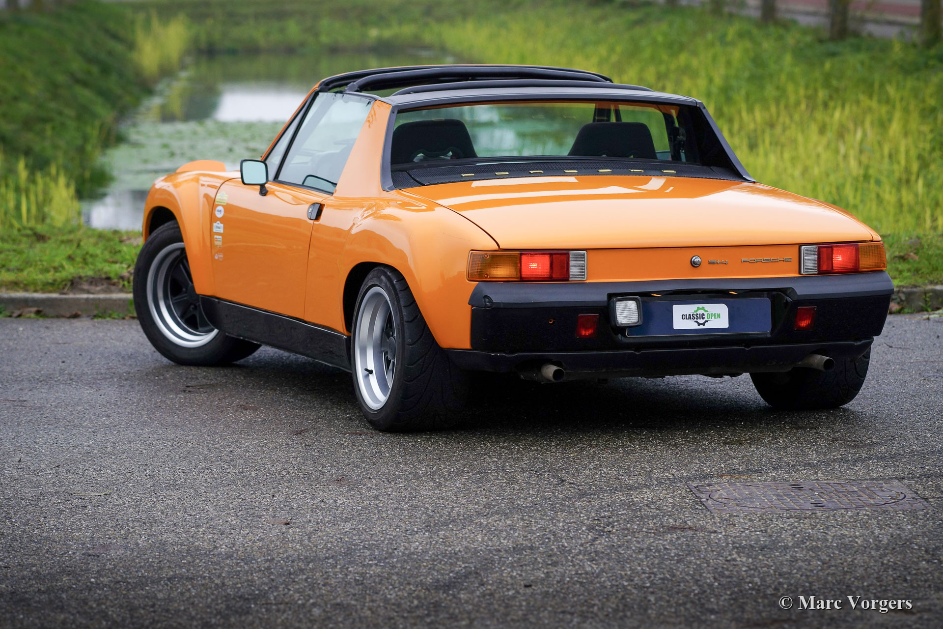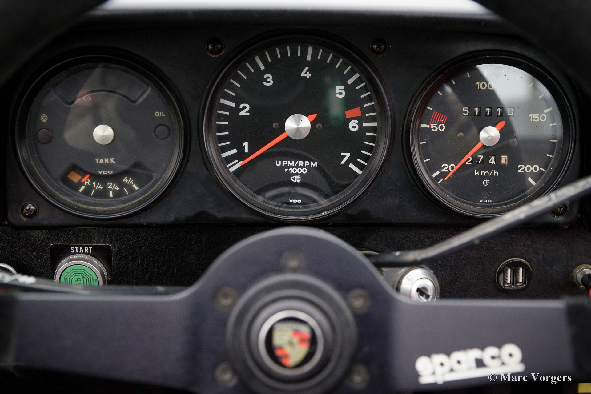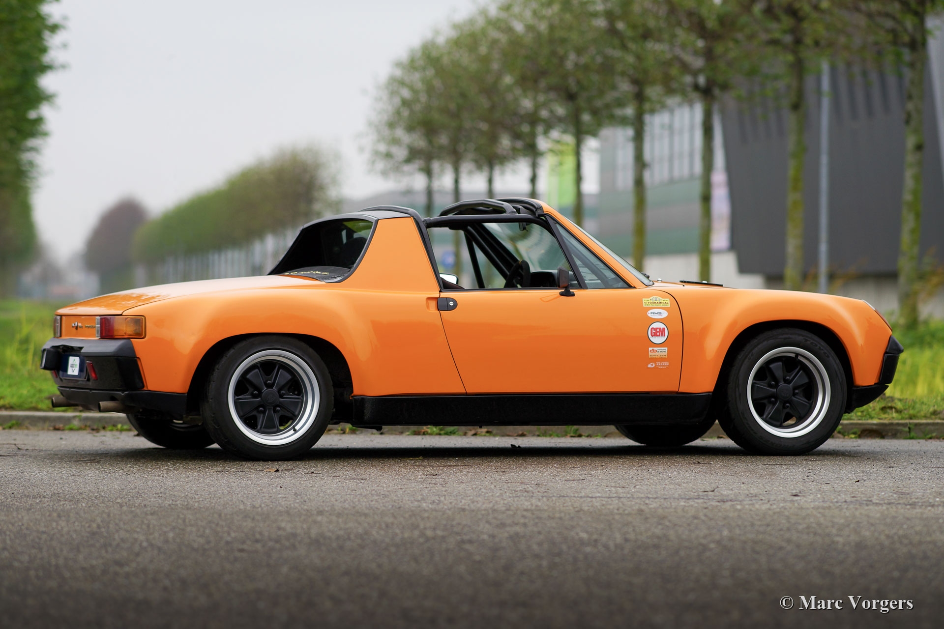 Porsche 914 2.0 ‘Wide Body‘, year 1972. Colour Signal Orange combined with a black cloth interior. The bodywork of this fantastic Porsche 914 2.0 was modified to ‘Wide Body’ specifications in the past. The extended fenders / wings were made of sheet metal. This Porsche 914 looks extremely sporty and purposeful with its low stance and wonderful wide Fuchs style wheels shod with 225/50-15 tires at the front, and 245/40-15 tires at the back. The looks are not just show, the 2 litre 135 bhp four-cylinder boxer engine was tuned and fitted with an electric petrol injection system. To handle the additional power, the car was fitted with a 5-speed ‘dog-leg’ gearbox, a limited-slip differential, Willwood vented disc brakes, and a hydraulic handbrake. The interior was uprated with a roll cage, Cobra sports bucket seats, 4-point safety harnesses, a Sparco sports steering wheel, a start button and extra dashboard gauges. The car features a ‘Targa’ roof of which the panel can be taken out and stowed away in the rear trunk. This is a very sporty and desirable Porsche 914 ‘Wide Body’ in good condition. A fantastic driver car and an ideal sports car to enter historic rally events! The car is currently registered in Belgium.