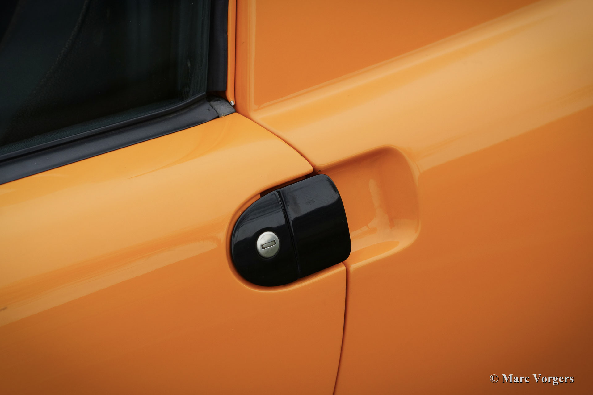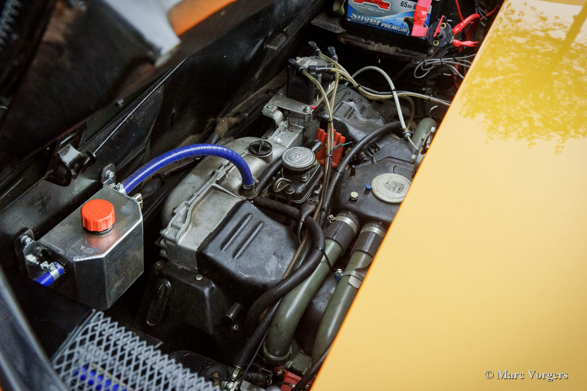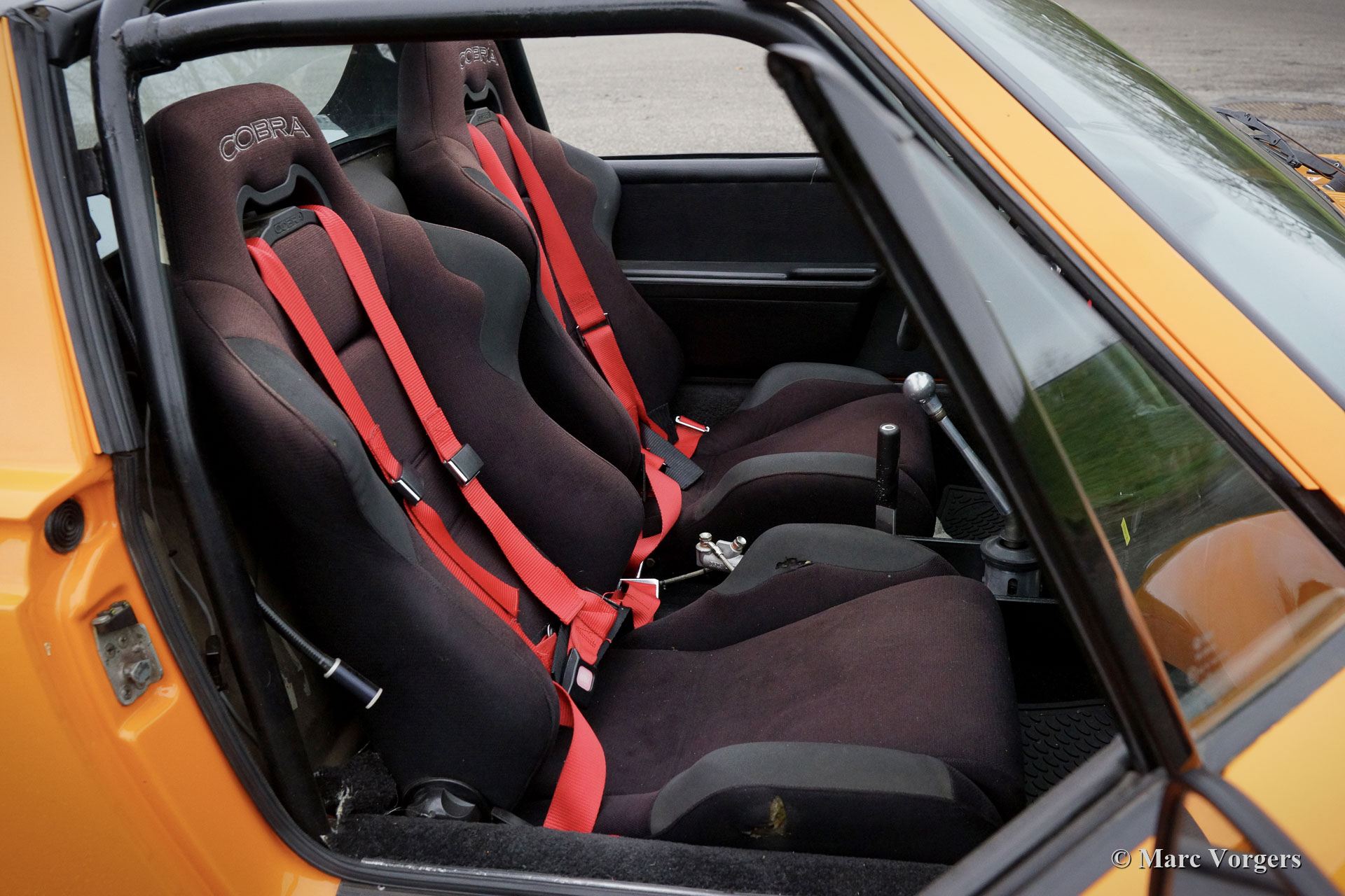 Porsche 914 2.0 ‘Wide Body‘, year 1972. Colour Signal Orange combined with a black cloth interior. The bodywork of this fantastic Porsche 914 2.0 was modified to ‘Wide Body’ specifications in the past. The extended fenders / wings were made of sheet metal. This Porsche 914 looks extremely sporty and purposeful with its low stance and wonderful wide Fuchs style wheels shod with 225/50-15 tires at the front, and 245/40-15 tires at the back. The looks are not just show, the 2 litre 135 bhp four-cylinder boxer engine was tuned and fitted with an electric petrol injection system. To handle the additional power, the car was fitted with a 5-speed ‘dog-leg’ gearbox, a limited-slip differential, Willwood vented disc brakes, and a hydraulic handbrake. The interior was uprated with a roll cage, Cobra sports bucket seats, 4-point safety harnesses, a Sparco sports steering wheel, a start button and extra dashboard gauges. The car features a ‘Targa’ roof of which the panel can be taken out and stowed away in the rear trunk. This is a very sporty and desirable Porsche 914 ‘Wide Body’ in good condition. A fantastic driver car and an ideal sports car to enter historic rally events! The car is currently registered in Belgium.