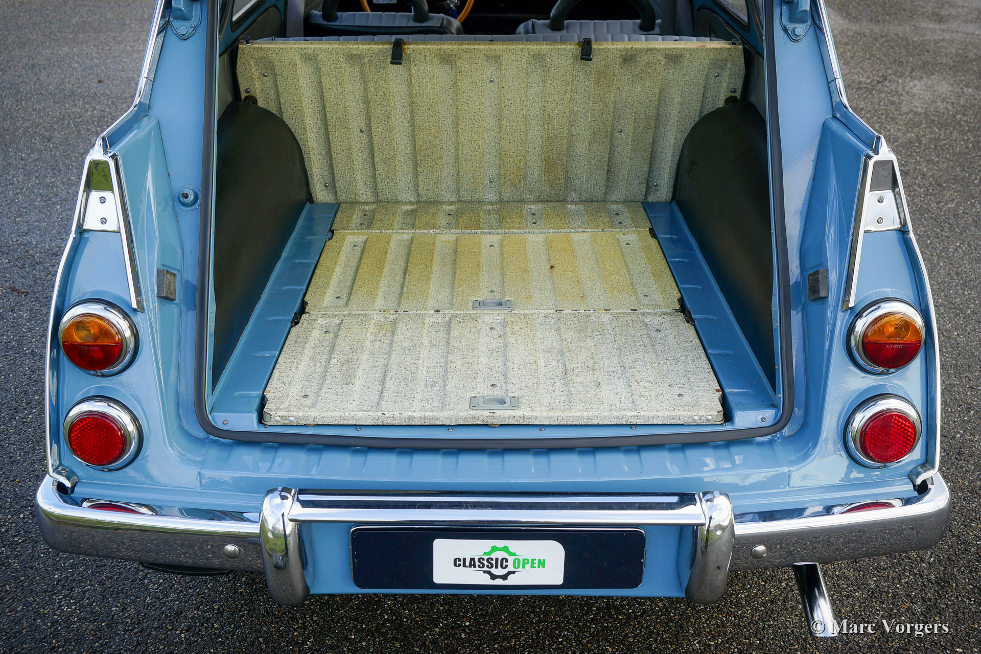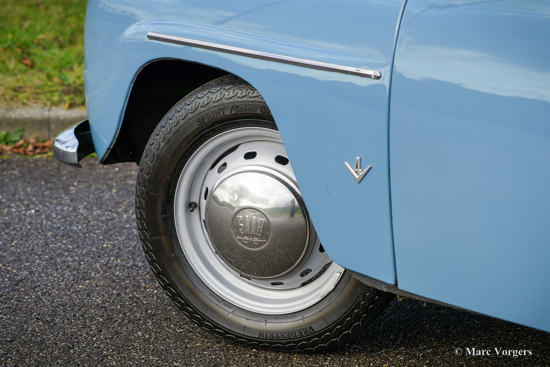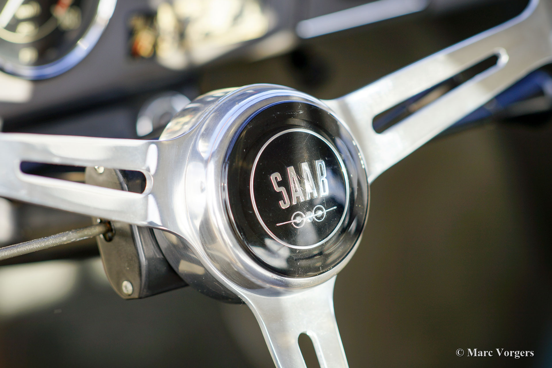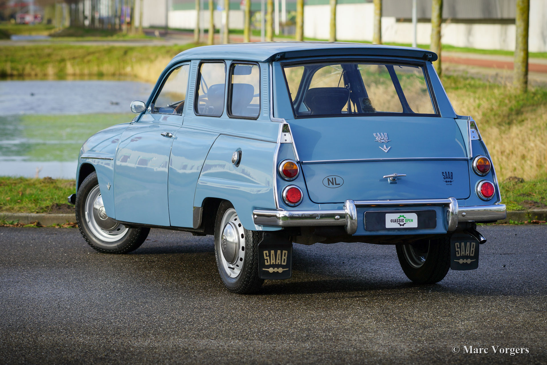 Saab 95 V4 ‘Long Nose’, year 1968. Colour blue combined with a two-tone grey/black vinyl interior and grey carpet. This characteristic Saab 95 ‘estate wagon’ was sold new in Sweden. In 1972, the car was imported to the Netherlands by a Saab enthusiast. This magnificent Saab is in a very good to excellent original condition; you can see and feel that the car was cherished by caring enthusiasts since day one. The Saab features a 1500 cc V4 engine which runs and sounds beautifully. The 4-speed gearbox features column shifter and it functions snappy and precise. The car is fitted with the wonderful original steering wheel with wood rim and a pair of auxiliary Hella driving lamps (wide beam fog lamp and long beam spot lamp). The unique feature of the Saab 95 is the additional bench in the boot. This bench retracts in the floor when not in use, a very clever detail! This Saab 95 is a fantastic ‘time capsule’ in a very good to excellent original condition. You will be hard pressed to find another specimen in this unique condition!