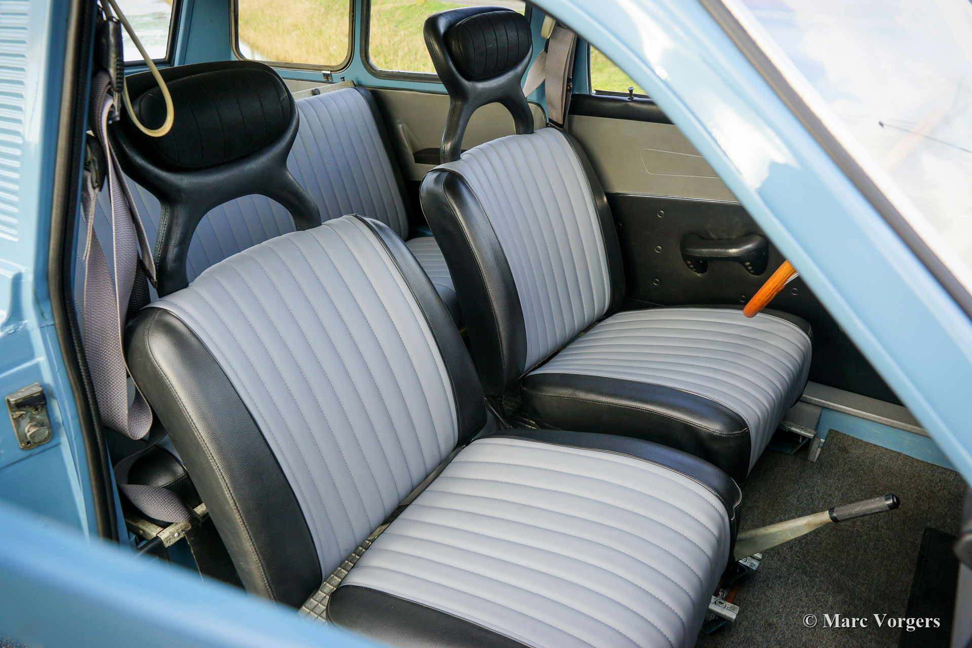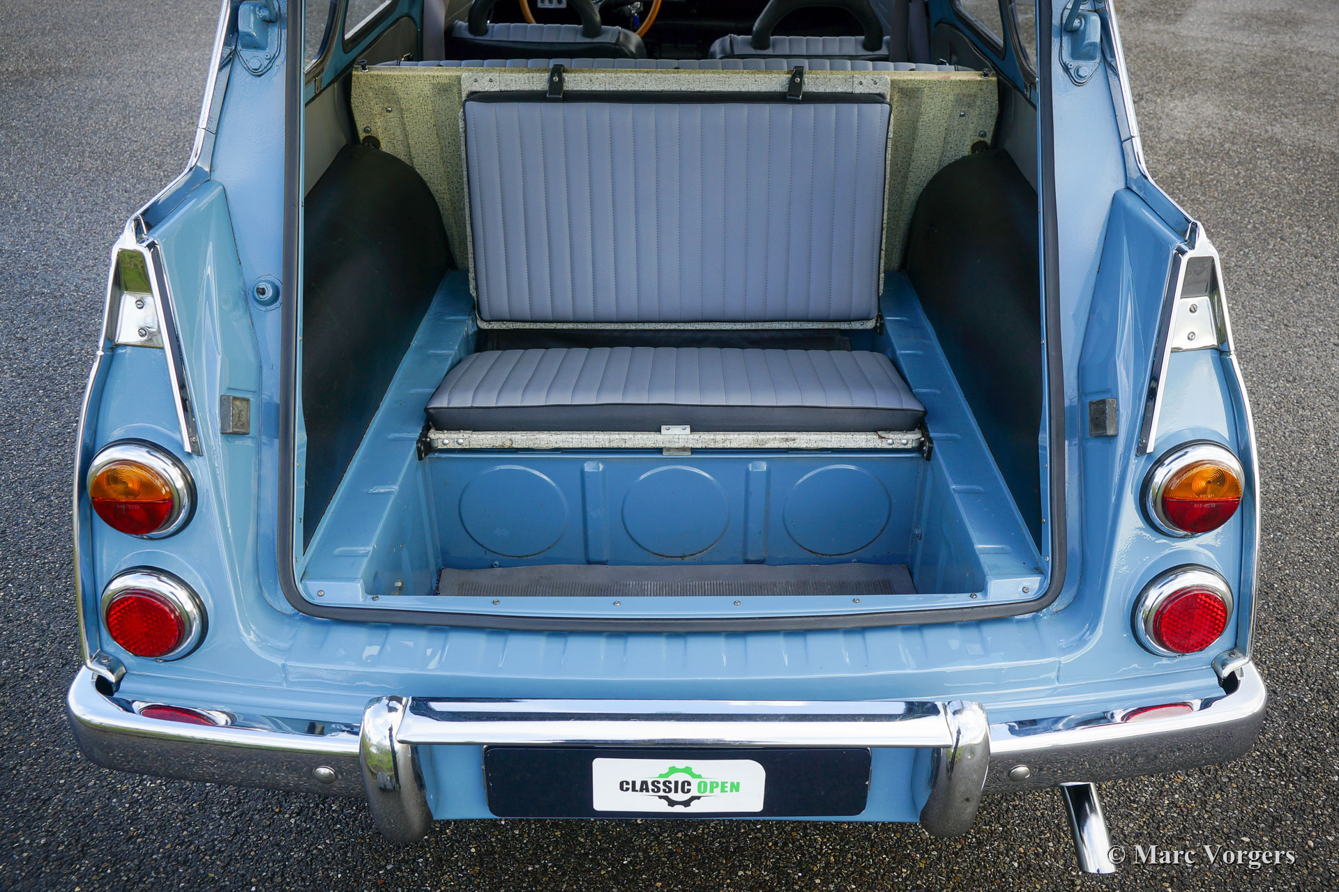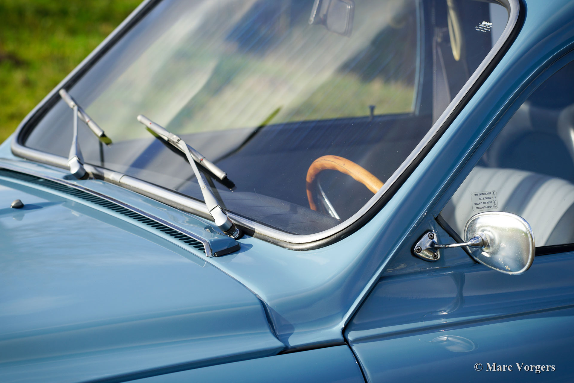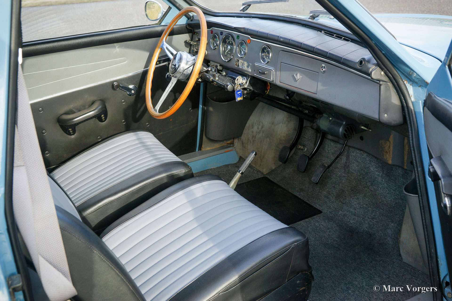 Saab 95 V4 ‘Long Nose’, year 1968. Colour blue combined with a two-tone grey/black vinyl interior and grey carpet. This characteristic Saab 95 ‘estate wagon’ was sold new in Sweden. In 1972, the car was imported to the Netherlands by a Saab enthusiast. This magnificent Saab is in a very good to excellent original condition; you can see and feel that the car was cherished by caring enthusiasts since day one. The Saab features a 1500 cc V4 engine which runs and sounds beautifully. The 4-speed gearbox features column shifter and it functions snappy and precise. The car is fitted with the wonderful original steering wheel with wood rim and a pair of auxiliary Hella driving lamps (wide beam fog lamp and long beam spot lamp). The unique feature of the Saab 95 is the additional bench in the boot. This bench retracts in the floor when not in use, a very clever detail! This Saab 95 is a fantastic ‘time capsule’ in a very good to excellent original condition. You will be hard pressed to find another specimen in this unique condition!