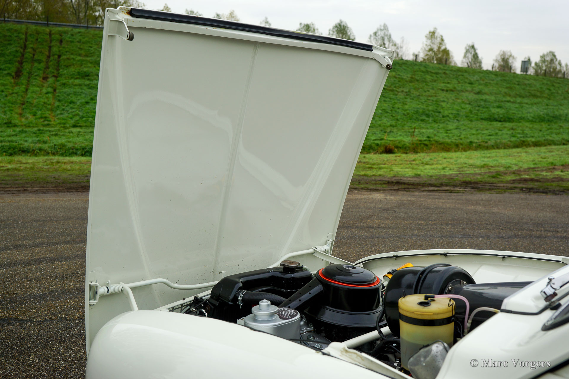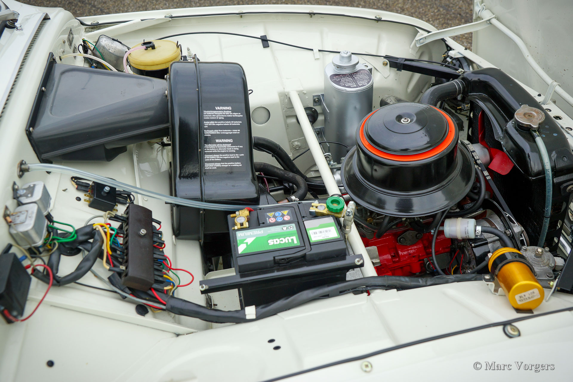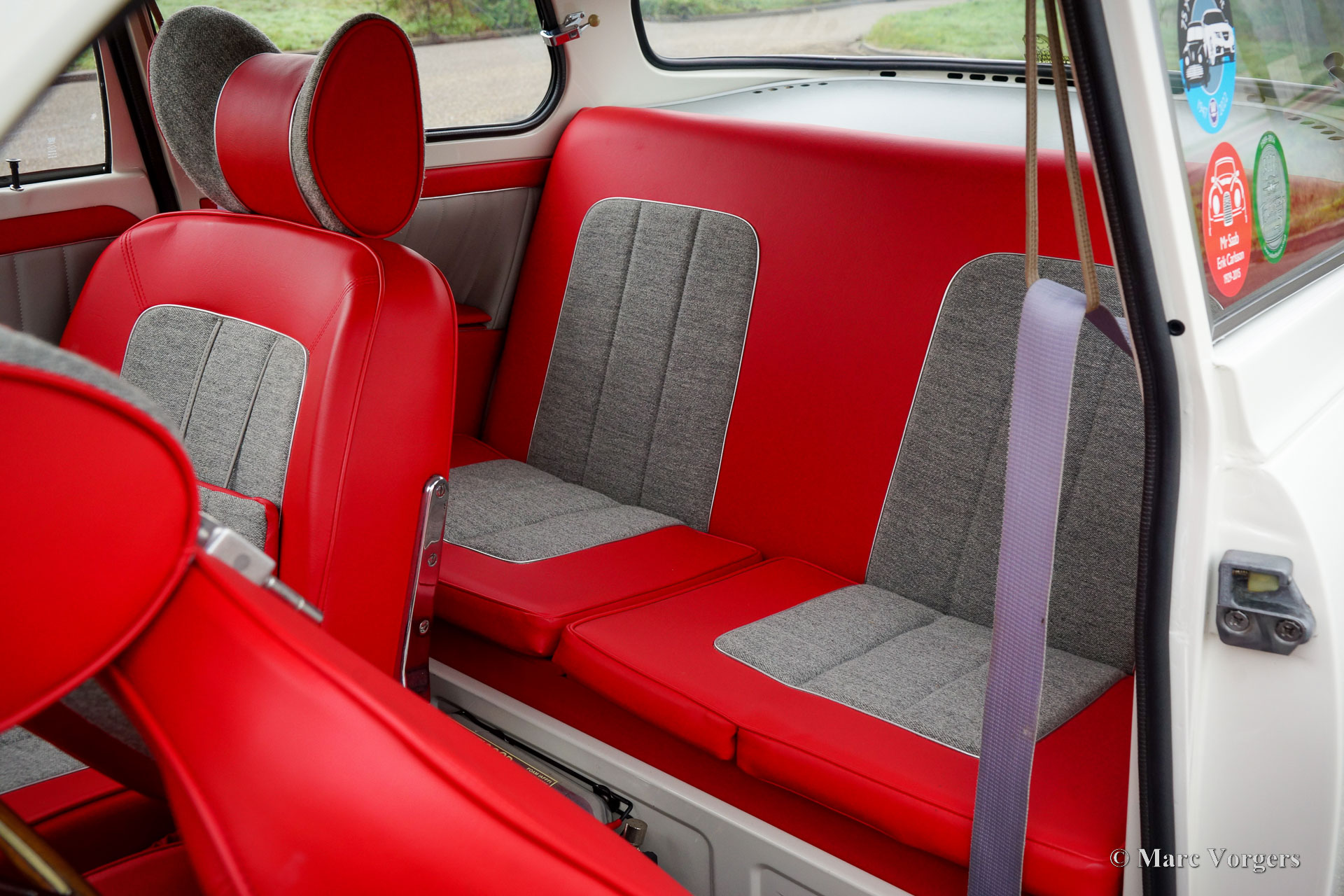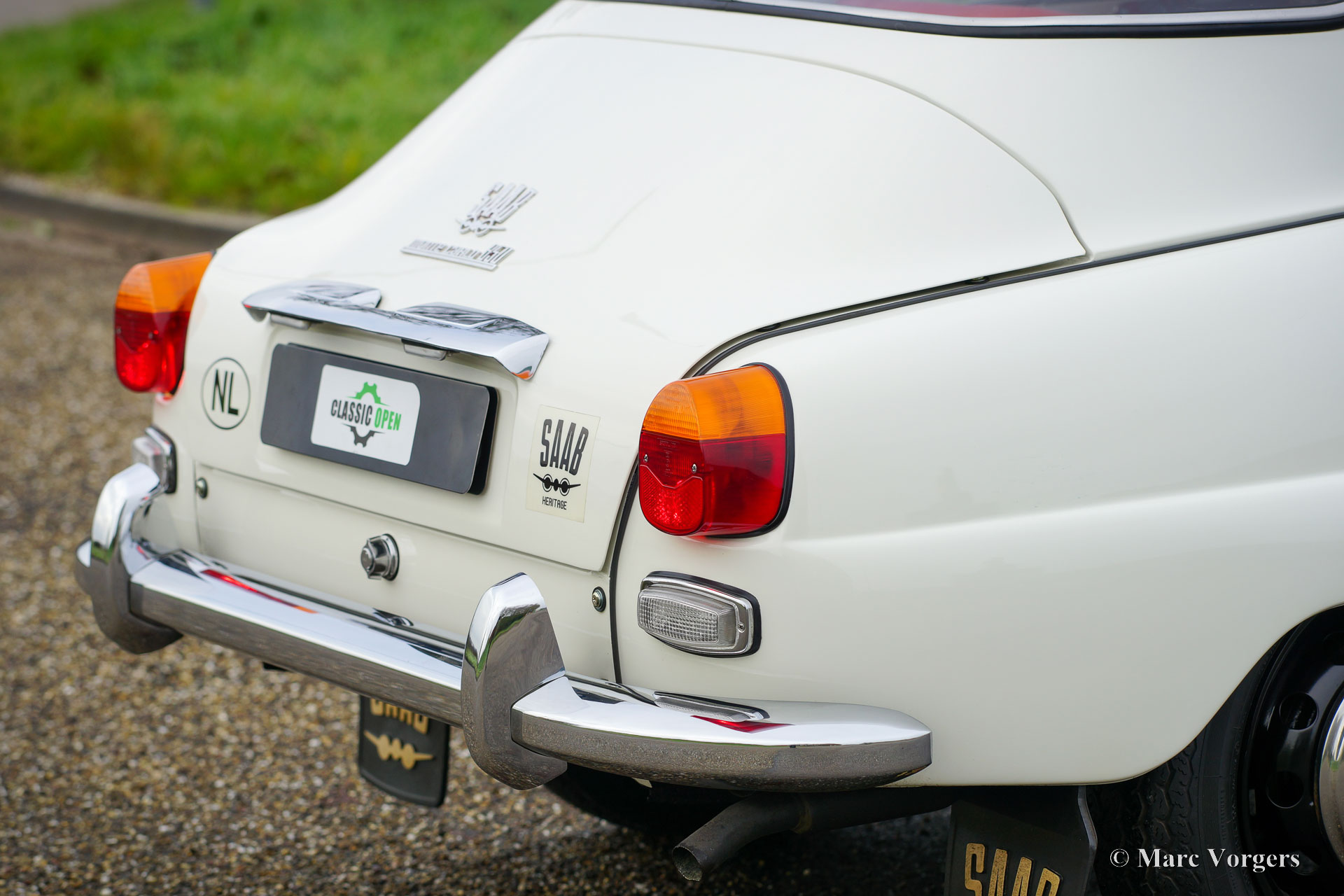Saab 96 Monte Carlo 850, year 1966. Colour white combined with a red / grey sport interior. This fantastic ‘long-nose’ Saab 96 with 850 cc two-stroke engine is an original and rare Monte Carlo model. The car was wonderfully restored and overhauled to perfection in the years 2017 – 2020. A photo report of the restoration is present. Everything was restored to original specifications including the interior which shows the correct red vinyl, grey wool, and silver piping on the seats and door panels. The original sporty Monte Carlo dashboard looks impressive with all the gauges and the Monte Carlo badge. This car was factory fitted with a sliding / folding roof which opens as fas as the rear bench! The open top experience can be enjoyed by all passengers. The ‘long-nose’ model features two additional Hella spot lamps in the grille, just like the successful factory rally cars of the period. The perfectly overhauled 3-cylinder 850 cc two stroke engine is fitted with three carburettors and a special air-filter. Under the bonnet you also find a special oil tank for the automatic two stroke oil lubrication of the engine. This ultra-desirable Saab features a four-speed gearbox with steering column shifter and disc brakes on the front wheels. The Saab Monte Carlo 850 is a Saab collectors dream, this superbly restored example will be the pride of any Saab enthusiast!