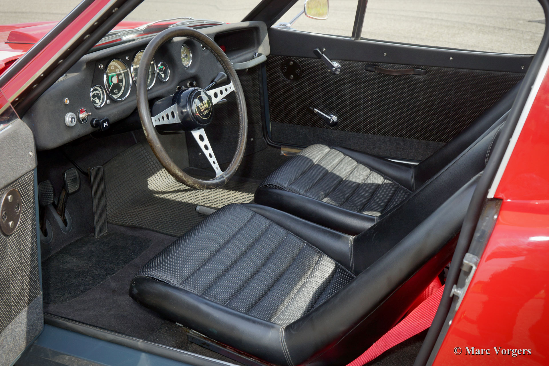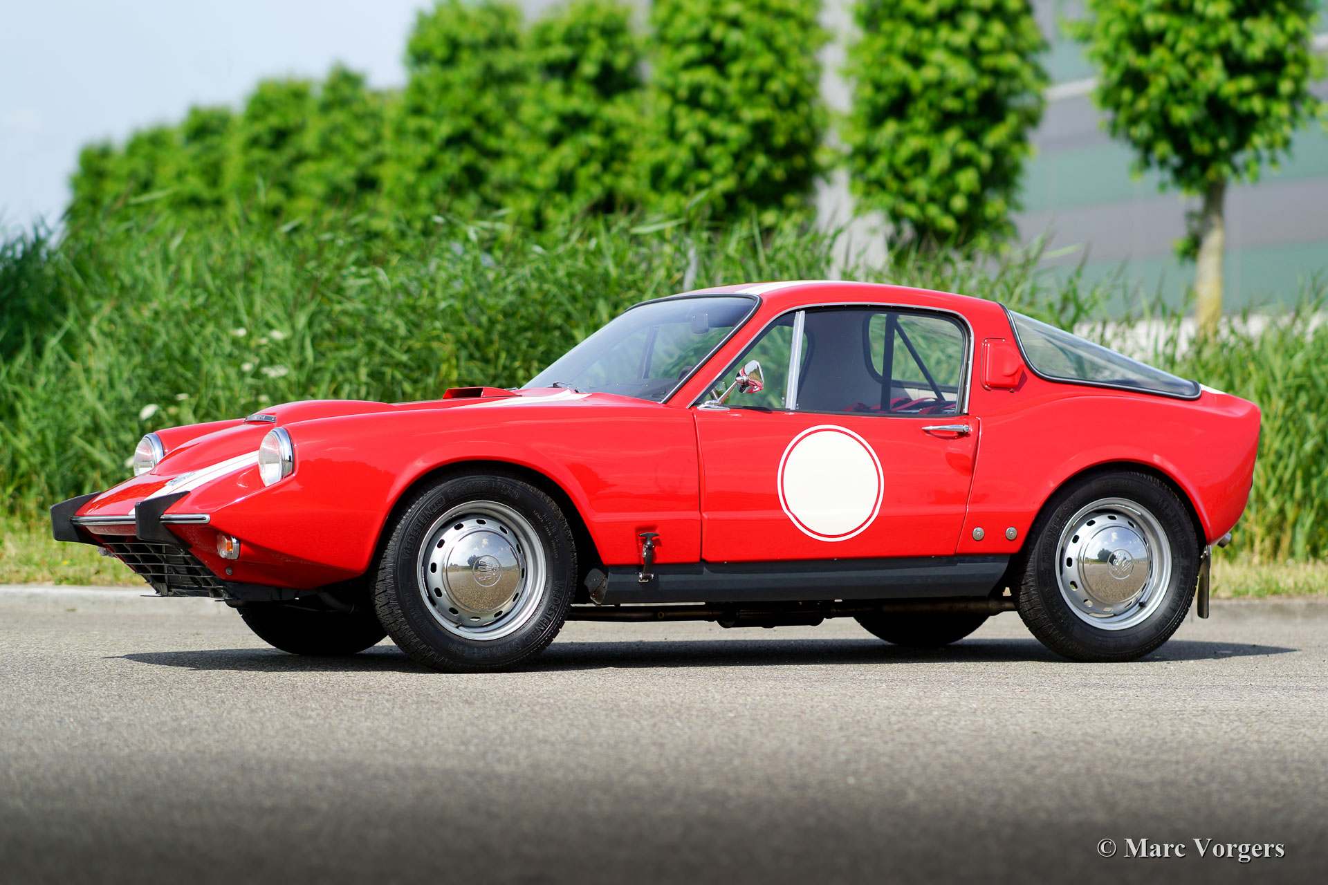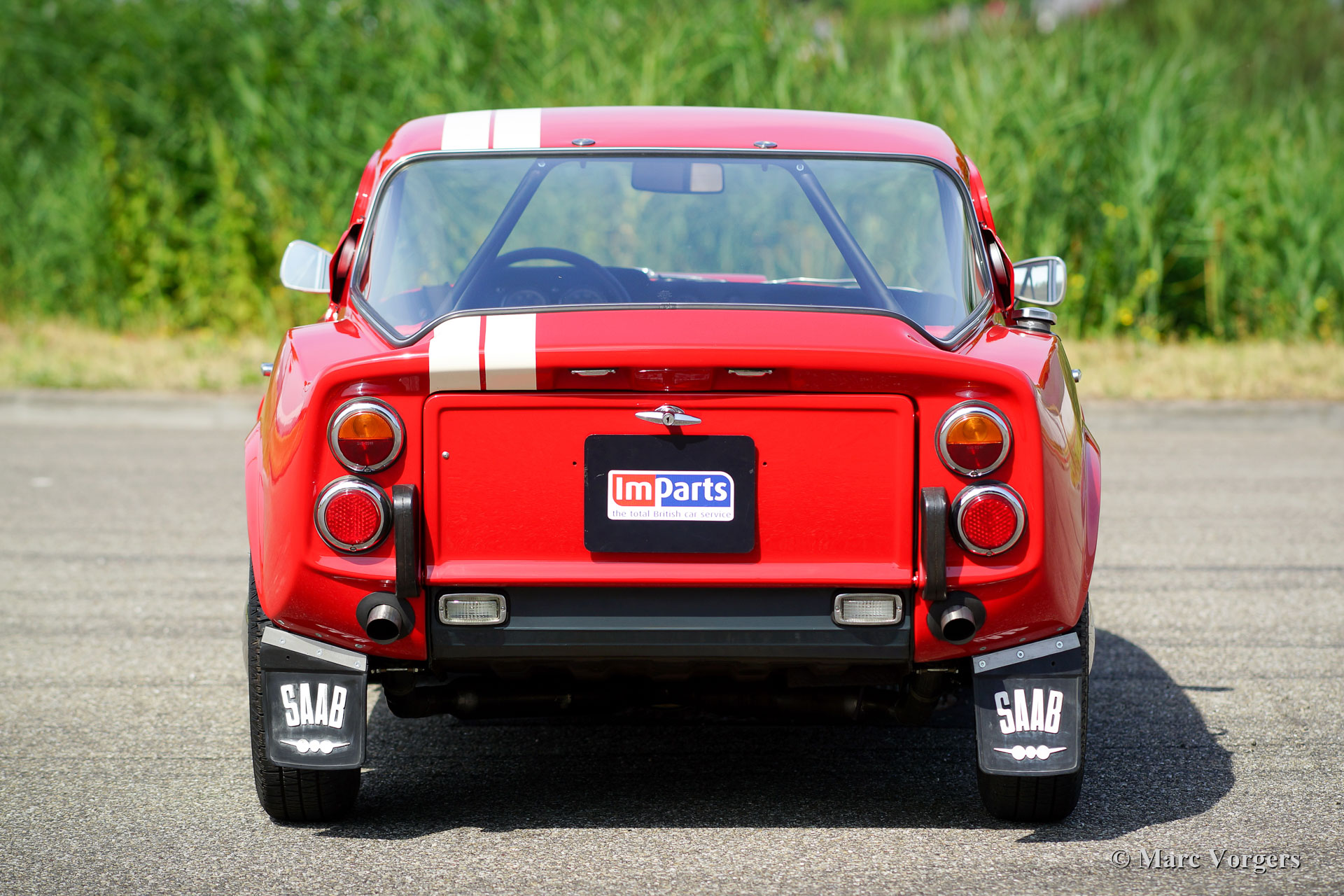 Saab Sonnett II V4, year 1968. Colour red with a black interior. This is a unique Saab Sonnett V4! The automobile was beautifully and extensively restored and rebuilt after it was imported from Germany to the Netherlands. Usually these cars must impress their drivers with 73 bhp under the throttle… THIS example has a SweedSpeed tuned engine delivering a stunning 140 bhp to the front wheels! A massive amount of power considering the weight of only 600 kilogrammes! The original 1500 cc Ford V4 engine was given a capacity of 1853 cc and a host of special parts which make it possible to rev-up to 7000 rpm. The Saab Sonnet features a 4-speed manually operated gearbox with steering column shift; this gearbox works perfectly. This rare classic car is fitted with bucket seats, four-point safety harnesses, 123 tune electronic ignition, an aluminium radiator, an automatic electric cooling-fan, an electric Facet ‘Red Top’ fuel pump, AVO adjustable shock absorbers on all wheels, (boxed) rally type front suspension, a 70 Ampère alternator and a beautifully made Stainless Steel header tank which also acts as a ‘strut’ between the left and right front suspension.