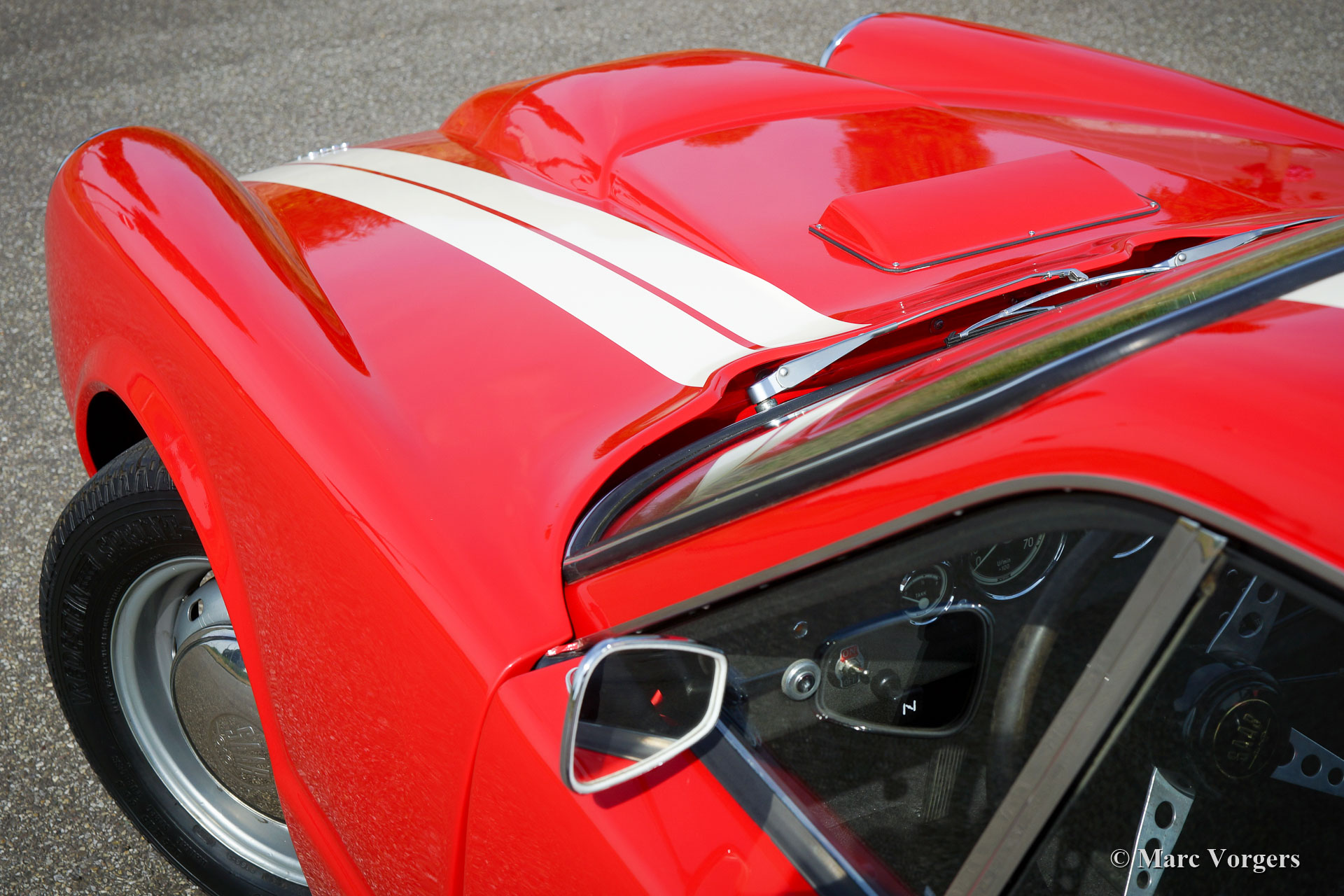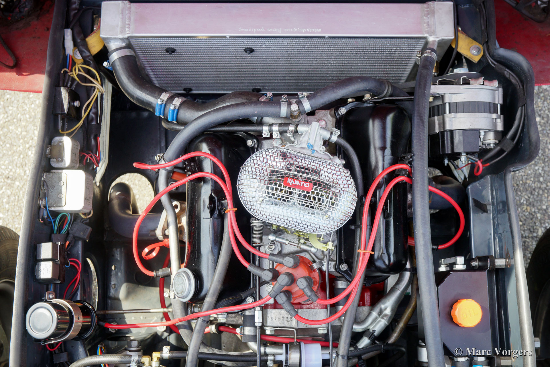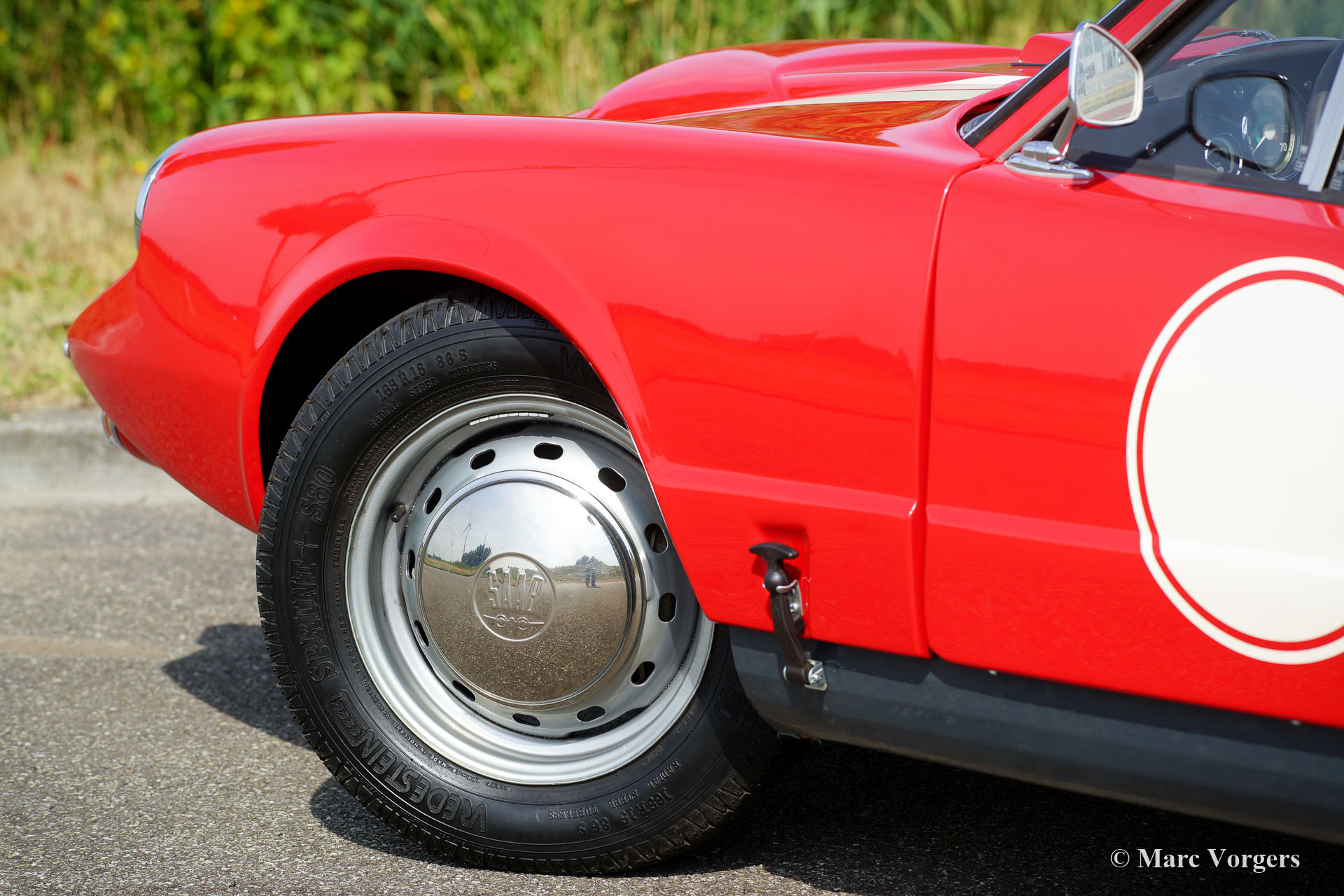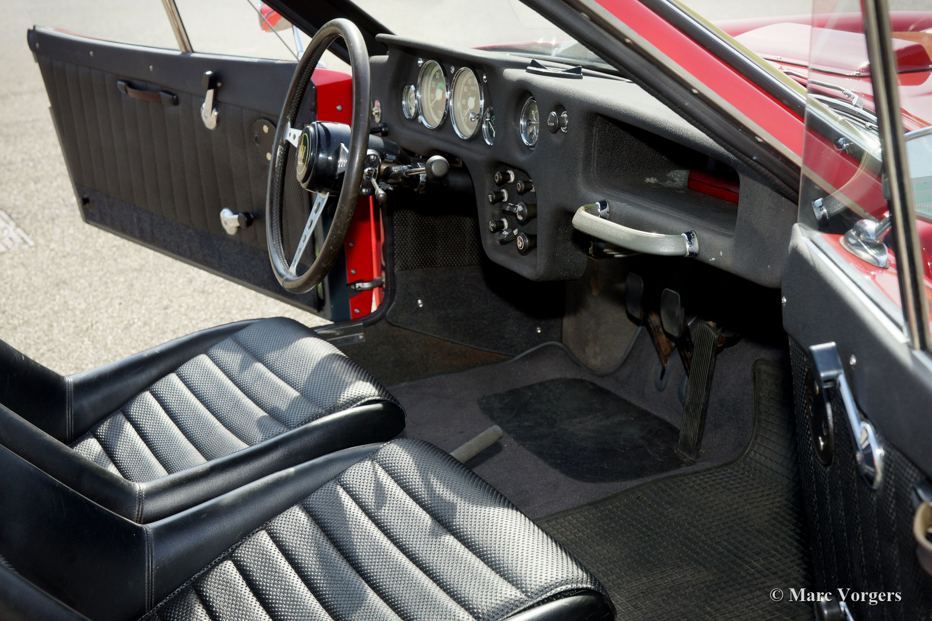 Saab Sonnett II V4, year 1968. Colour red with a black interior. This is a unique Saab Sonnett V4! The automobile was beautifully and extensively restored and rebuilt after it was imported from Germany to the Netherlands. Usually these cars must impress their drivers with 73 bhp under the throttle… THIS example has a SweedSpeed tuned engine delivering a stunning 140 bhp to the front wheels! A massive amount of power considering the weight of only 600 kilogrammes! The original 1500 cc Ford V4 engine was given a capacity of 1853 cc and a host of special parts which make it possible to rev-up to 7000 rpm. The Saab Sonnet features a 4-speed manually operated gearbox with steering column shift; this gearbox works perfectly. This rare classic car is fitted with bucket seats, four-point safety harnesses, 123 tune electronic ignition, an aluminium radiator, an automatic electric cooling-fan, an electric Facet ‘Red Top’ fuel pump, AVO adjustable shock absorbers on all wheels, (boxed) rally type front suspension, a 70 Ampère alternator and a beautifully made Stainless Steel header tank which also acts as a ‘strut’ between the left and right front suspension.