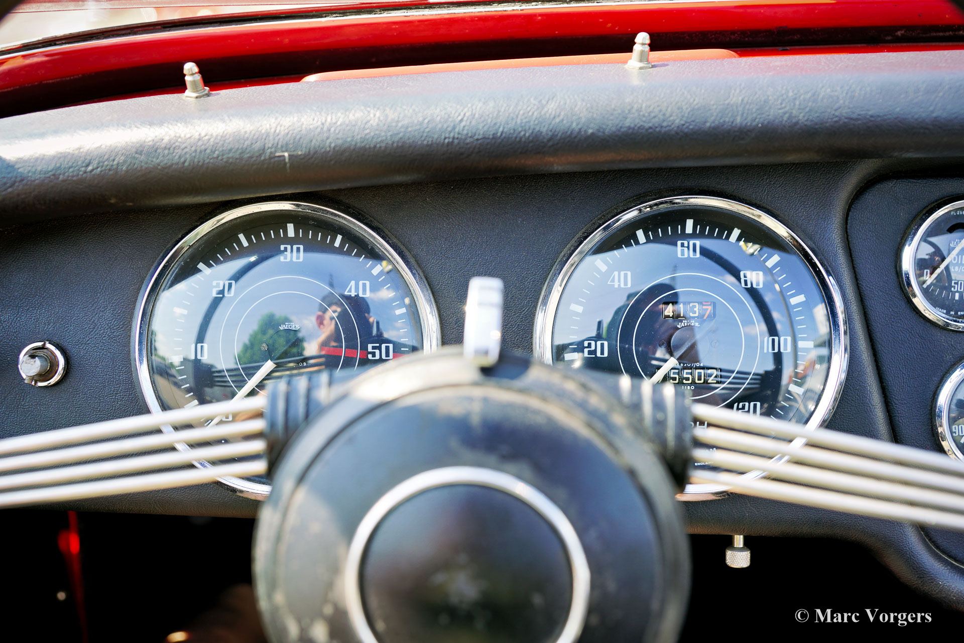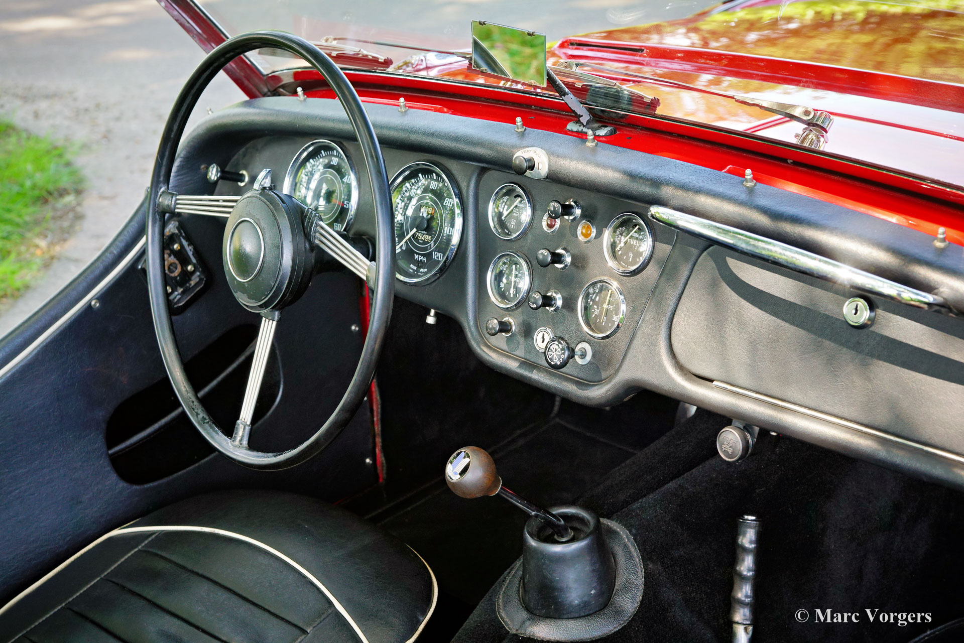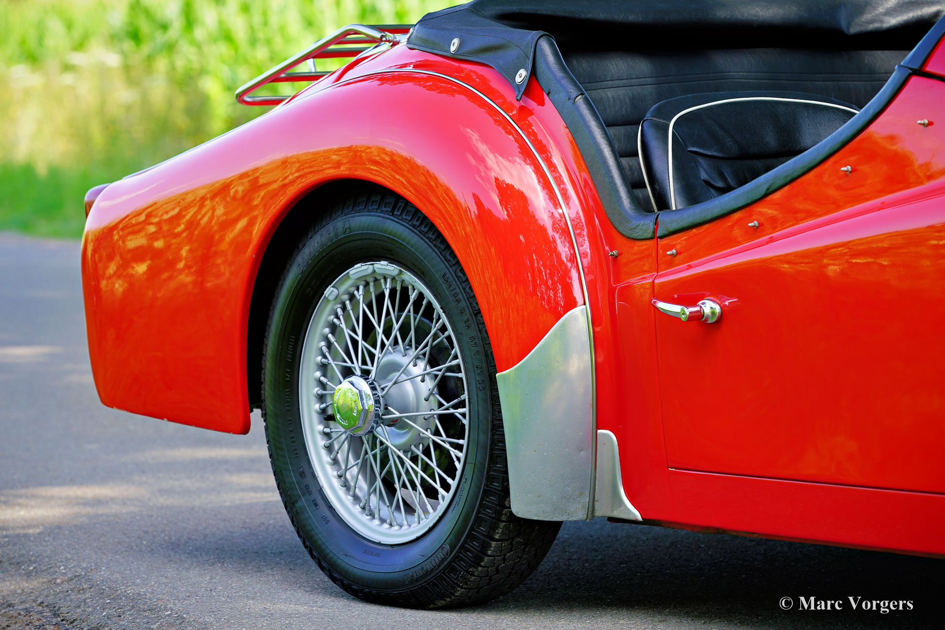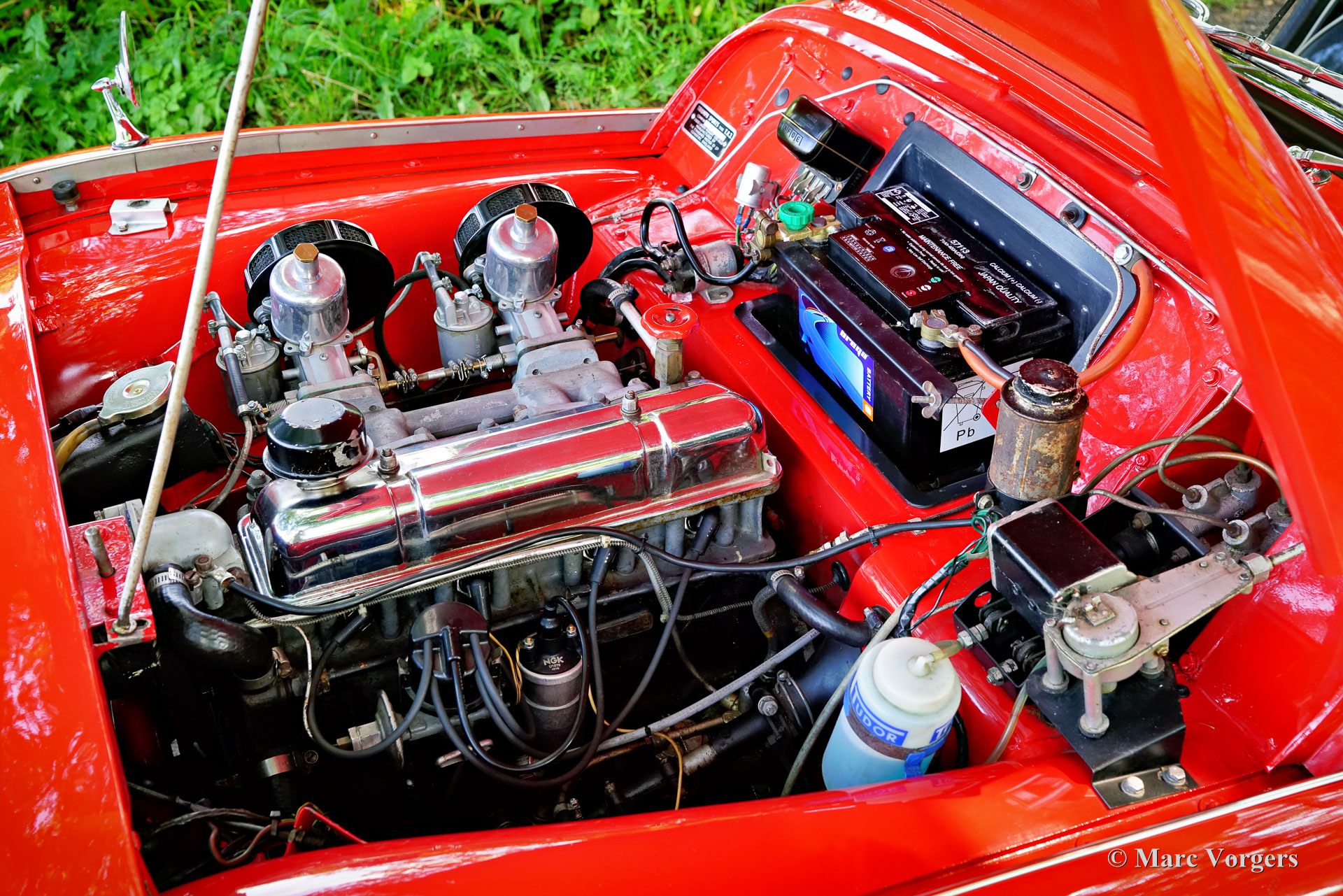 The Triumph TR 3 is a no nonsense sports car; very robust, simple and reliable, a true British sports car all over. The TR 3 was the first production car, off factory, equipped with disc brakes on the front-wheels. The engine was a Standard Vanguard based, cast-iron, long stroke, in-line four cylinder with a displacement of 1991cc. The TR 3 engine was equipped with two carburettors giving a power-output of almost 100 bhp.