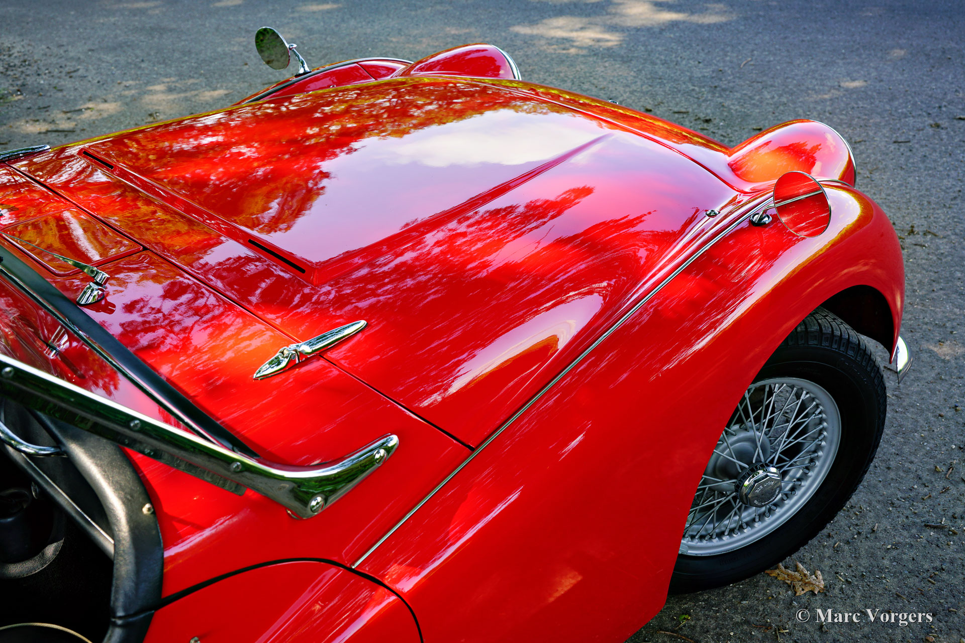 In the year 1948 Jaguar Cars (just like Standard-Triumph located in Coventry) astonished the entire automobile industry with the Jaguar XK 120. This very slick sports car with it's all enveloping body must have been inspired by the prewar BMW racing cars... but the XK 120 was for road use, it topped 120 miles per hour and it was far more affordable than other exotic cars like the Ferrari and Aston Martin.