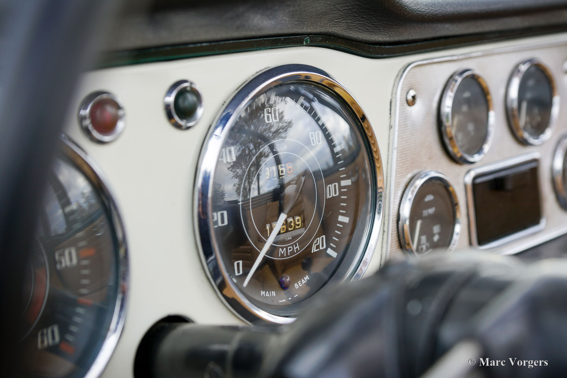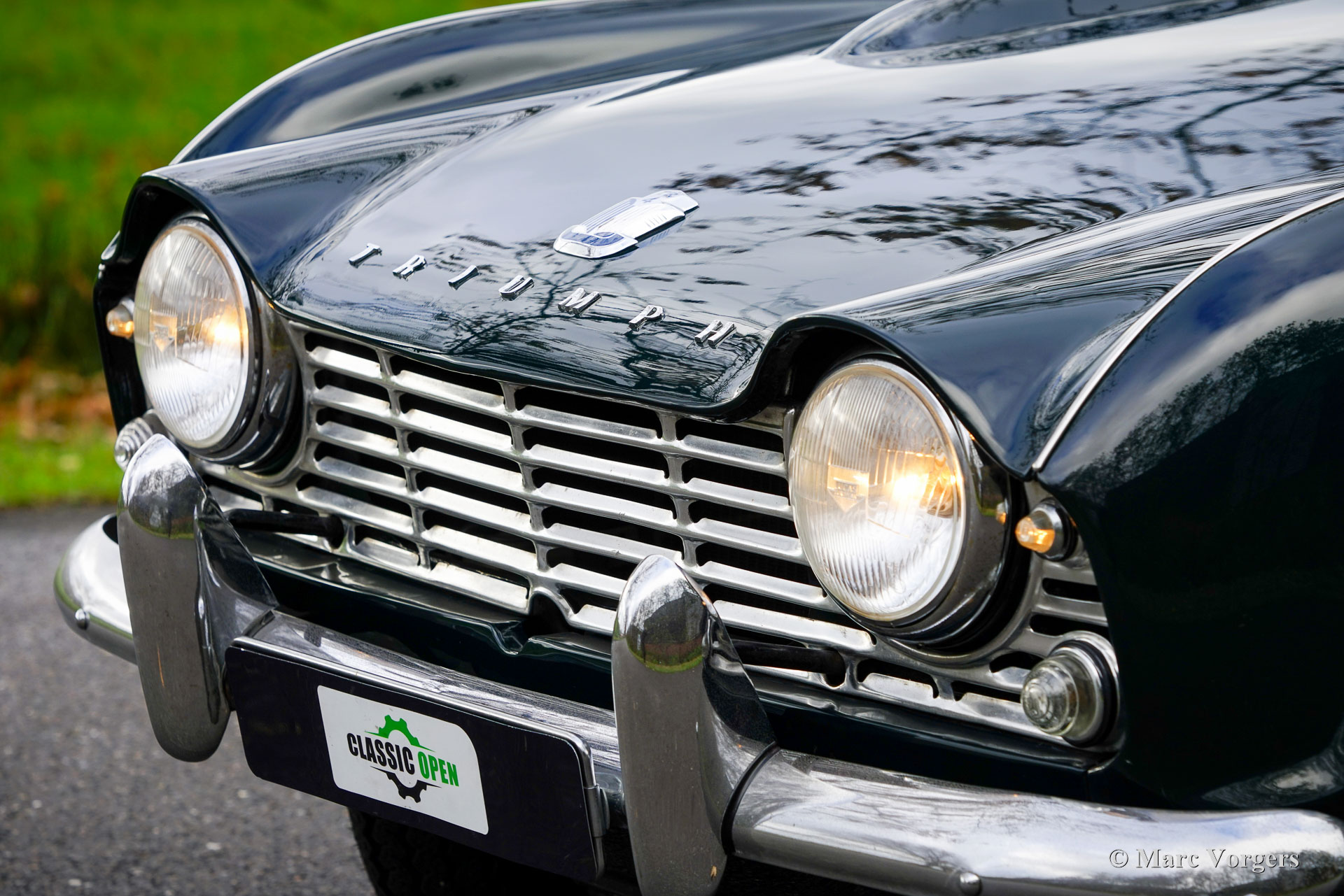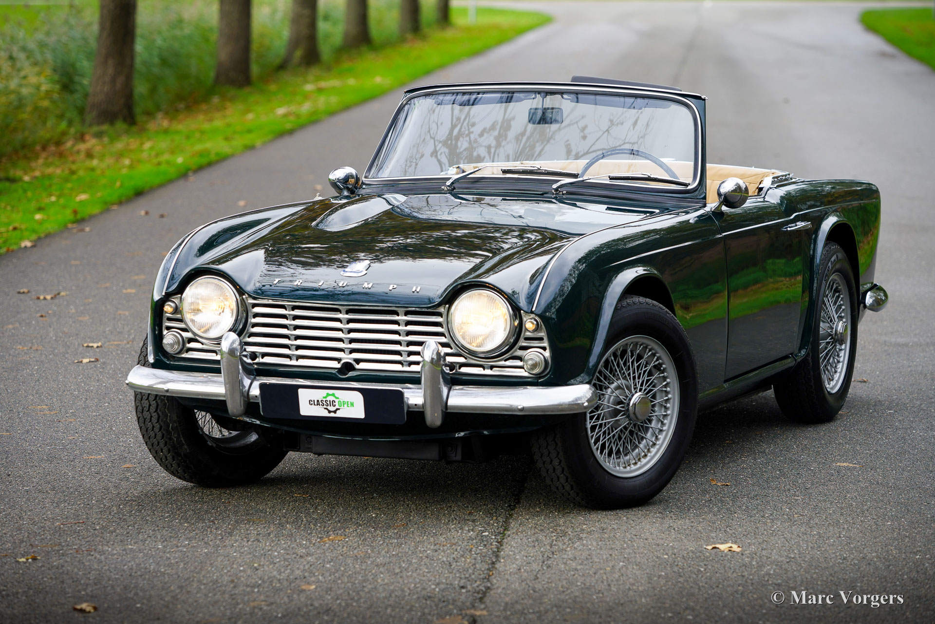 The Triumph TR 4 is a real British roadster; pure and honest. The TR 4 is built with a sturdy separate chassis with independent front suspension and a live rear axle. (IRS versions are equipped with independent rear suspension). The TR4 is equipped with disc brakes at the front and drum brakes at the rear. The bonnet shows a beautiful power bulge which gives space for the two carburettors. The Triumph TR 4 has a very beautiful wooden dashboard that is clear and functional and is equipped with large Smiths clocks. For the TR 4 a very nice "Surrey-top" is available as accessory. The Triumph "Surrey top" inspired Porsche to built the Porsche "Targa" versions. The Triumph TR4 is as all the TR versions a real drivers car.