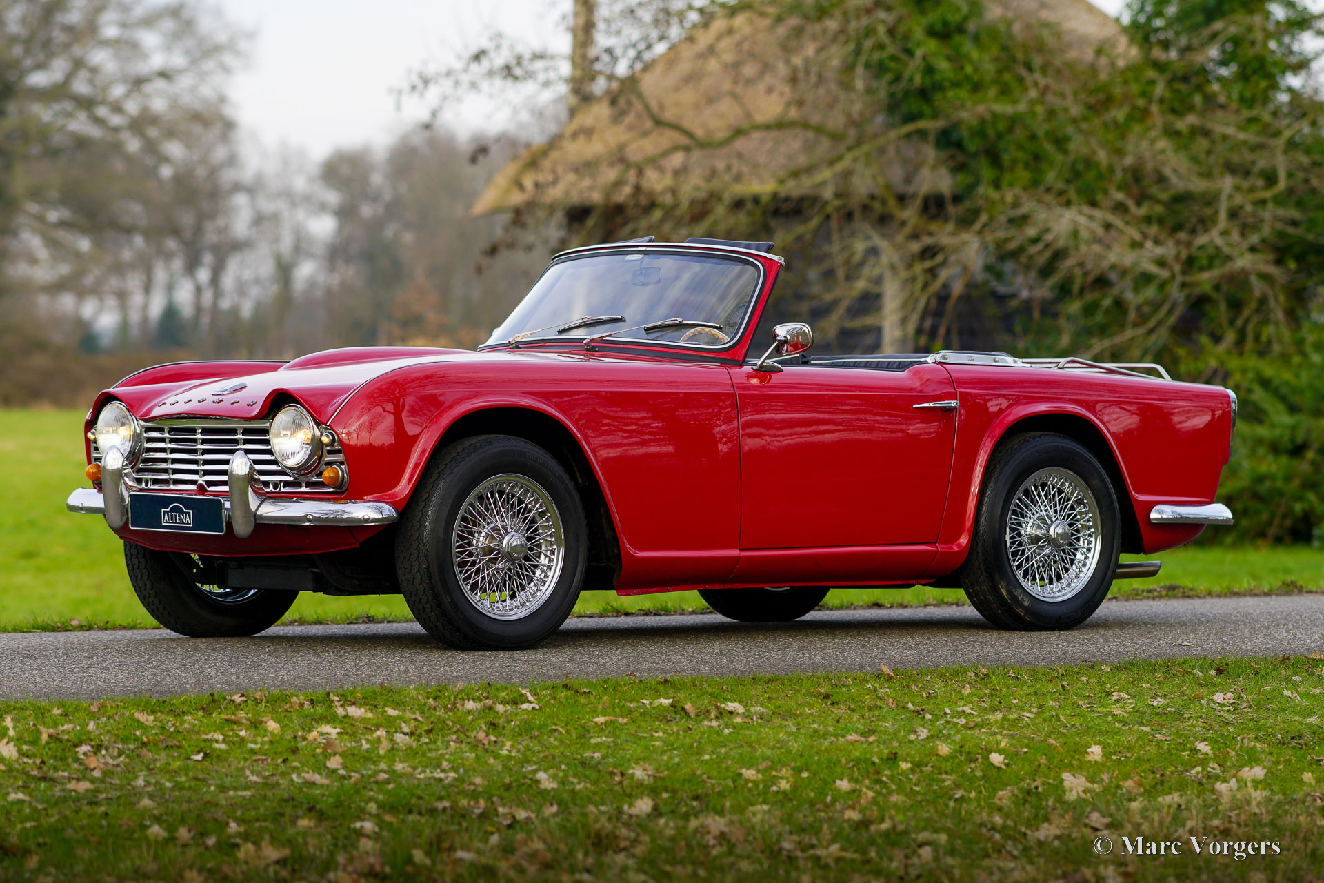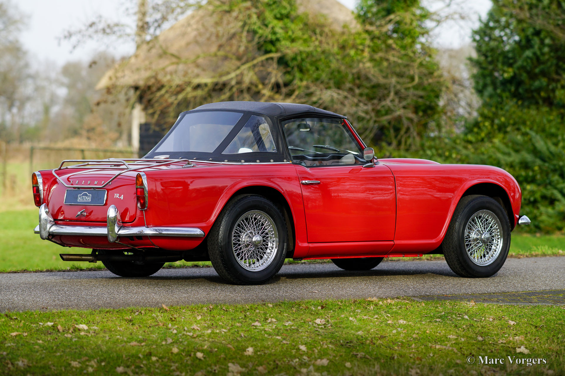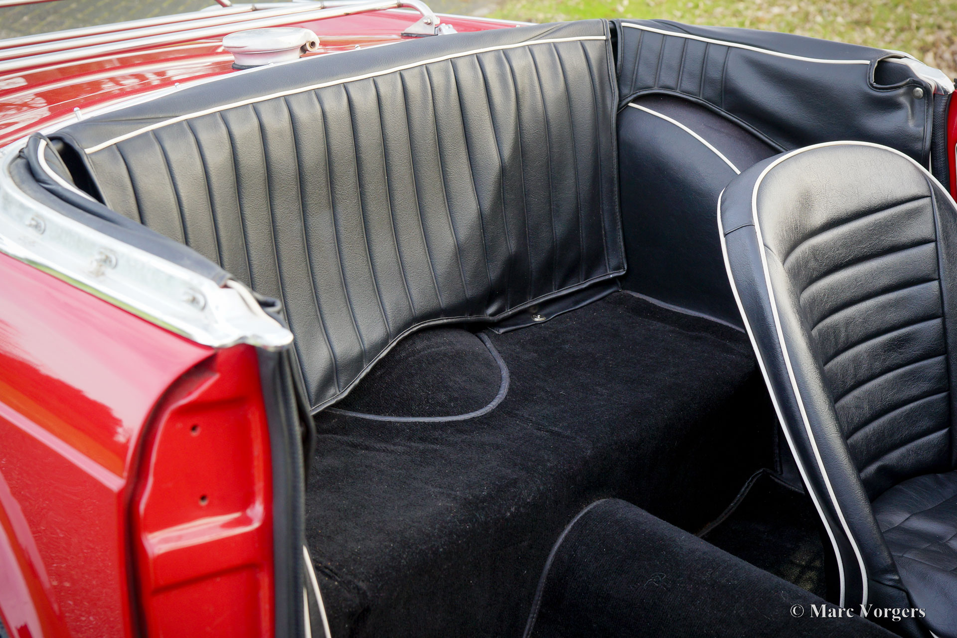 Triumph TR 4, year 1964. Colour red combined with a black leatherette interior trimmed with white piping and black carpet. Black soft-top. This wonderful Triumph TR 4 was sold new in the USA. The automobile was imported to the Netherlands in 1990. From 1990 until 2023 the car has known only one owner! That is quite unique and guarantees that the car has received a lot of love and care. The car was repainted perfectly in the year 2015. Over the years, this TR 4 was very well serviced and maintained, the car is in very good to excellent condition inside and out! The automobile is fitted with chrome wire wheels shod with Vredestein 165/15 tyre, an aluminium cylinder head, a MotoLita steering wheel with wood rim (the original steering wheel is also present), S.U. carburettors, and a Stainless-Steel baggage rack. The car comes with a complete history file and (service) invoices. This Triumph TR 4 A drives and handles delightfully, and it will give the new owner a lot of driving fun. The car is ready to enjoy an early spring and a wonderful summer in your own Triumph with the top down!