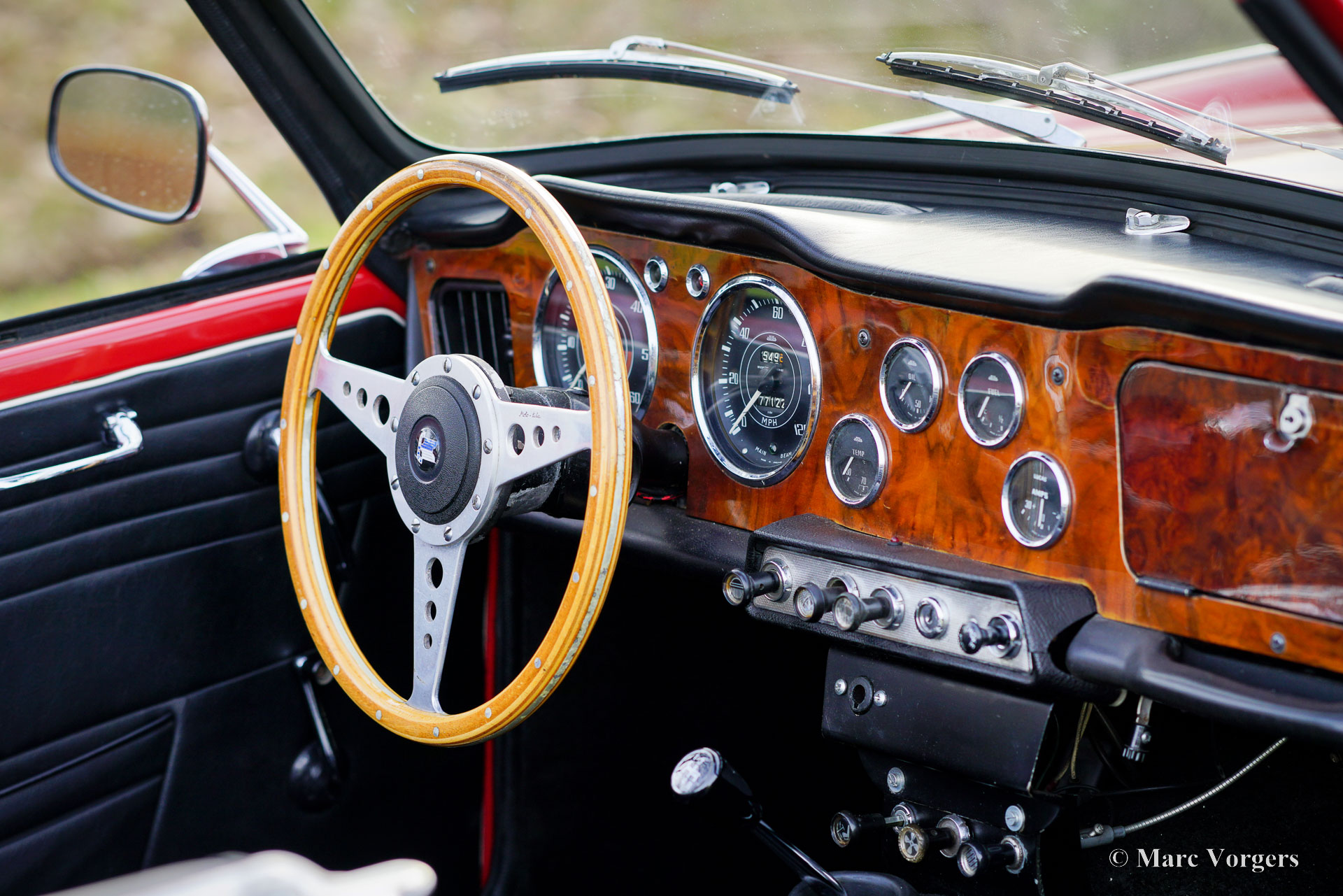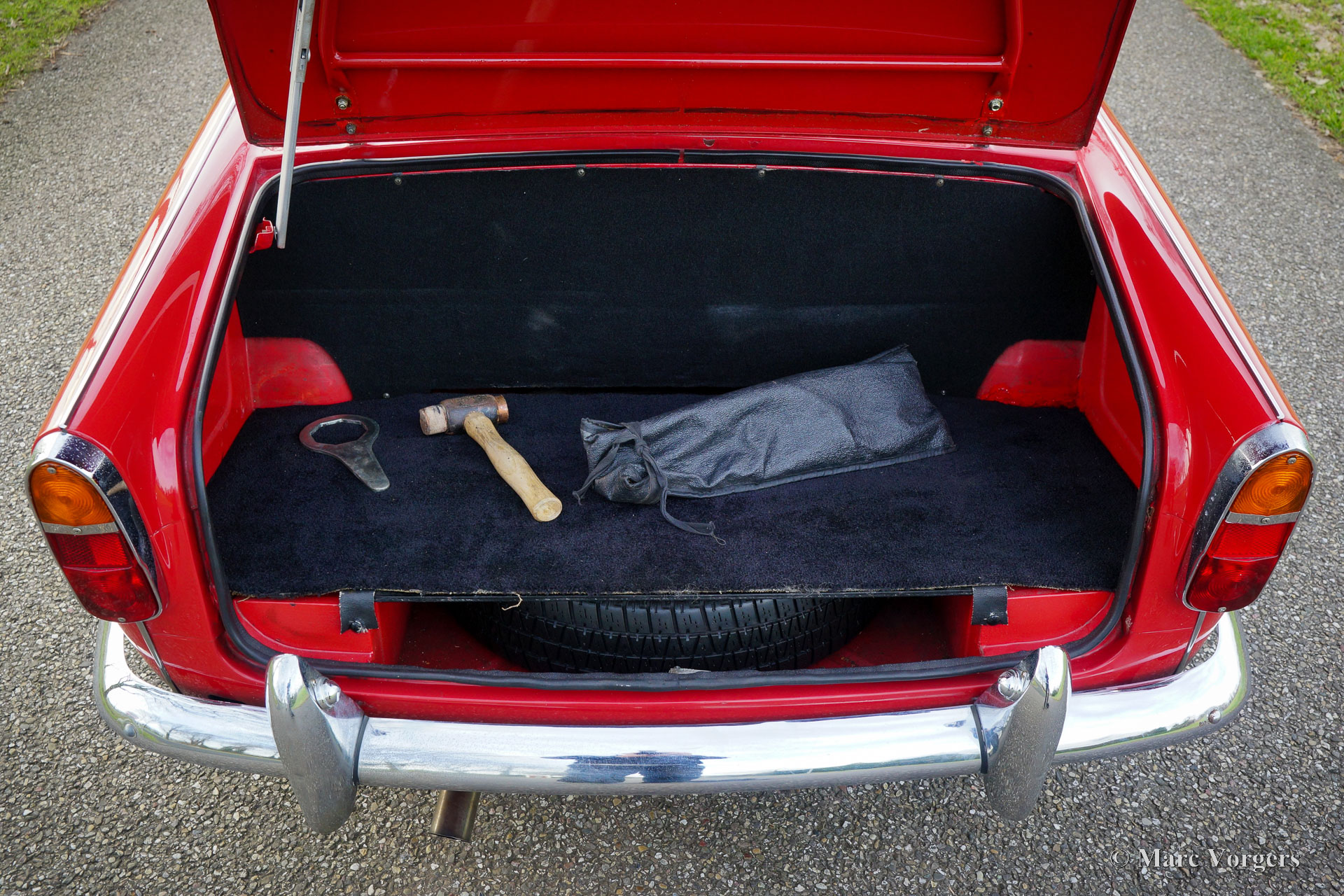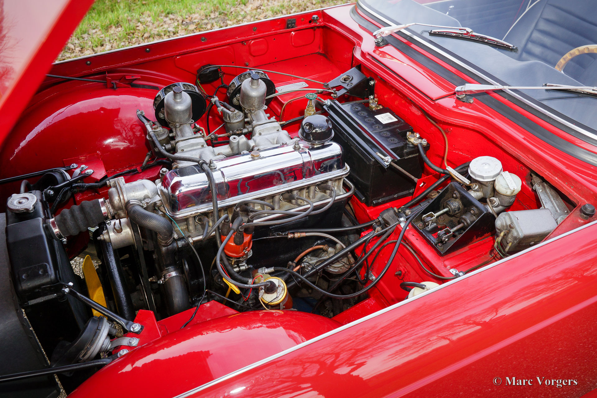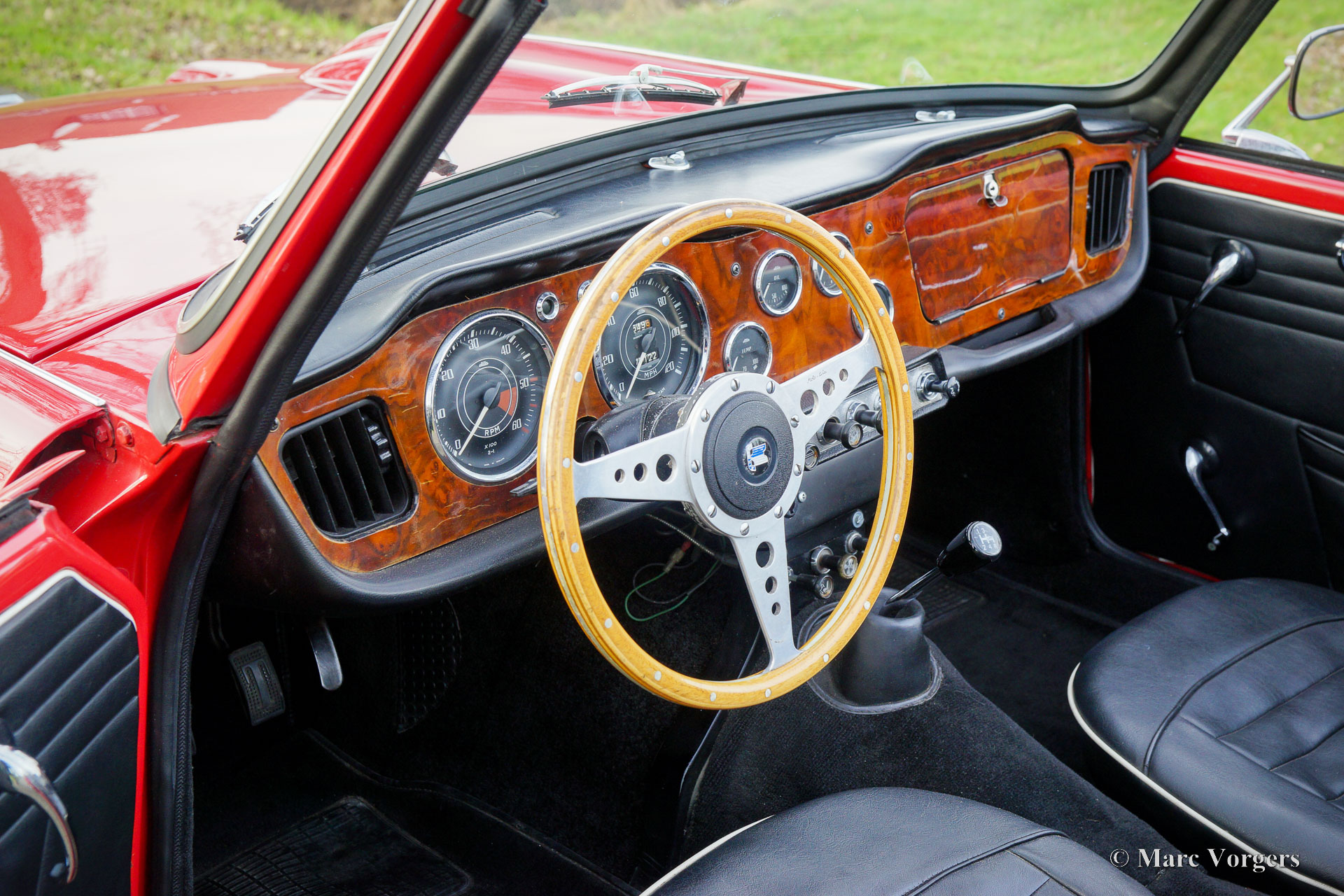 Triumph TR 4, year 1964. Colour red combined with a black leatherette interior trimmed with white piping and black carpet. Black soft-top. This wonderful Triumph TR 4 was sold new in the USA. The automobile was imported to the Netherlands in 1990. From 1990 until 2023 the car has known only one owner! That is quite unique and guarantees that the car has received a lot of love and care. The car was repainted perfectly in the year 2015. Over the years, this TR 4 was very well serviced and maintained, the car is in very good to excellent condition inside and out! The automobile is fitted with chrome wire wheels shod with Vredestein 165/15 tyre, an aluminium cylinder head, a MotoLita steering wheel with wood rim (the original steering wheel is also present), S.U. carburettors, and a Stainless-Steel baggage rack. The car comes with a complete history file and (service) invoices. This Triumph TR 4 A drives and handles delightfully, and it will give the new owner a lot of driving fun. The car is ready to enjoy an early spring and a wonderful summer in your own Triumph with the top down!