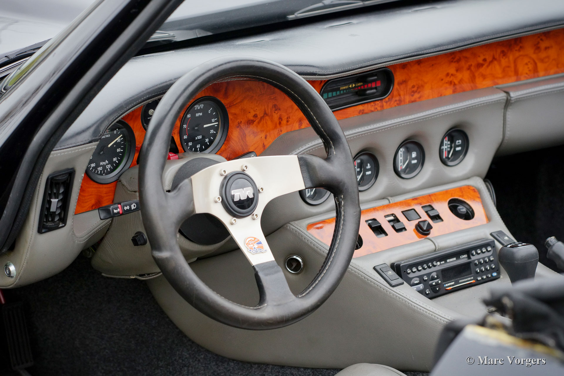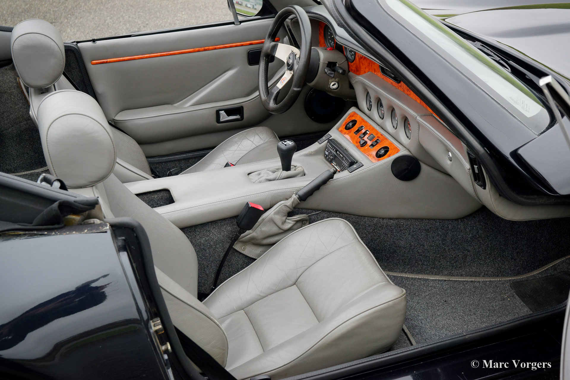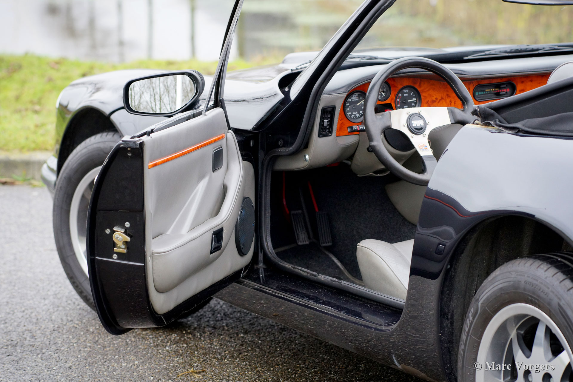 TVR S3, year 1991. Colour black combined with a grey leather interior and a black ‘Targa’ top. The TVR S3 features the 2.9 litre V6 Ford engine which delivers a healthy 170 bhp. The power is transmitted to the rear wheels via a 5-speed manually operated gearbox. The engine sound is exhilarating and addictive! Only 112 examples of this model were built from 1989 until 1993. The TVR has driven 116.000 kilometres from new and the car is in very good condition. A special TVR feature is the ‘Targa’ top with fold-down rear part. The roof panel can be stowed away in the boot. TVR cars are fully hand crafted and the full leather interior offers ample space. The open top driving experience is superb!