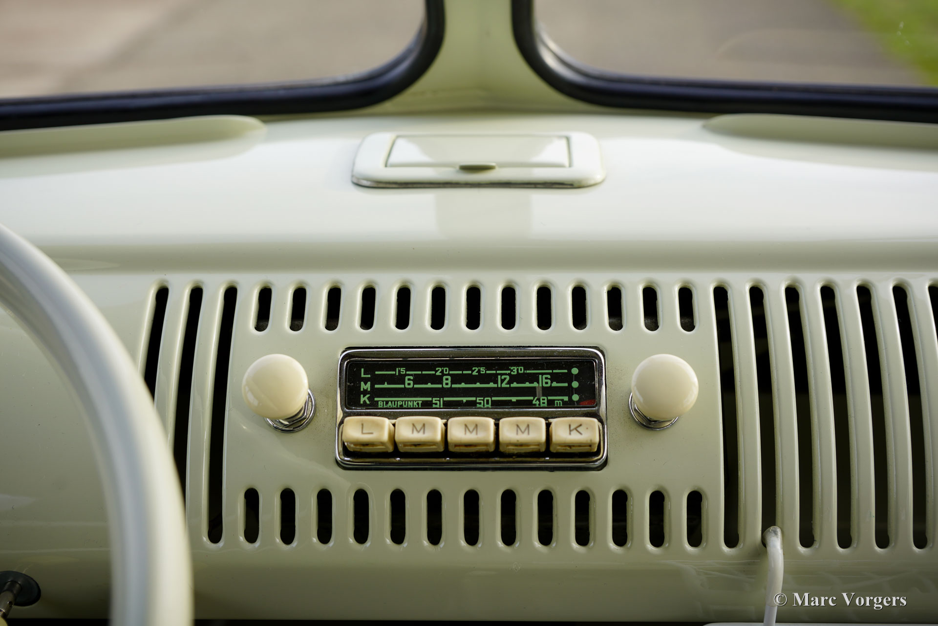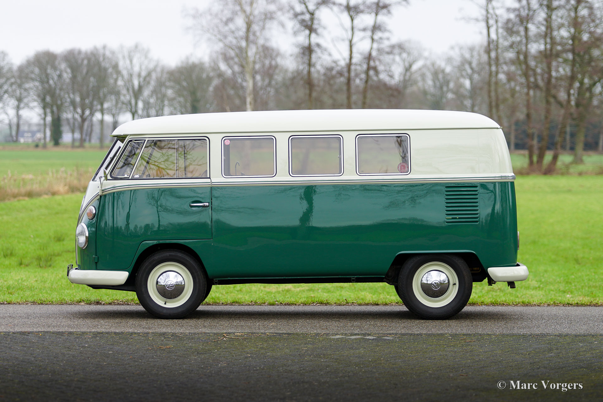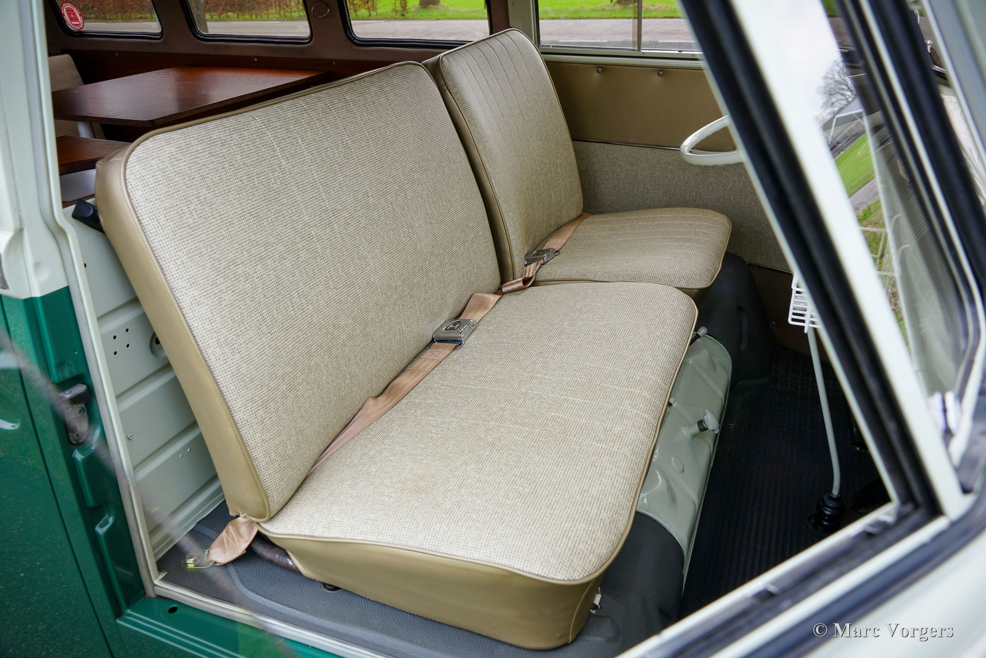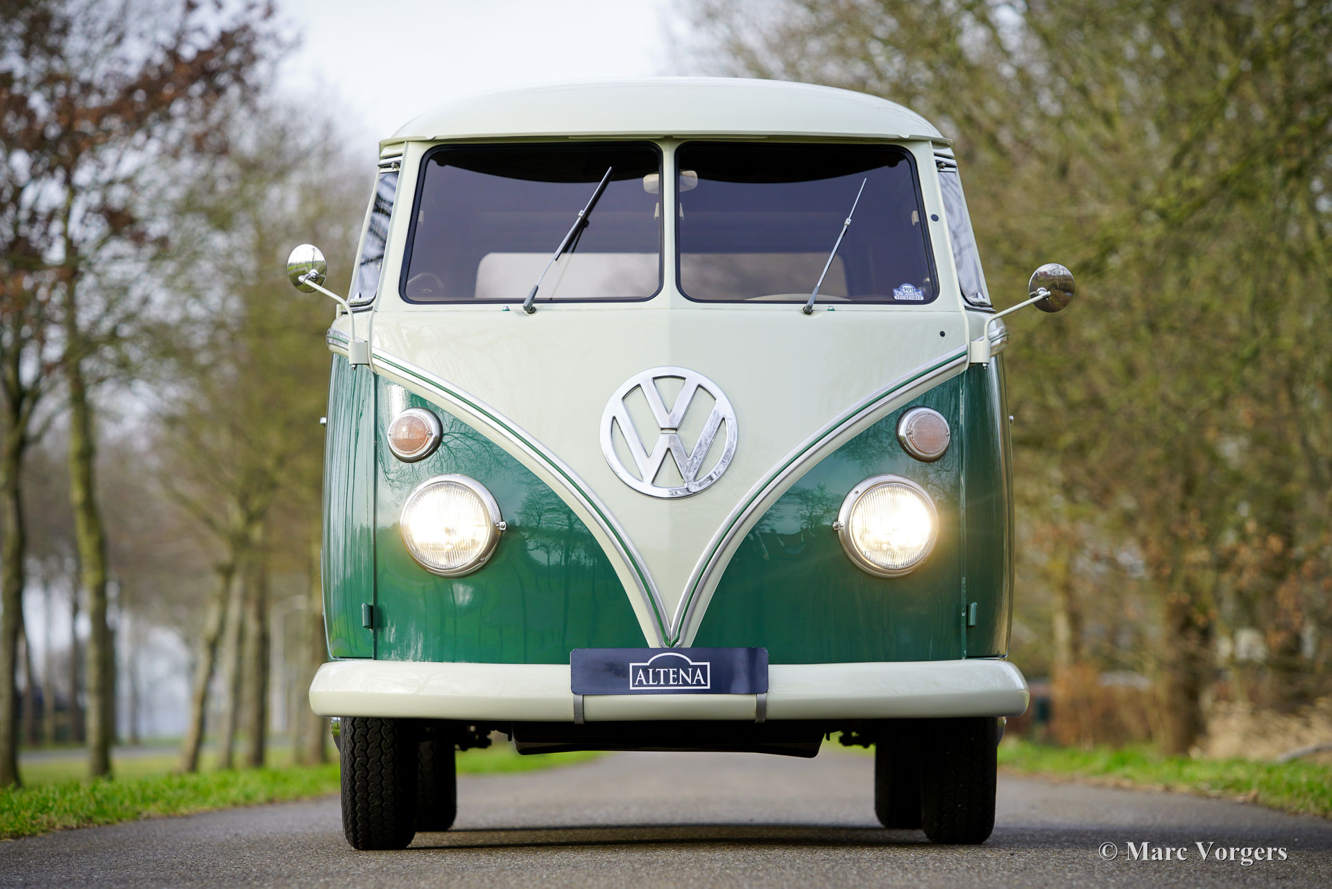 Volkswagen Type 2 T1 ‘Sundial’ Camper, year 1964. Colour: Creme white over green. Cream white wheels, dashboard, and steering wheel. Beige with light beige vinyl interior upholstery. This gorgeous VW Type 2 T1 Transporter was built in the Hannover Volkswagen factory. The T1 panel van was delivered new in the USA where it was converted to a camping vehicle by the firm of Sundial. In the year 2001 the VW Camper was sold to Ireland, in 2013 the car found a new owner in Germany. In Germany the car was extensively restored to very high standards by a specialist firm in the period 2018-2019. Costs nor effort were spared aiming for perfection. The bodywork was wonderfully restored, the interior was completely renewed, and the mechanical components were overhauled. During the restoration the original 30 bhp engine was replaced by a more powerful 80 bhp variant. Of course, technical upgrades were incorporated to cope with the additional power and speed potential. The steering gear was improved, and disc brakes were added at the front wheels (a very expensive conversion) for additional stopping power and safety. This VW Type 2 T1 drives and handles much better than a fully original example, and it offer a lot more driving fun! This Volkswagen Type 2 T1 Camper has the looks, the ‘oomph’ and the necessary safety upgrades. Some of you may be confused by the designation Type 2 T1; the VW ‘Beetle was the first Volkswagen model, the Type 1. The Transporter or Microbus was the second model, the Type 2. The first Transporter model was the T1 produced between 1950 and 1967. This unique vehicle comes with a large history file; a unique opportunity to buy a superbly restored/looking/driving Volkswagen Type 2 T1 Camper!