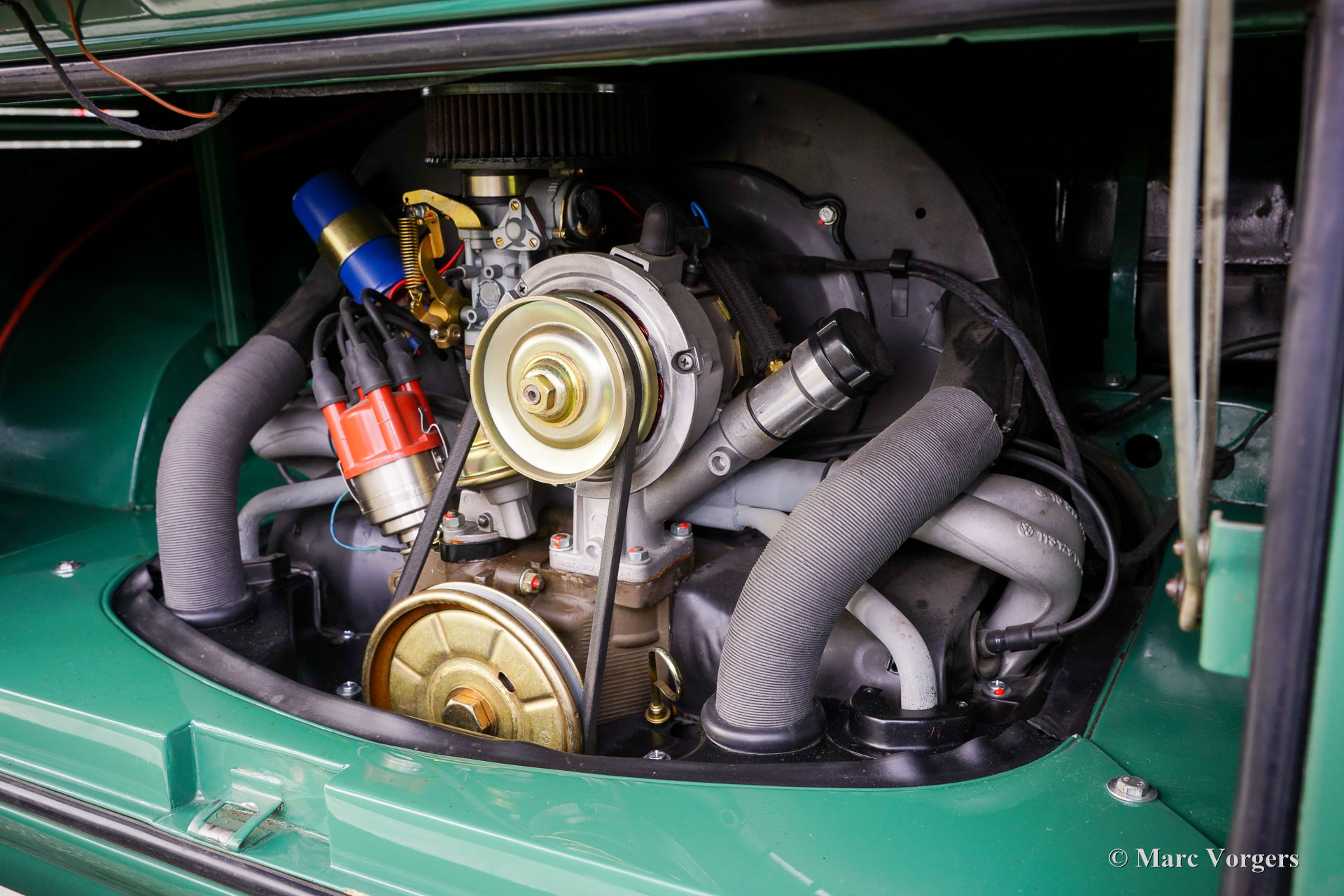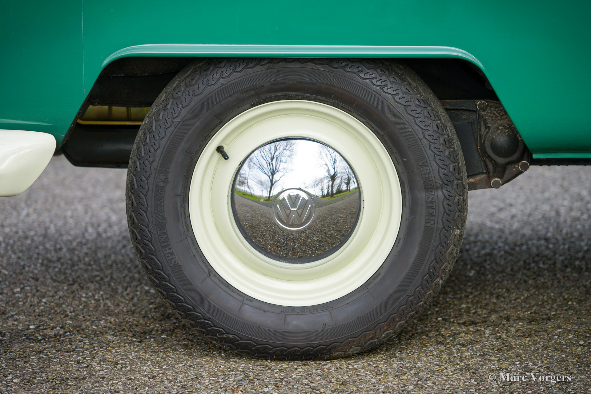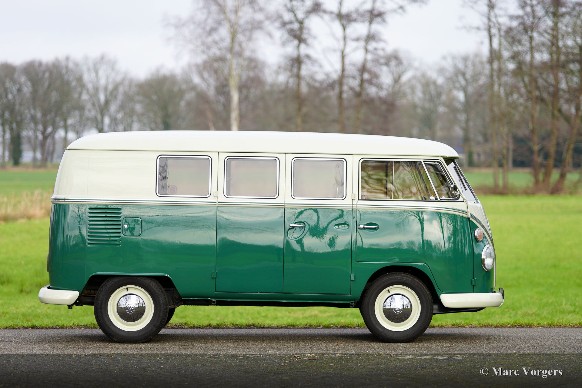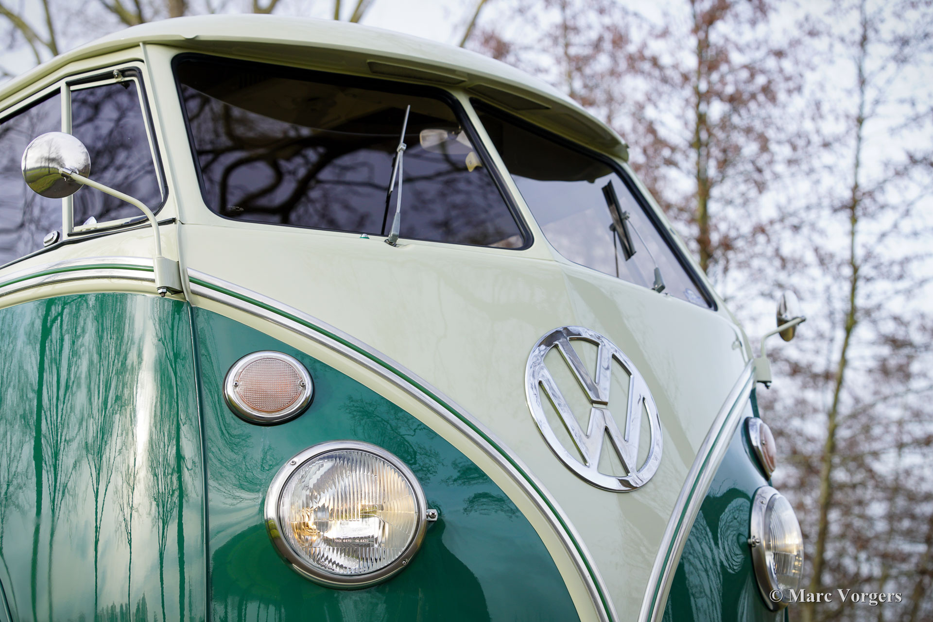 Volkswagen Type 2 T1 ‘Sundial’ Camper, year 1964. Colour: Creme white over green. Cream white wheels, dashboard, and steering wheel. Beige with light beige vinyl interior upholstery. This gorgeous VW Type 2 T1 Transporter was built in the Hannover Volkswagen factory. The T1 panel van was delivered new in the USA where it was converted to a camping vehicle by the firm of Sundial. In the year 2001 the VW Camper was sold to Ireland, in 2013 the car found a new owner in Germany. In Germany the car was extensively restored to very high standards by a specialist firm in the period 2018-2019. Costs nor effort were spared aiming for perfection. The bodywork was wonderfully restored, the interior was completely renewed, and the mechanical components were overhauled. During the restoration the original 30 bhp engine was replaced by a more powerful 80 bhp variant. Of course, technical upgrades were incorporated to cope with the additional power and speed potential. The steering gear was improved, and disc brakes were added at the front wheels (a very expensive conversion) for additional stopping power and safety. This VW Type 2 T1 drives and handles much better than a fully original example, and it offer a lot more driving fun! This Volkswagen Type 2 T1 Camper has the looks, the ‘oomph’ and the necessary safety upgrades. Some of you may be confused by the designation Type 2 T1; the VW ‘Beetle was the first Volkswagen model, the Type 1. The Transporter or Microbus was the second model, the Type 2. The first Transporter model was the T1 produced between 1950 and 1967. This unique vehicle comes with a large history file; a unique opportunity to buy a superbly restored/looking/driving Volkswagen Type 2 T1 Camper!
