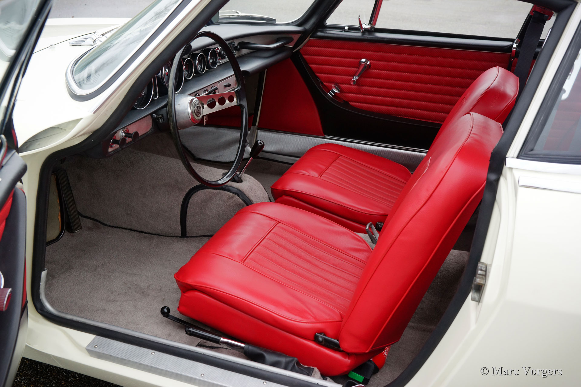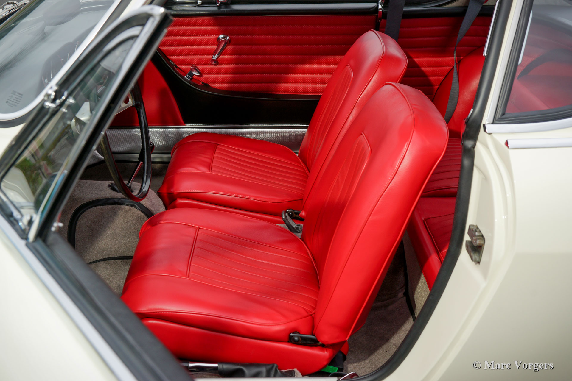 Volvo P1800 Jensen, year 1963. Colour ‘California white’ (colour code 42) combined with a red interior (code 302) and grey carpet. This gorgeous Volvo P1800 is an original P1800 with a bodywork built by Jensen in the UK. Only 6000 P1800 cars were built by Jensen, this car is number 4851. The car was imported to the Netherlands in the year 2000, and it was acquired by the current owner in 2016. From that year an extensive restoration started which was completed recently. The car was restored to factory original specifications, bar the fitment of a modern brake servo. Everything was checked, overhauled / restored and or renewed. Only parts which were beyond repair were renewed by Volvo quality parts from VP Autoparts in Sweden. The bodywork was restored from the bare metal by the firm of Hogenboom in the Netherlands and finished with a high-quality paint system. The interior was completely re-upholstered to original specifications and the dashboard instruments where overhauled. The brightwork was perfectly re-chromed in the UK. The mechanicals like engine, overdrive, brakes, carburettors, starter motor, dynamo, brakes, and suspension were fully overhauled. The gearbox and the differential proved to be in excellent condition, these were checked over, cleaned, given new seals, and refurbished externally. The engine was fitted with custom built CP pistons and a modified rear oil seal. Furthermore, the wiring loom was renewed, the brake lines were renewed, all the rubber parts were renewed, the fuel tank was renewed, and the body was given a sound proofing treatment and transparent anti-corrosion protection. This gorgeous Volvo P1800 features the rare original wheel covers, the original FIAMM air-horns, a Stainless-Steel exhaust system and a classic Blaupunkt Munster radio with FM reception. This magnificent Volvo P1800 is in BRAND NEW condition, and it looks exactly like it left the Volvo factory gates in 1963! A fantastic specimen for the Volvo collector and P1800 enthusiast.