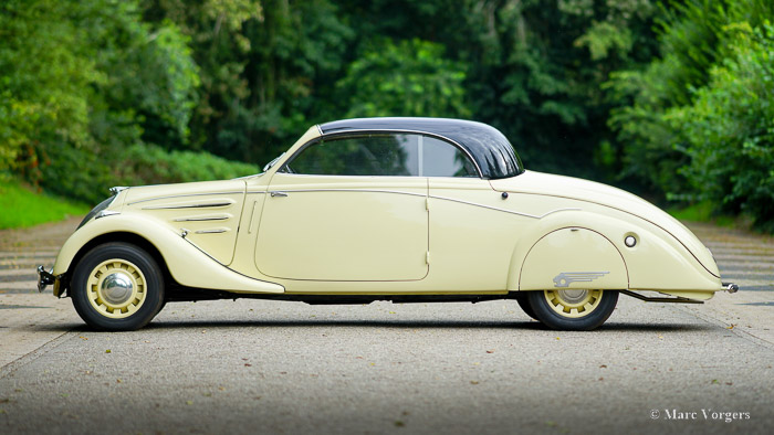 Peugeot 402 L Eclipse, year 1935. This beautiful Peugeot 402 L Eclipse is finished in soft yellow with a black roof and a black leather interior. The Peugeot 402 L (longue) Eclipse is an extremely rare automobile. Only 473 examples were built. This design was a bold step in the Art Deco movement and distinguished the 402 from its contemporaries. However, the true wonder of this model lies in the "Eclipse" designation: In 1934, the Peugeot 401 Eclipse was the world's first production car with a retractable metal hardtop. The 402 Eclipse took this concept to an unprecedented level with its magnificent design. The car was completely restored intermittently between 2000 and 2021. The restoration at Classic Job was followed by ClassicarGarage Job since 2017; click here for the report. Since completion of the restoration, the car has driven approximately 2,000 kilometers. This beautiful Peugeot 402 L Eclipse is in concours condition. A magnificent and