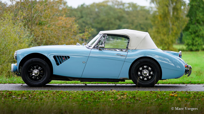 Austin Healey 3000 Mk II (A) convertible, 1964. Bodywork finished in light blue (Iris Blue) combined with a black leather interior. Cream white vinyl soft-top and a black hood cover. This beautiful Austin Healey 3000 Mk II convertible, also known as Mk II A, was fully restored and perfectly rally-prepared by Altena Classic & Rally Service between 2007 and 2009. No expense or effort was spared to meet the owner's requirements. Including the initial purchase of the car, the restoration and preparation costs amounted to €150,000. Such a top-class project would no longer be possible for that price today. In 2009, this "Big Healey" won the Dutch FOCWA award for the best rally-prepared "Austin Healey" at the InterClassics in Maastricht. Over the past sixteen years, the car has successfully competed in numerous historic events in the hands of its dedicated owner. The car has been meticulously maintained by specialists. This impressive Austin Healey rally car is in a very good to excellent condition with some signs of wear. This is a truly special and spectacular Austin Healey 3000 rally car! More information on the website.