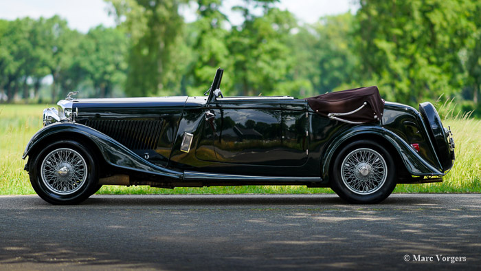 Derby Bentley 3.5 Liter Park Ward, 1934. Colour: Dark British Racing Green combined with a dark red leather interior and grey carpet. Dark brown hood and hood cover. This magnificent Derby Bentley 3.5 Liter was sold new in Great Britain. The car is in beautiful original condition and features the original Park Ward open touring bodywork with a 3-position hood (open, half-open, and closed). This almost 90-year-old Bentley is a magnificent time capsule with all original details and a beautiful patina. Mechanically, the Bentley is fully up-to-date and the car is ready to be enjoyed by a new owner who recognizes the importance of this original piece of Bentley heritage. The history is known from day one, as are the names of all previous owners. In recent years, the gearbox and carburetors have been overhauled, and the overdrive was rebuilt. In 2017, the bodywork was repainted in its original colour. This vintage Bentley is a wonderful driver's car in beautiful, original condition! More information on the website.