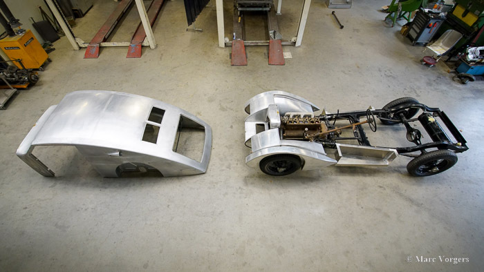 Classic Job is building a reconstruction of the 1932-1933 Citroën Rosalie "SPIDO" record-breaking car for a client in the Netherlands. Like the original, the reconstruction is based on a Citroën 15CV chassis with a 2722 cc six-cylinder engine. The aluminum bodywork has been recreated using period photos and other historical sources. The body and chassis have now been 'married' (put together). More information on the website.