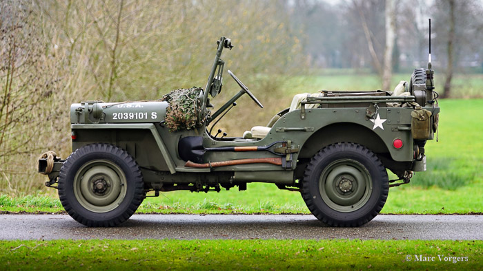 Willeys MB Jeep, built in 1942. Colour army green combined with light green canvas seat upholstery. This Willeys MB Jeep is an original example from 1942 in very good and complete condition. The car shows fantastic original details and drives very well! The Jeep has been kept in a car collection and has been driven regularly. In 2023, the car took part in a Liberation Ride in Normandy. The car comes with the correct papers and is currently registered in the Netherlands. A wonderful find for the enthusiast.