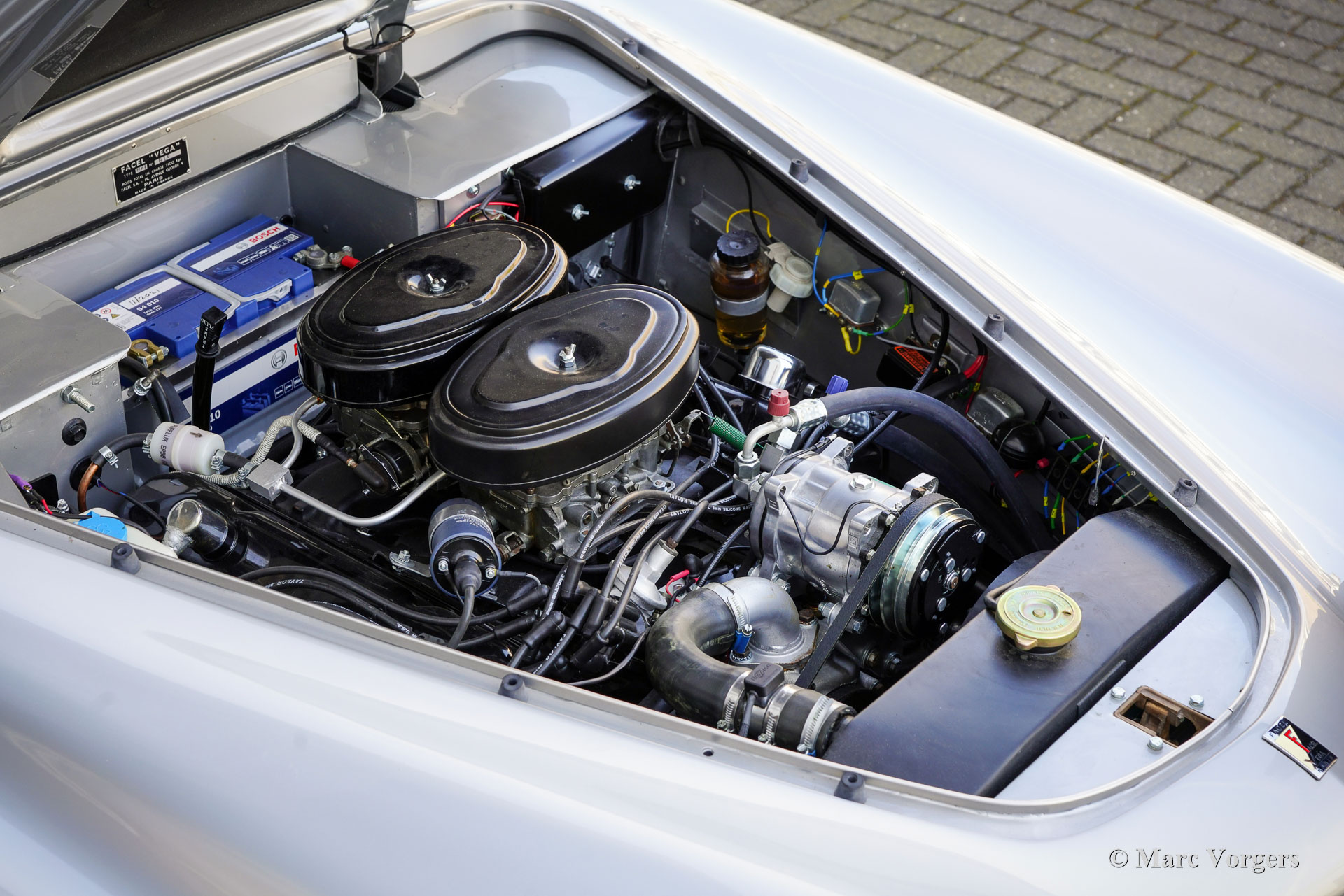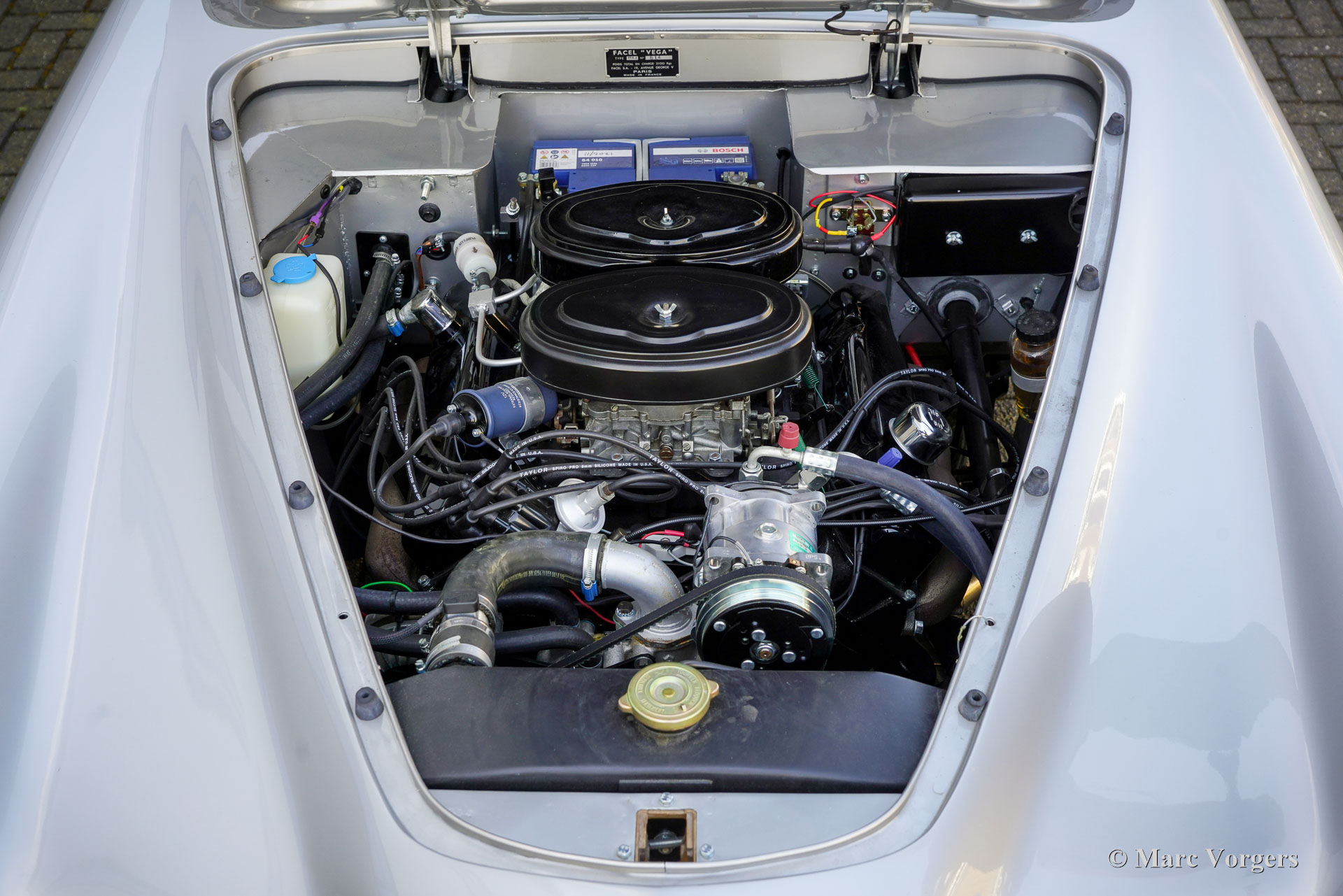 The original engine (383 Wedge V8) could no longer be saved due to serious internal rust. The unit was replaced by a Chrysler 413 cui (6.7 L) 'Wedge' V8 engine, as also used in Facel IIs with a manually operated gearbox. This engine has been completely overhauled, with all moving parts renewed. - Carburettors: