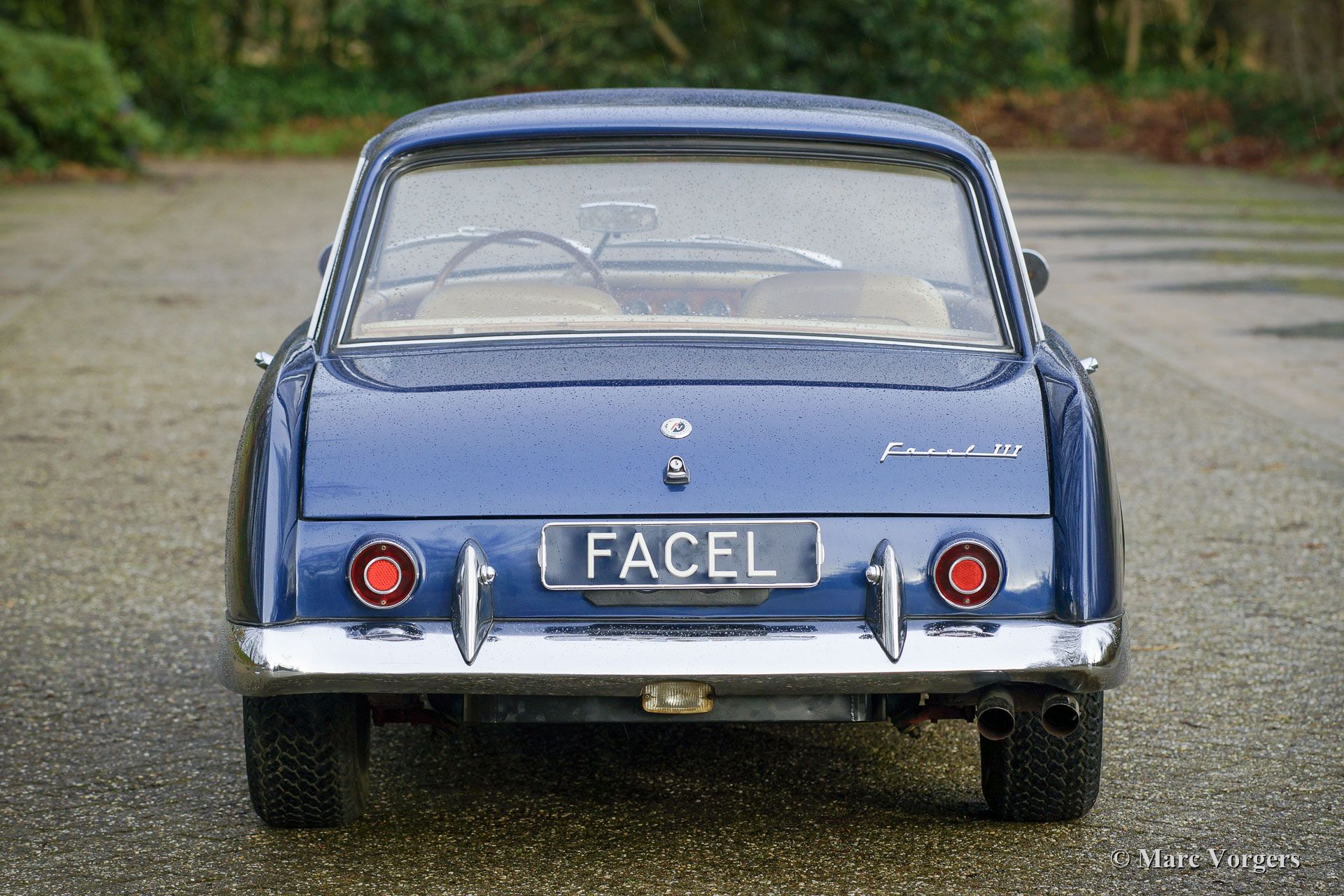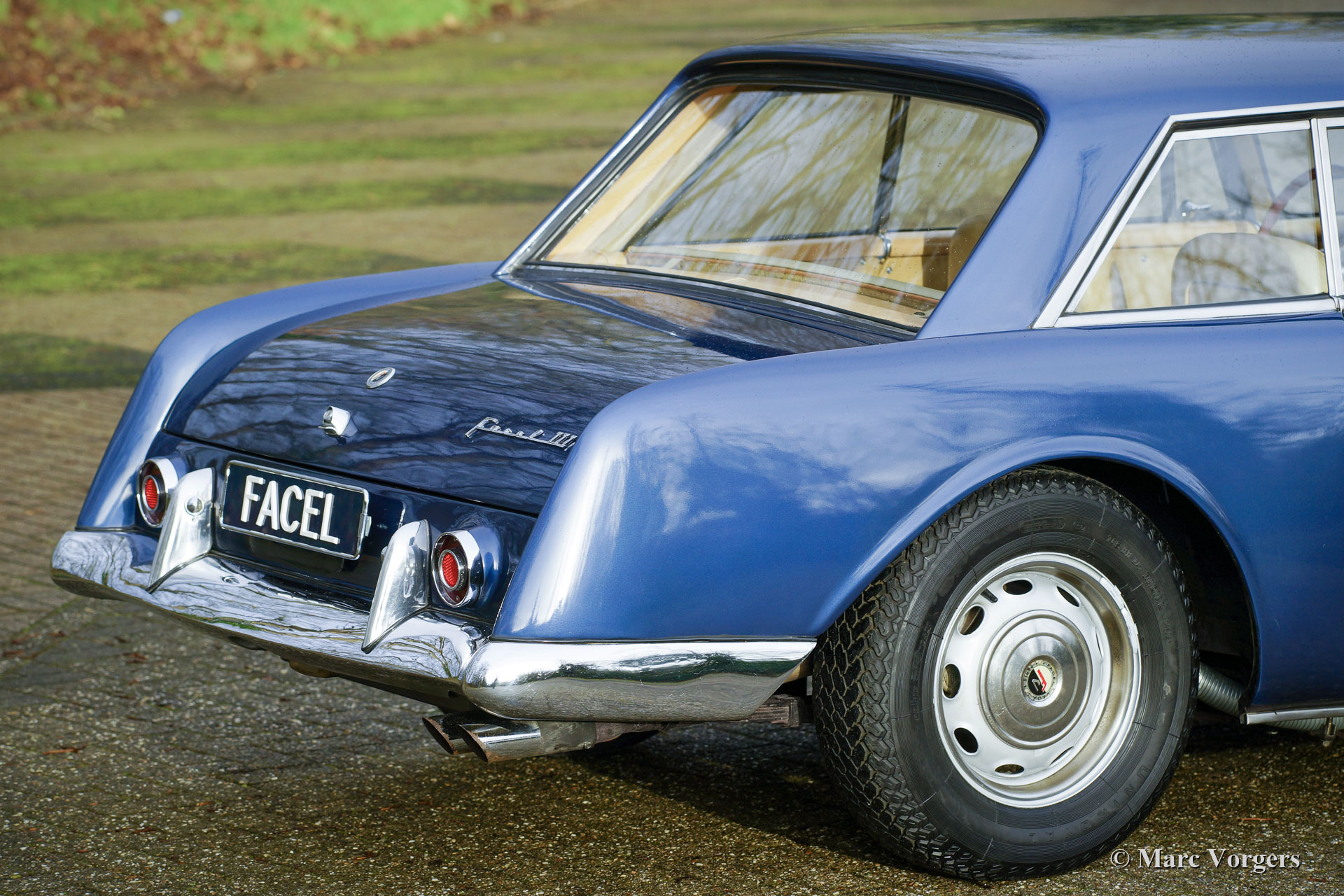 Facel Vega Facel III, year 1964. Colour blue metallic combined with a beige vinyl interior, pale beige carpet, and beige head lining. This wonderful Facel III was sold new in Switzerland where it was first registered in 1965. In the early 1980s the car was sold to the Netherlands where it lived with one owner for about 40 years! After purchase the Dutchman drove less than 2000 kilometres with the Facel III before it was garaged for many decades. Currently the odometer shows 28921 kilometres, the 1981 Avia oil-change label states that the last oil-change before the sale to the Netherlands was done by 27021 kilometres… Now 1900 kilometres ago. The owner contacted us in the summer of 2021, and we purchased this ‘garage find’ recently. The bodywork of this Facel III was restored between 1977 and 1979 according to the dates on the back of old restoration photos. After over 40 years the paint shows traces of age and use. We have cleaned the interior and renewed the headlining; the interior is still in a fantastic condition! We have put the car back to life with an overhaul of the carburettors, renewal of the petrol tank, fresh rubber hoses, air-filtres, sparkplugs, oils, and fluids. This Facel Vega Facel III is in a good and very original condition, showing all the original details. The car is fitted with two bullet-style wing mounted rear view mirrors and a vintage car stereo. A rare ‘garage find’ to drive ‘as is’ or to be the subject of a full repaint.
