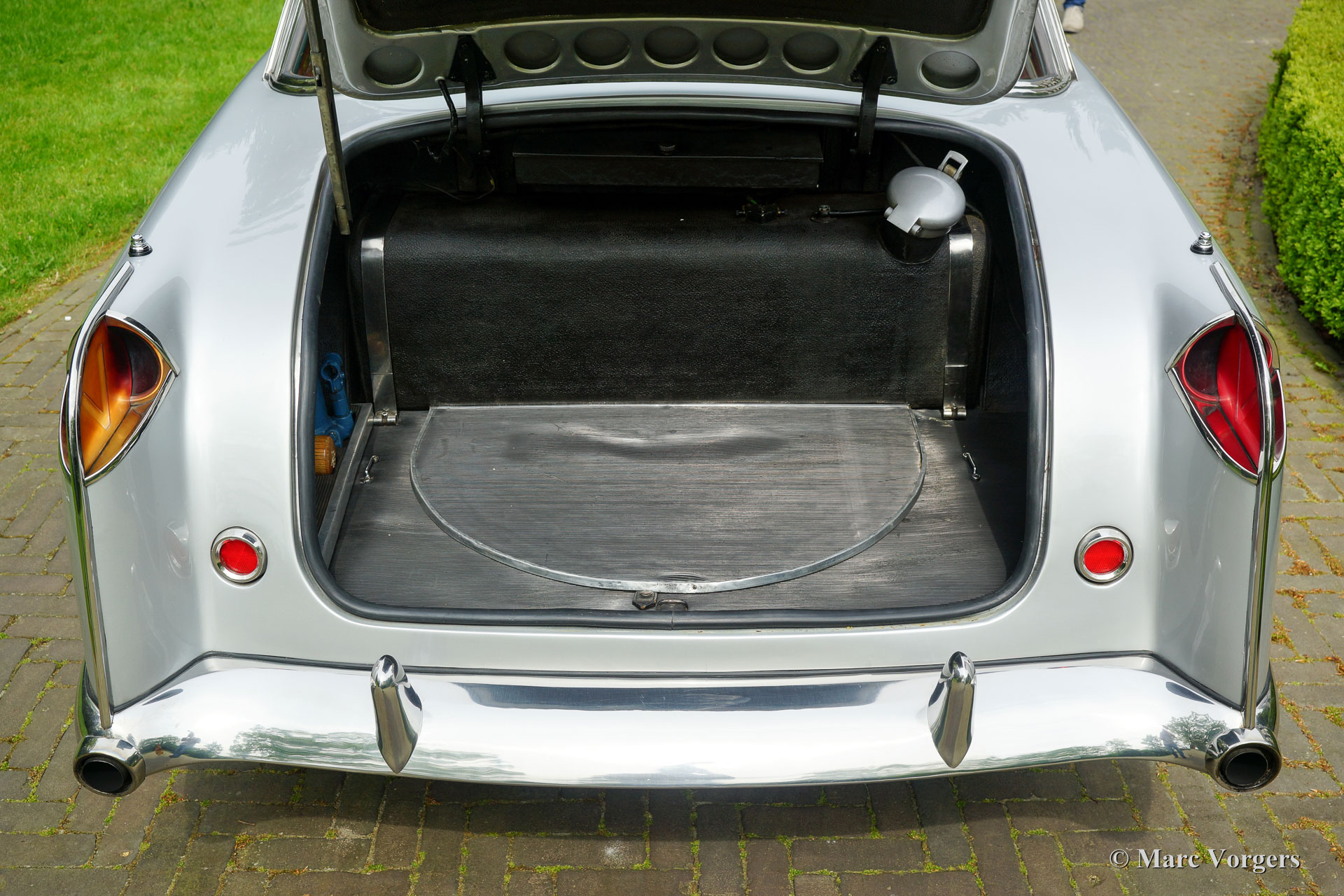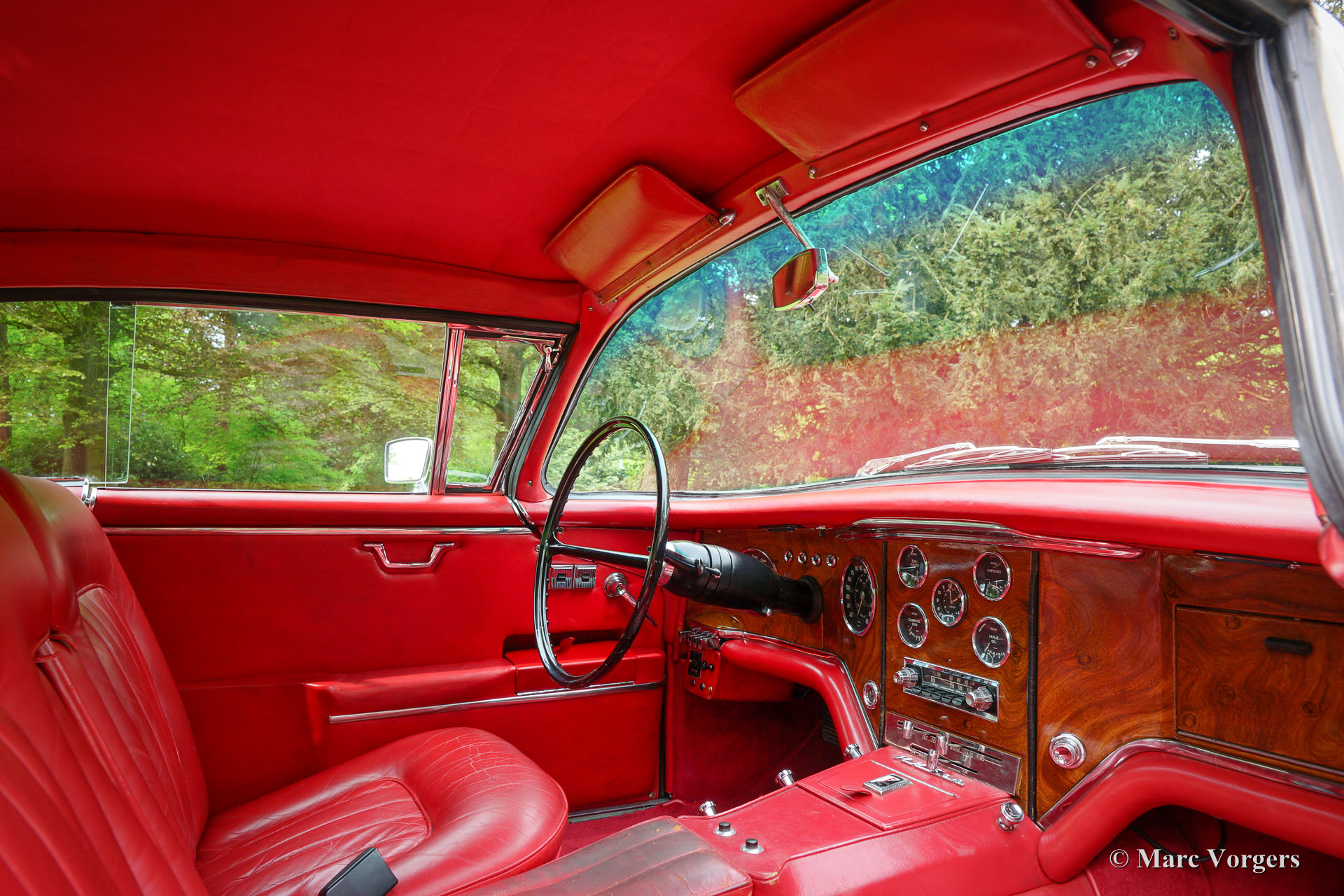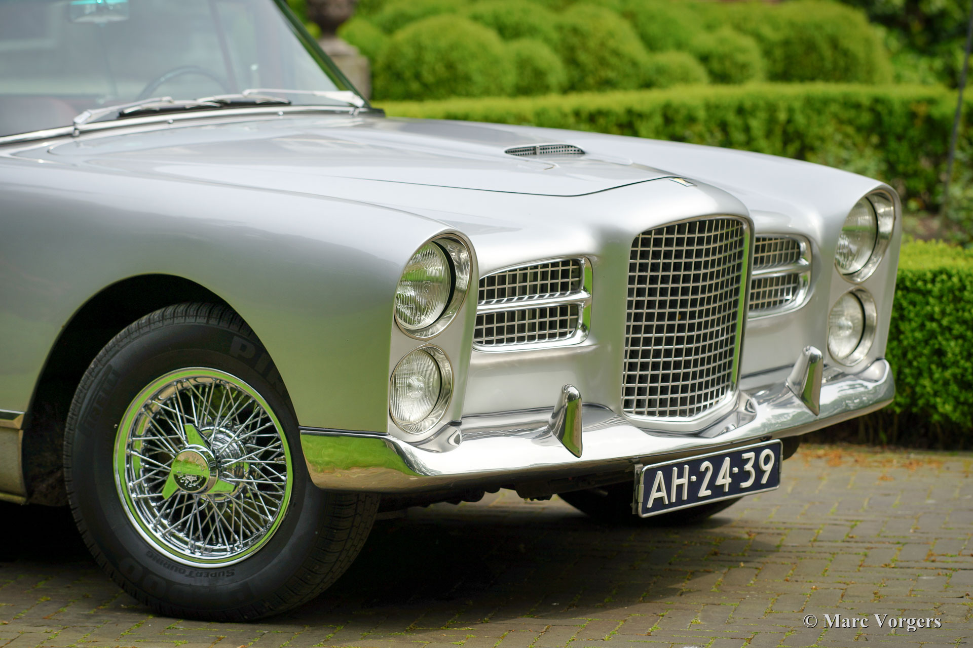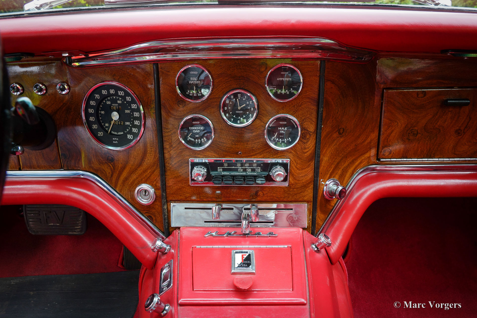 The Facel Vega HK 500 is an extremely luxurious car with a gorgeous finish and beautiful details. The interior is majestic with it’s mock walnut (in the French tradition) dashboard and beautifully chromed handles and switches. The leather upholstery is of an exceptionally high quality the comfort it offers reflects this. The car comes with all of the novelties which were common on the American market at the time. The robustly built automatic windows and the gear shift with it’s stylish buttons are extremely reliable and never fail. Chrome was used sparingly on the HK 500; the bumpers, mirrors and side strips are all constructed of stainless steel. The vehicle is built upon a welded steel chassis within which the strong 6.2 Litre Chrysler V8 is mounted. The undercarriage has independent wheel suspension with coil springs at the front and a live axle leaf spring suspension system at the rear. From 1960 onwards, the HK 500 was equipped with disc brakes around. The Facel Vega HK-500 is rare, only 490 units were built of which 329 still exist.