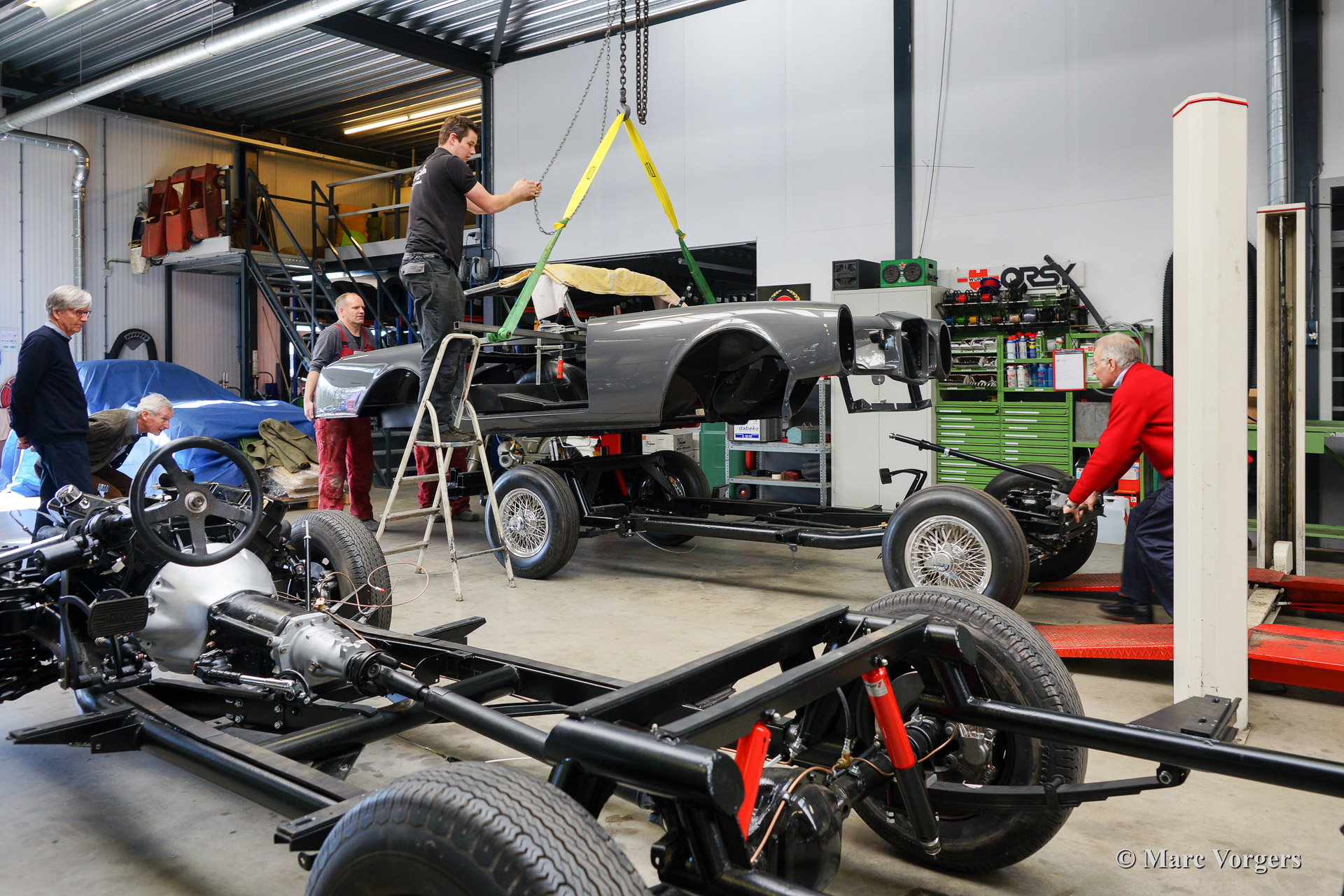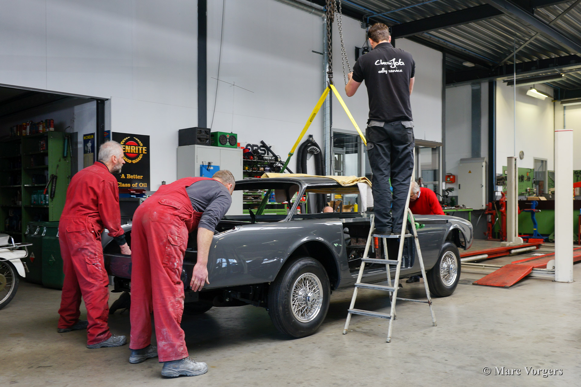 This beautiful 1962 Facel Vega Facel II (HK2 A109) was fully restored for a client. Sheet metal work has been carried out, body work was completed and painted Tudor Grey, the chassis was restored and all the mechanical parts have been overhauled and/or renewed. In the photo reportage you see the chassis and the body work being mated together. Farther below you can admire the final result. In case you want your precious Facel Vega restored by the leading specialist do not hesitate to contact us.