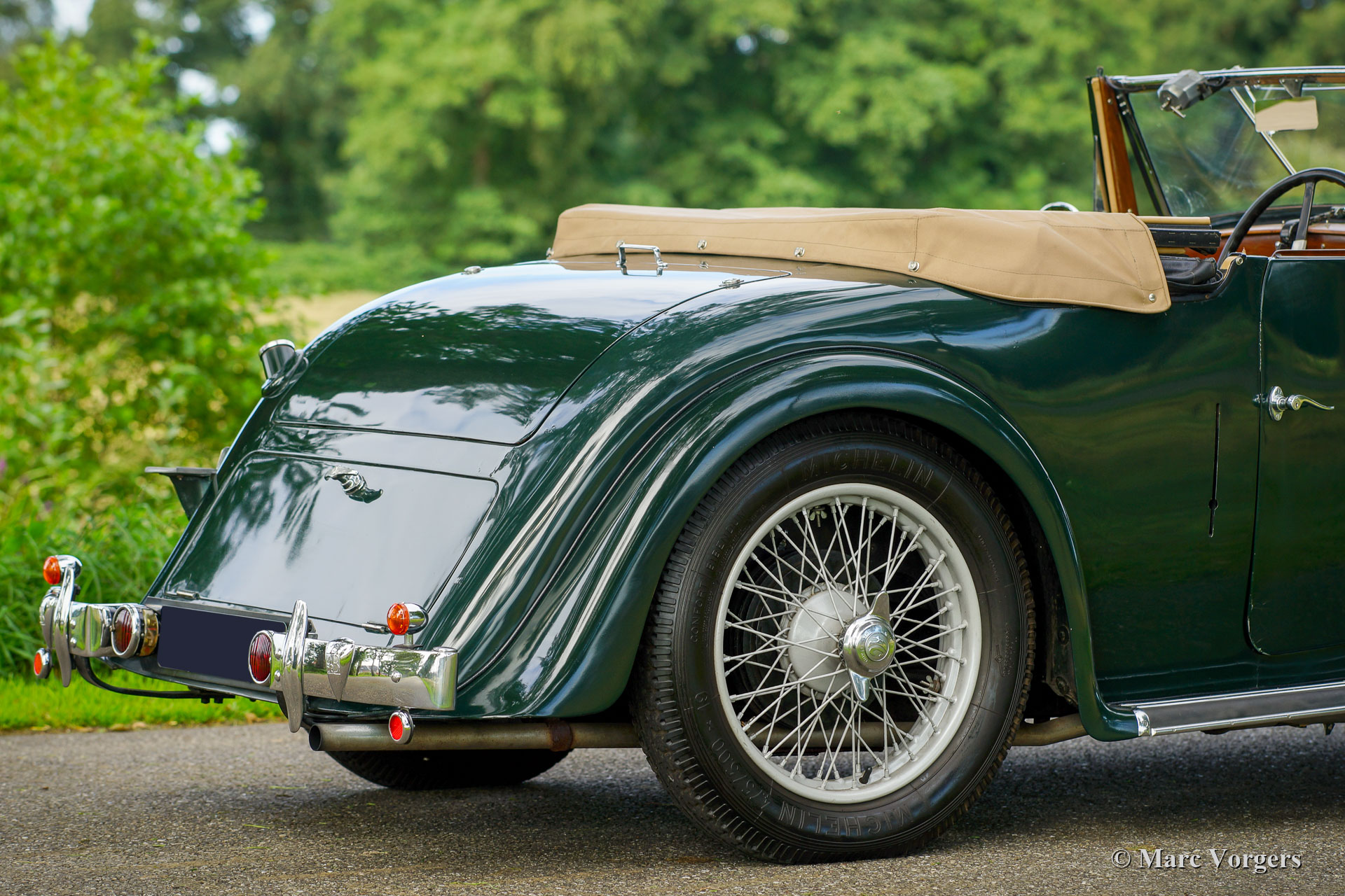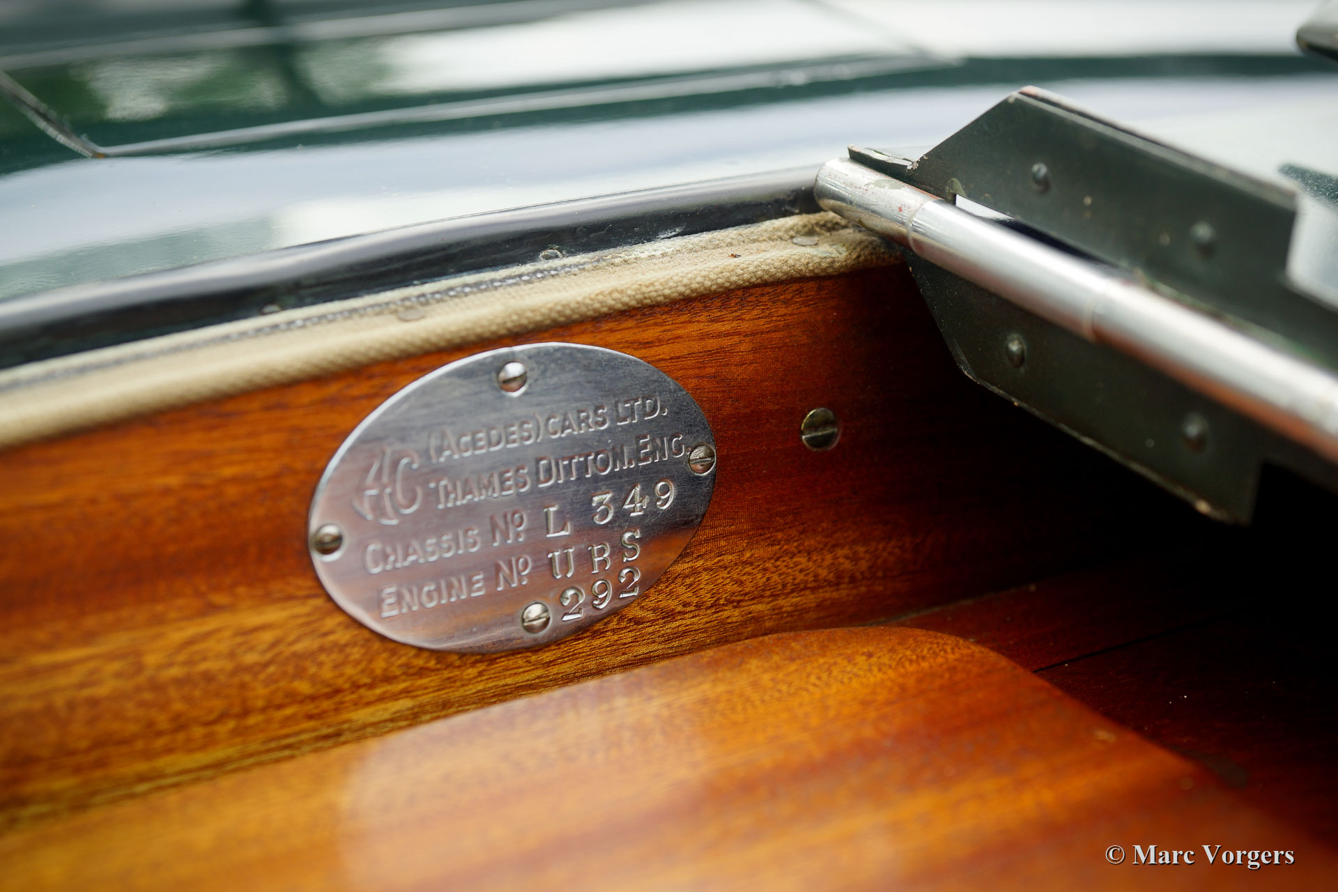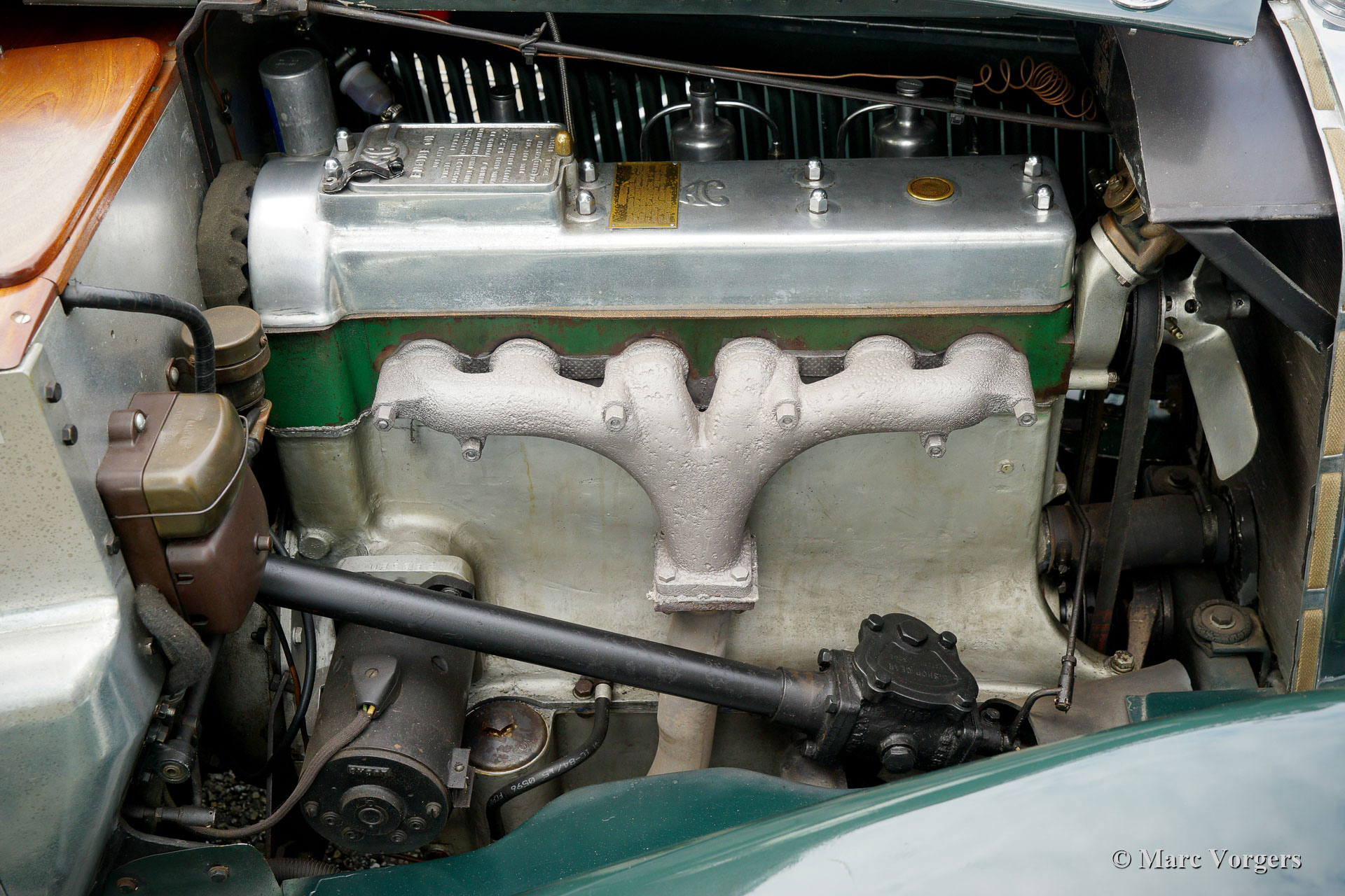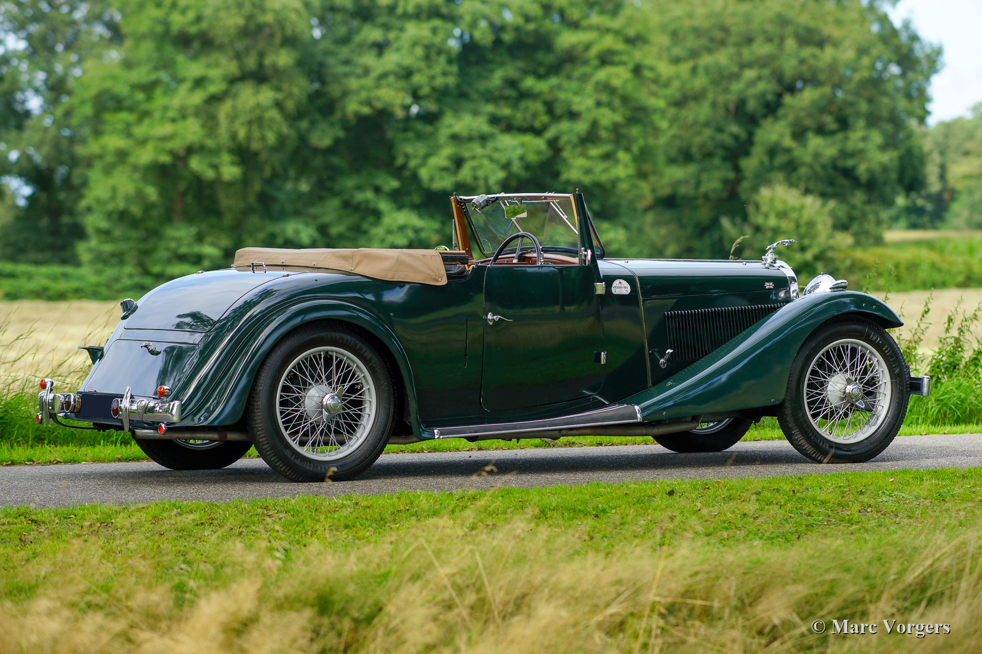AC (Acédès) 16/66 Drophead Coupe, year 1935. Chassis number L34X, engine number UBS.29X Original UK Registration: DPC918. Colour dark British Racing Green combined with a beige leather interior and light brown carpet trimmed with beige edges. The car features a black vinyl hood and a light brown mohair tonneau cover. This rare AC 16/66 DHC was sold new in the United Kingdom. The automobile was exported to the Netherlands in the year 2000 where it had known one owner until 2019. The car is known to us, and in service at our workshop, since 2019. This AC 16/66 DHC comes with a large history file from new. Photos from the car when new, also picturing the first owner and the original registration. Present is a logbook with the names of all the previous owners and the service and repairs which were carried out over the years. Also present are factory original books, a brochure, and the original V5c document. This gorgeous AC 16/66 DHC drives and handles delightfully, and the 4-speed manually operated gearbox shifts perfectly. The six cylinder in-line engine is the same 1991 cc unit with overhead camshaft and three S.U. carburettors as fitted in the 1953 AC Ace sports car. The AC 16/60 DHC is a two-person car featuring a ‘dickey seat’ in the trunk offering two additional ‘emergency’ seats. This rare AC is a super original car which shows all the original details. The old paintwork shows signs of age but is still very nice, a fantastic pre-war patina! This is a rare AC 16/66 Drophead coupé in super original and wonderful condition! The automobile can be imported and admitted in any country worldwide.