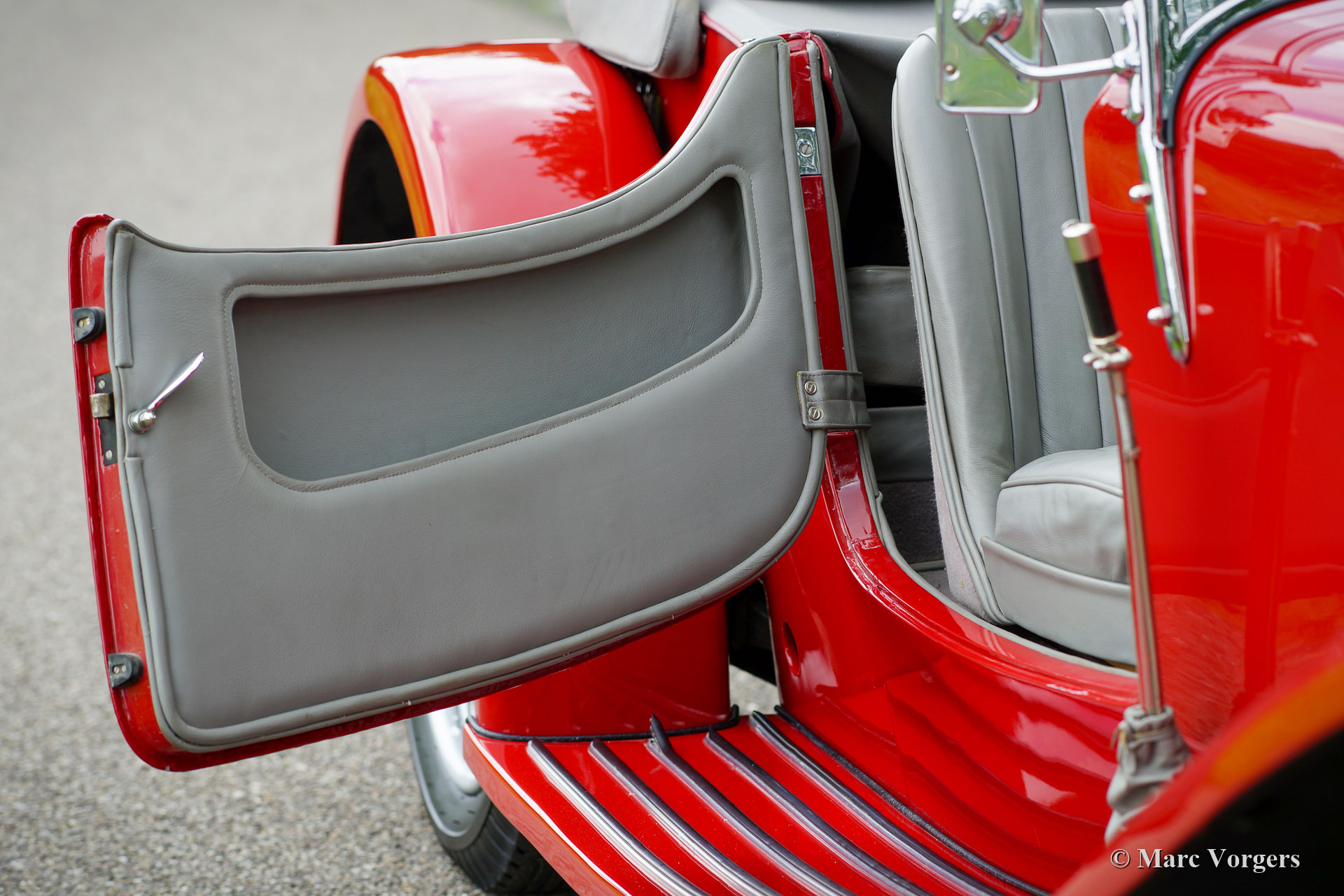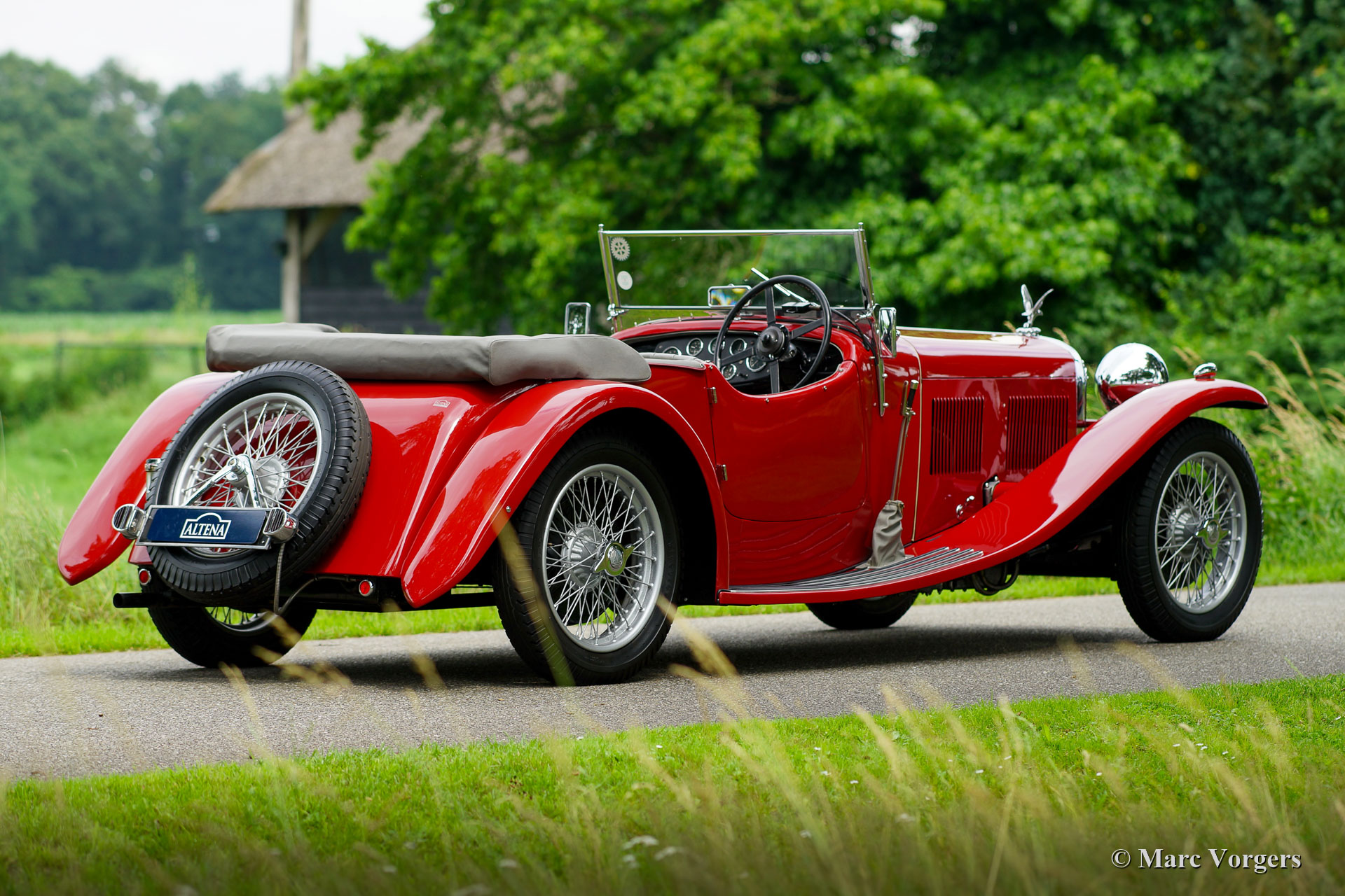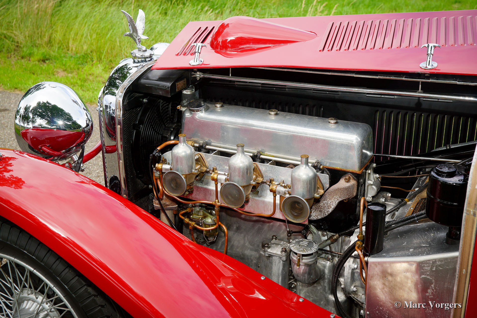 Alvis Speed 20 SA tourer, year 1932. Colour red combined with a pale grey leather interior and pale grey carpet. Pale grey hood, tonneau cover, and hood cover, all trimmed with red piping. This marvellous Alvis Speed 20 SA Tourer was sold new to a family Hebert in 1932. The original order forms for the chassis and the vanden Plas Tourer body are present in the extensive history file. The history is complete from day 1 and all the previous owners are known! This super original Alvis Speed 20 is a matching numbers car, the original Alvis car record, stating the original numbers is present. The last owner has cherished the Alvis since 1996. In the years 2000-2003 the car was fully and perfectly restored by a specialist firm. The mechanical components were overhauled and restored by Alvis specialist Early engineering in the UK. The ‘nut and bolt’ restoration was carried out to perfection. An extensive photo report of the restoration is present. The automobile is still in excellent to superb condition and the car drives, shifts, brakes, and handles delightfully! This is a rare opportunity to obtain an Alvis Speed 20 in wonderfully restored, and still super original condition, complete with a full history and matching numbers. This Alvis Speed 20 SA Tourer is a fantastic find for the Alvis collector and enthusiast.