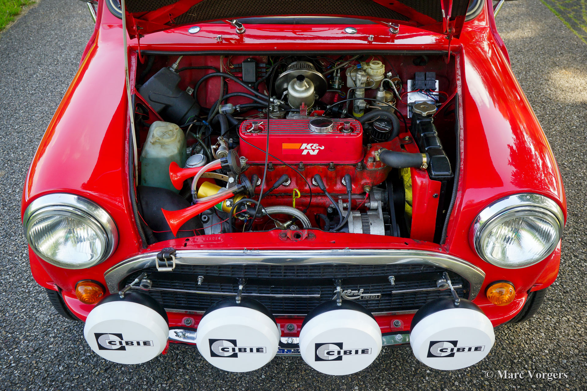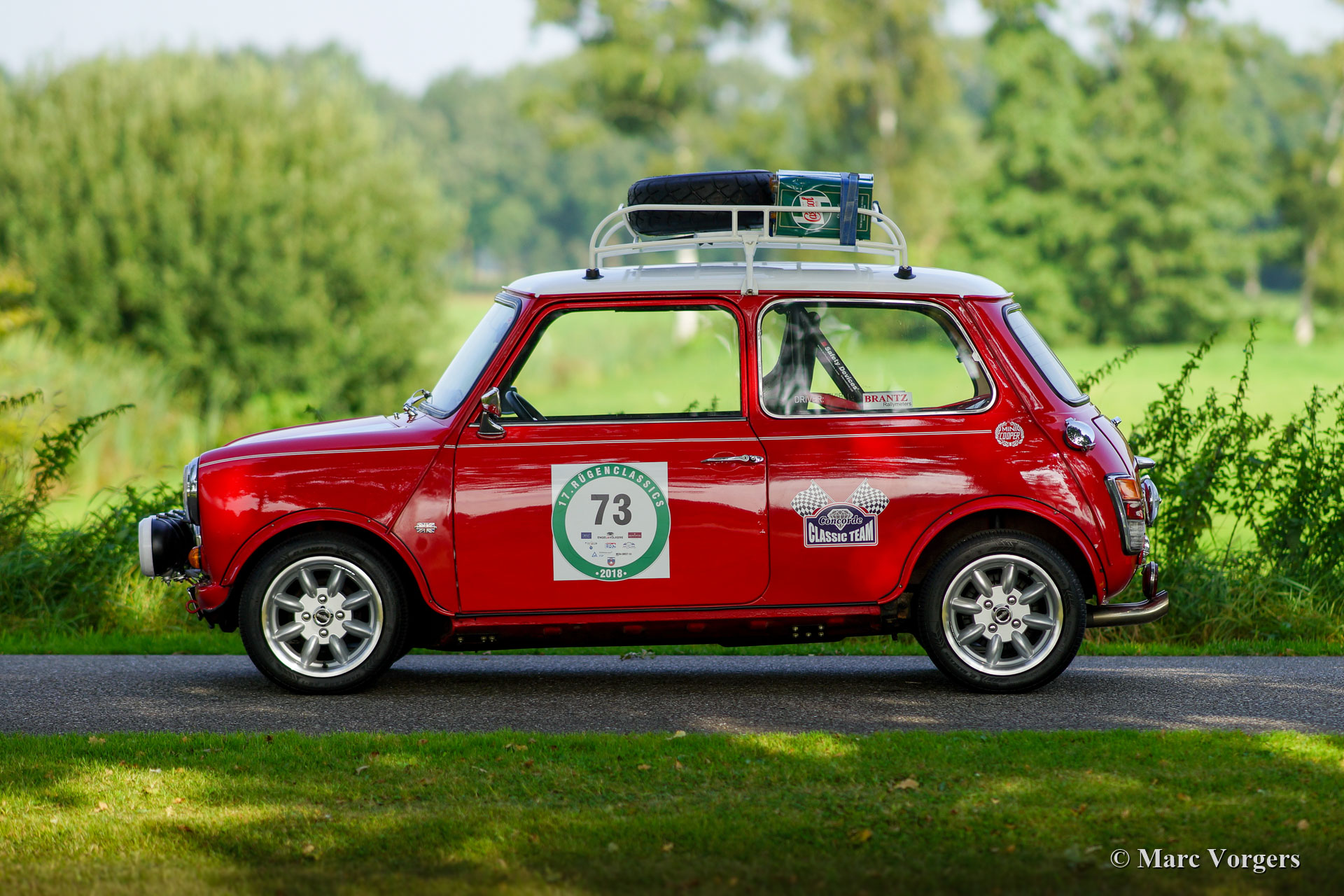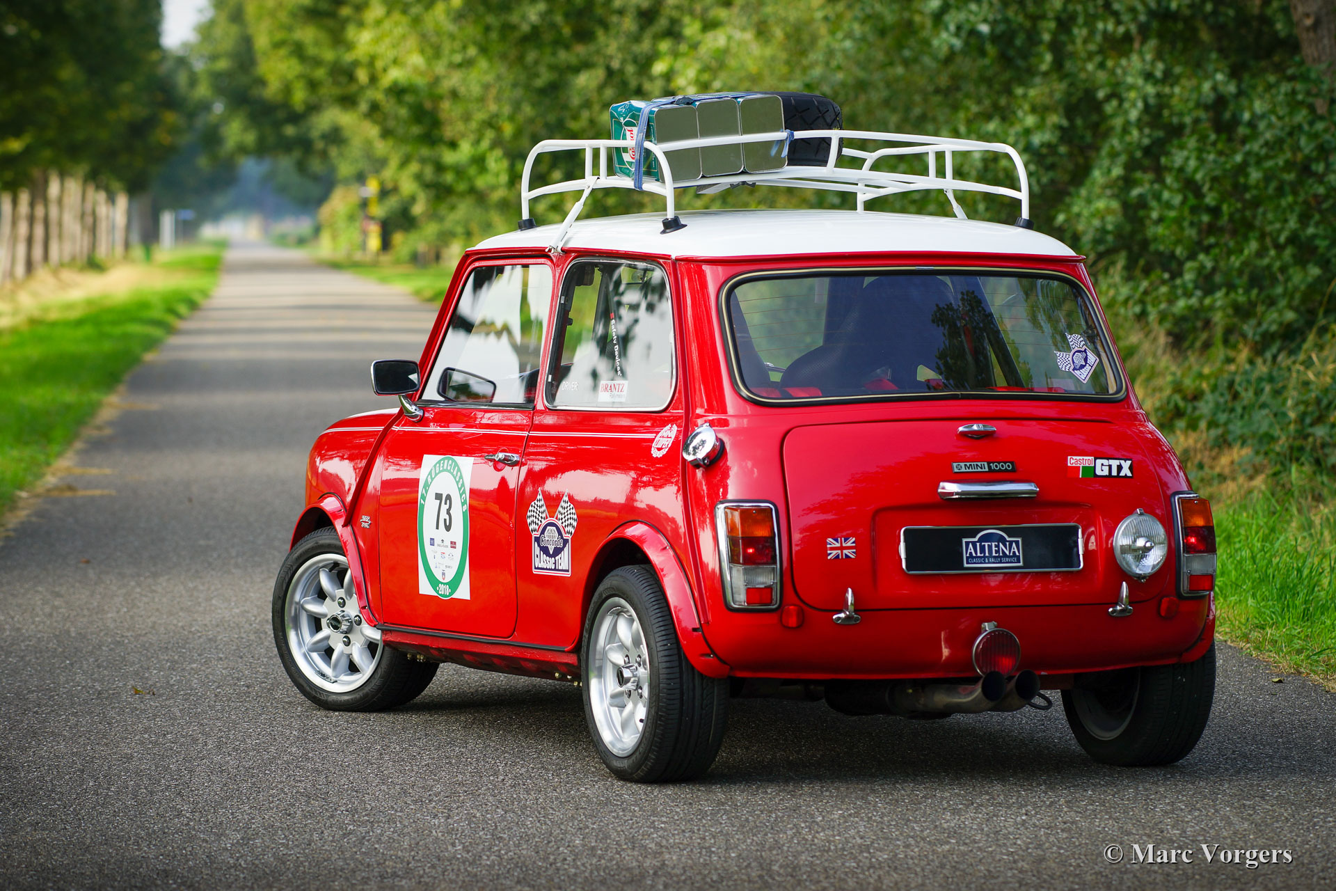 Austin Morris Mini 1000 rally car, year 1981. Colour red with a white roof-top and white bonnet striping. This fantastic Austin Morris Mini 1000 was extensively rally prepared and upgraded with powerful ‘Cooper looks’. The preparation was carried out in the Netherlands and all the invoices are present. Over the last years the car was serviced and improved in detail by Altena Classic Service. This gorgeous Mini rally car drives and handles perfectly, the driver and navigator will have a grin etched to their faces during any historic rally event. The car is in a very good condition showing slight traces of use. This Mini 1000 rally car features wide Maxilite alloy wheels shod with 175/50 R13 tyres, four Cibië ‘Oscar’ auxiliary lamps at the front, a Lucas wide beam reversing lamp and a red Lucas fog lamp at the back, a Mini Cooper S Stainless Steel exhaust system, special leather sports bucket seats with 4-point safety harnesses, a roll cage, and the most important rally equipment on the navigator side of the dashboard. An extra set of wheels is included. This is a beautifully rally prepared Mini and a highly desirable driver car to participate in historic (touring) rally events!