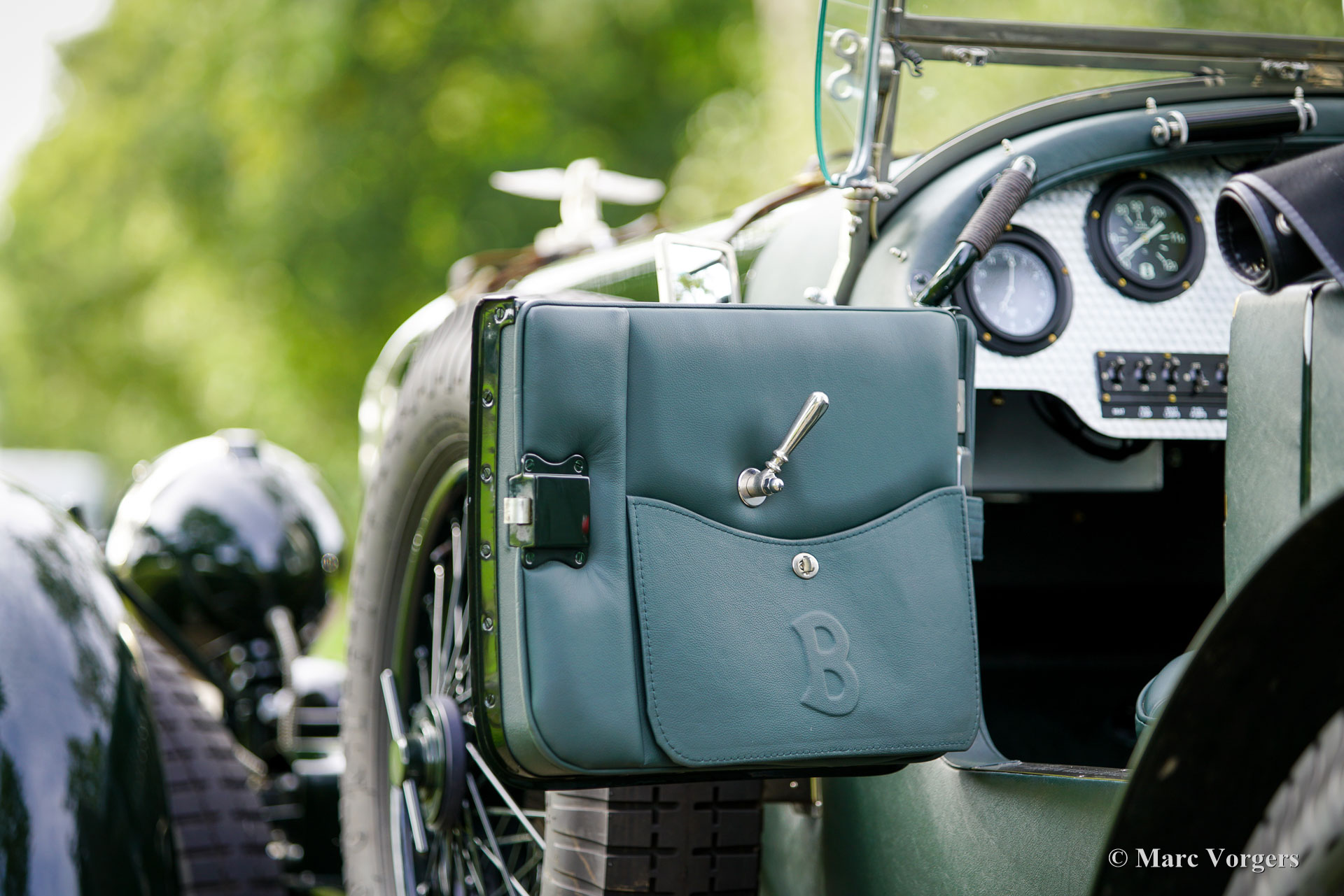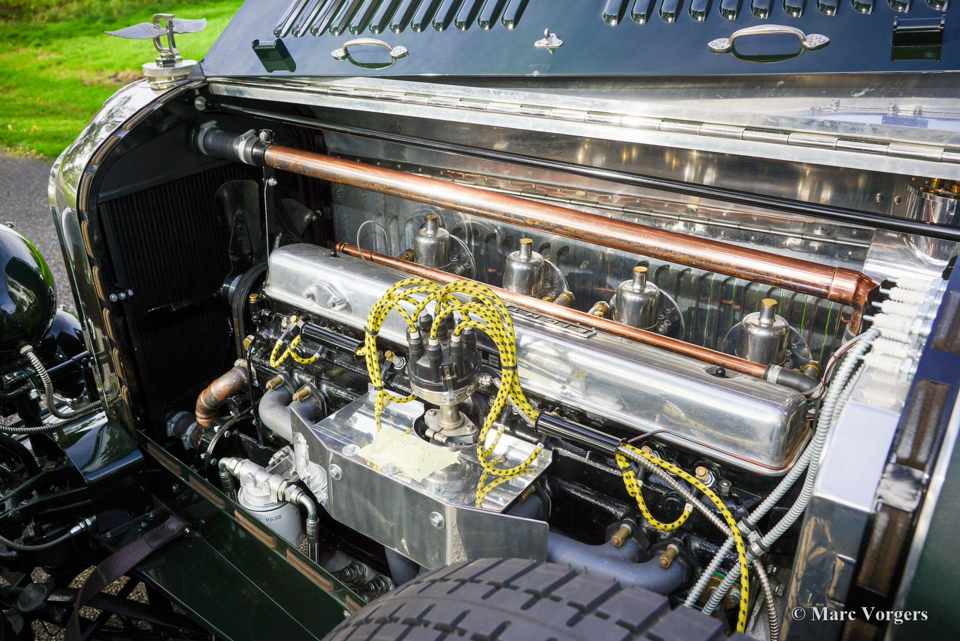 The Bentley 3 Litre was W.O. Bentley’s first design. The car was presented in 1919 but the first cars were sold in 1921. The four cylinder cars of rugged construction where in a class of their own for they combined the size and comfort of the big tourers and saloons with the road holding, and speed of the smaller sports- and racing cars. The Bentley was a true owner-driver car for the sporting motorist and connoisseur. The Bentley car could be had in three different types which were designated with three different radiator badges*. Red badge: short chassis speed model, Blue badge: the early short and then long chassis type for bespoke bodywork, Green badge: very rare and used for about eighteen 100 mph. These Green badge car won at Le Mans in 1924 and 1927 (Old Number Seven.) The 3-Litre was built from 1919 until 1929.