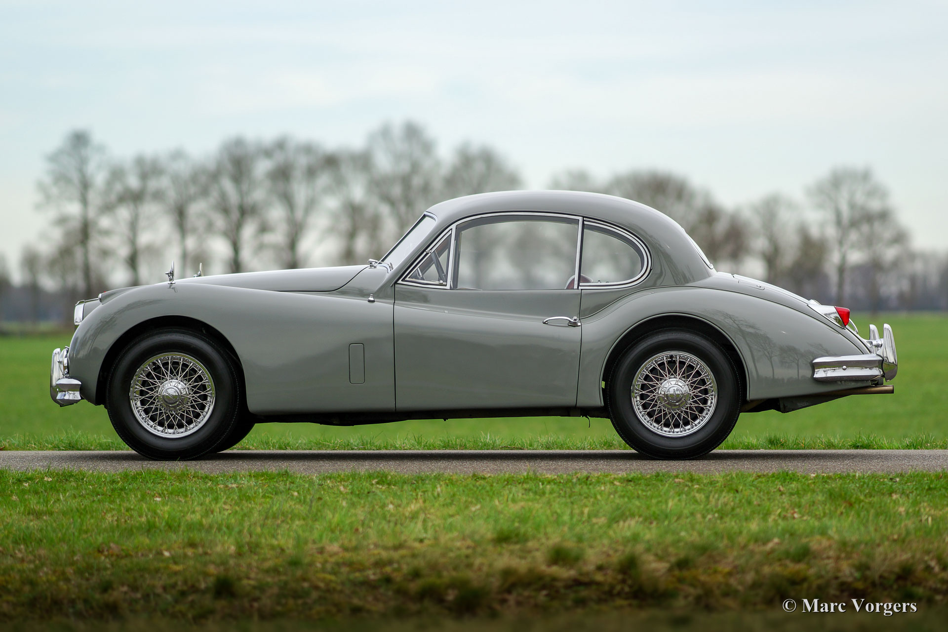 Jaguar XK 140 3.4 Litre SE FHC, year 1956. Matching numbers and colours! A Heritage certificate is present to confirm this. Colour Birch Grey with a red leather interior and red carpet. This gorgeous Jaguar XK 140 was sold new to Oklahoma in the USA. The automobile was imported to the Netherlands in the year 1992. The chassis, bodywork and the interior were extensively and perfectly ‘body-off’ restored in the Netherlands. The bodywork was epoxy coated and the final smoothening was done using the minimal amount of filler. Every single part was restored. The engine was sent over to the United Kingdom to be overhauled by the firm of Forward Engineering (Paul Jaye and Ron Beaty). Today the Jaguar still looks a picture; This XK 140 FHC is in excellent to superb condition throughout! The car drives delightful and the automatic Borg-Warner 3-speed gearbox shifts gears as smooth as it should. The car features a beautiful period radio with chrome front, chrome wire wheels with Stainless-Steel spokes, and Lucas spot-lamps at the front. This is a very rare (may be unique?) Jaguar XK 140 FHC with Special Equipment package and automatic gearbox. An excellent condition and beautiful example!
