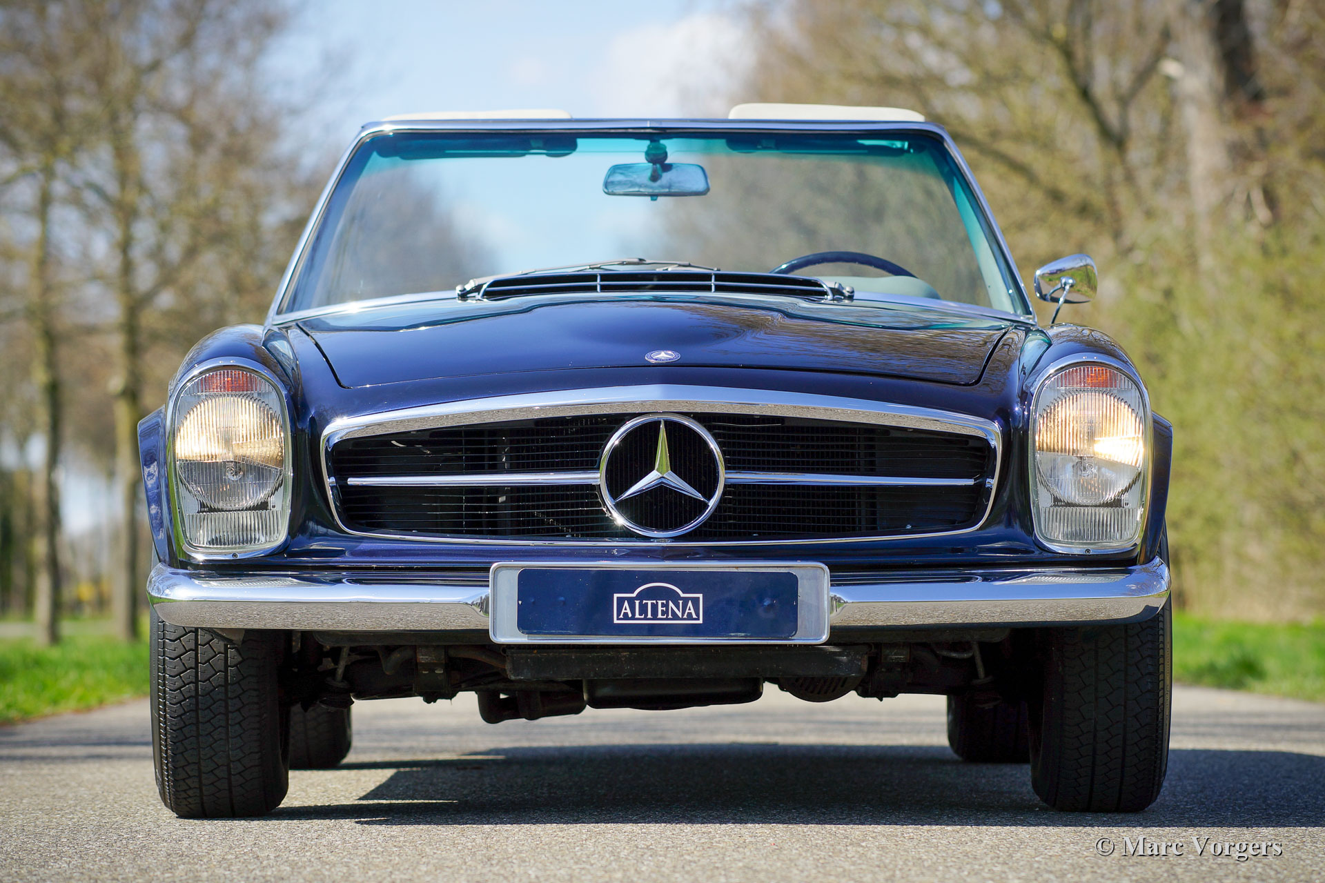 Mercedes-Benz 230 SL “Pagode”, year 1964. Colour dark blue metallic combined with a grey interior and grey carpet. Black mohair hood. This wonderful Mercedes 230 SL of the W113 model series was imported to the Netherlands in the year 1990. We have sold the car to the current owner in 2006, the car is serviced in our workshop ever since. This fine Mercedes 230 SL is in a very good condition and the car drives delightfully. Very nice is that the car features a manually operated 4-speed gearbox. Furthermore, the car is fitted with wonderful Mercedes-Benz alloy wheels shod with Michelin MXV 195/70-14 tyres and a top-of-the-line Becker Mexico Cassette 108 Mhz AM / FM radio. The original jack and toolkit are present. This is a wonderful Mercedes-Benz 230 SL “Pagode” in very good condition. The car is ready for unforgettable road-trips with a proud new owner!