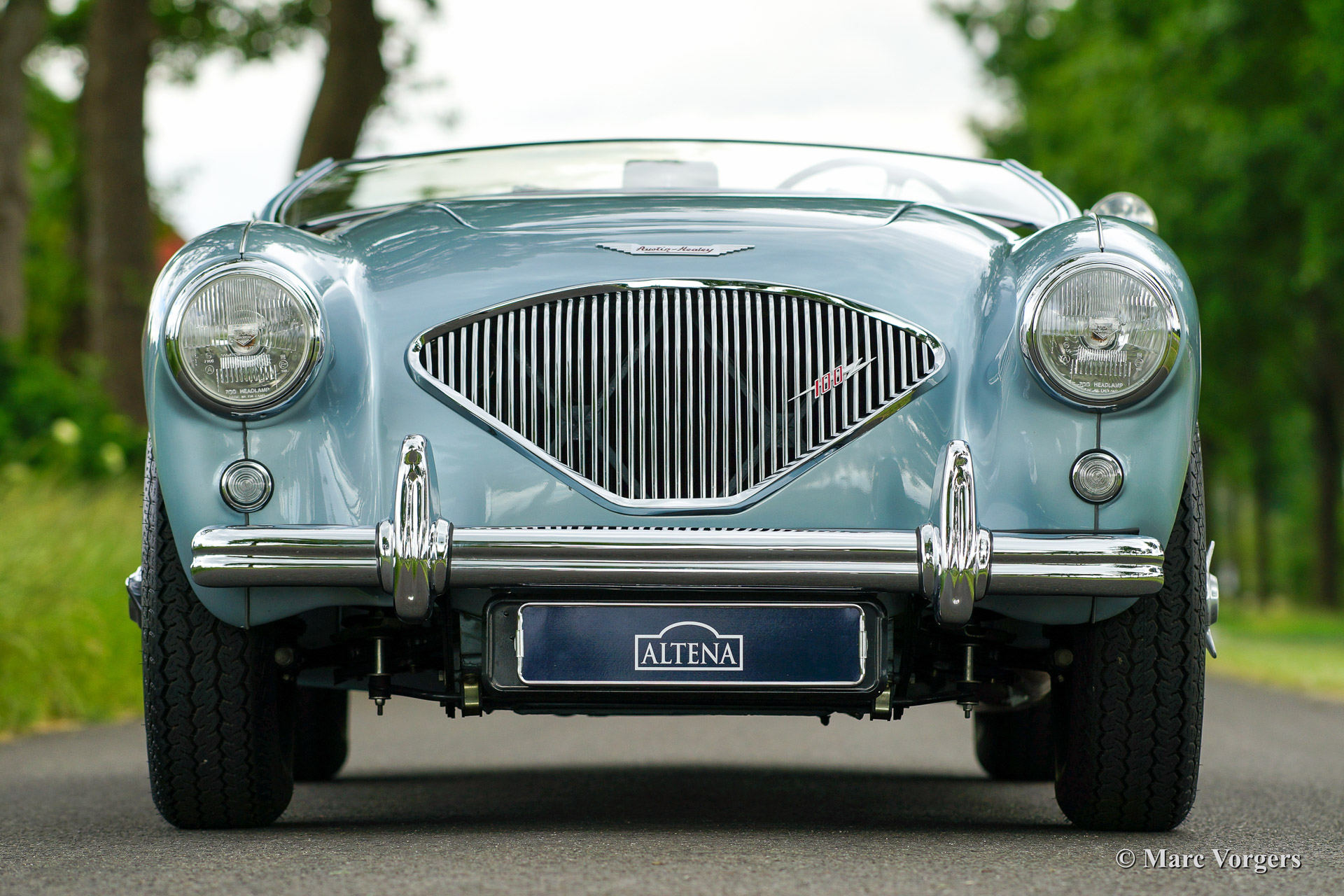 Healey Motor Corporation was going to show their new Healey 100 at the "Earls Court Motor Show"of 1952. Austin Motor Company discovered the beautiful car on the Healey stand before the show opened. Austin Motor Company desperately needed a sportscar to have an opponent for the MG sportscars and the brand new Triumph TR 2 and the Jaguar XK 120.