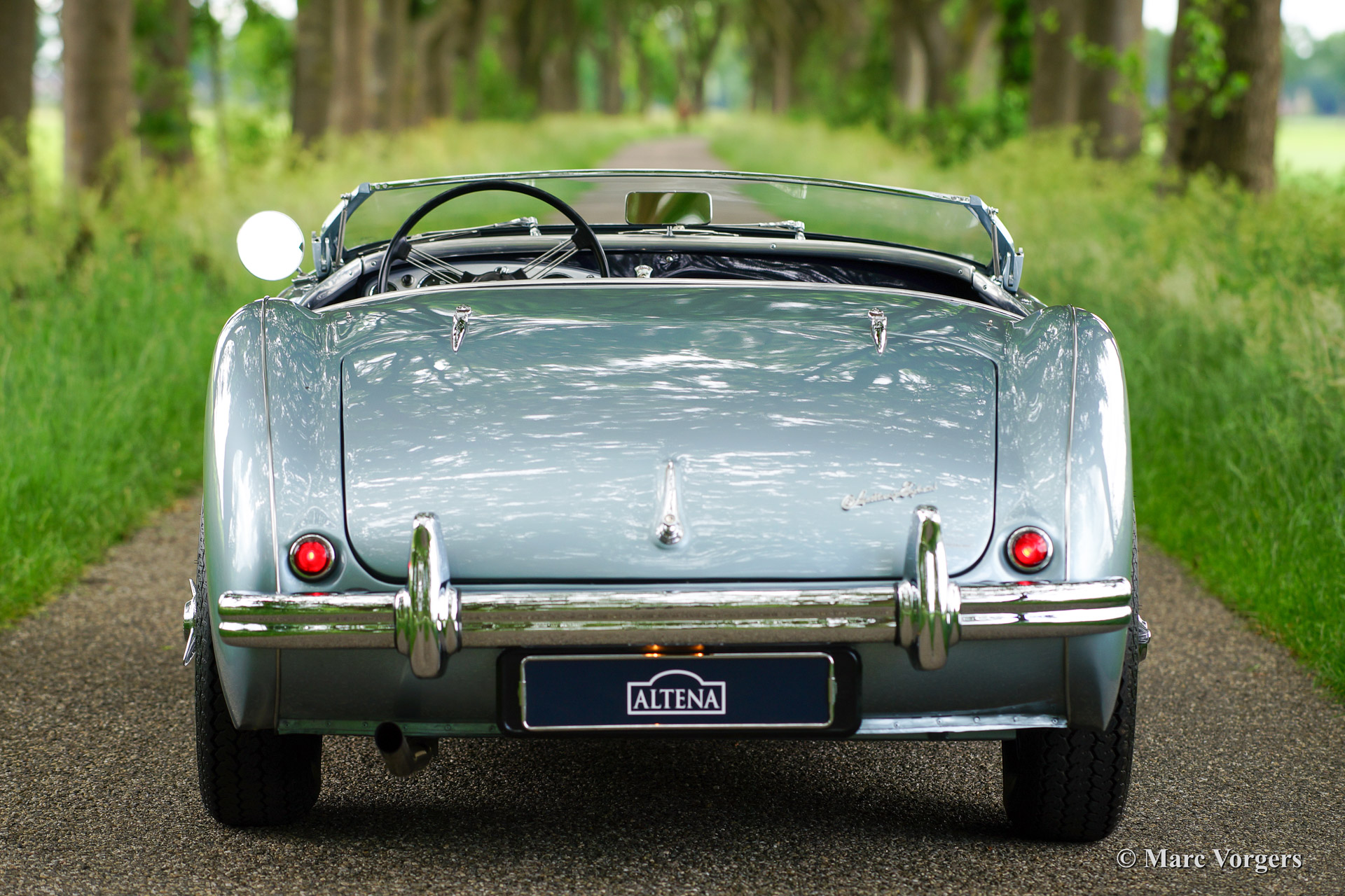 Austin Healey 100/4 BN-1, year 1955. Colour ice-blue metallic. Blue leather interior and blue carpet. This fabulous Austin Healey 100/4 has been extensively restored some years ago, the automobile is in superb top-condition, concours! This fine Austin Healey drives superbly, this is a top specimen for the discerning enthusiast or collector.