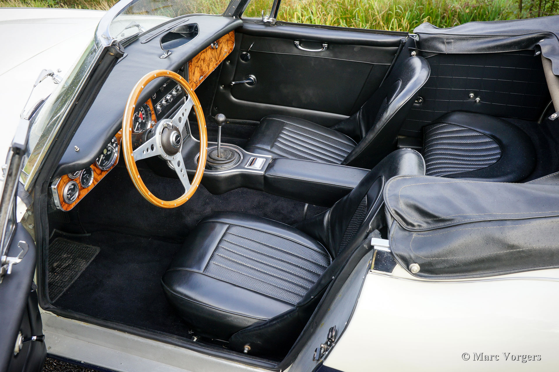 The former Healey models were more Spartan and featured fully detachable soft tops with separate side screens which could be stowed away in the booth.