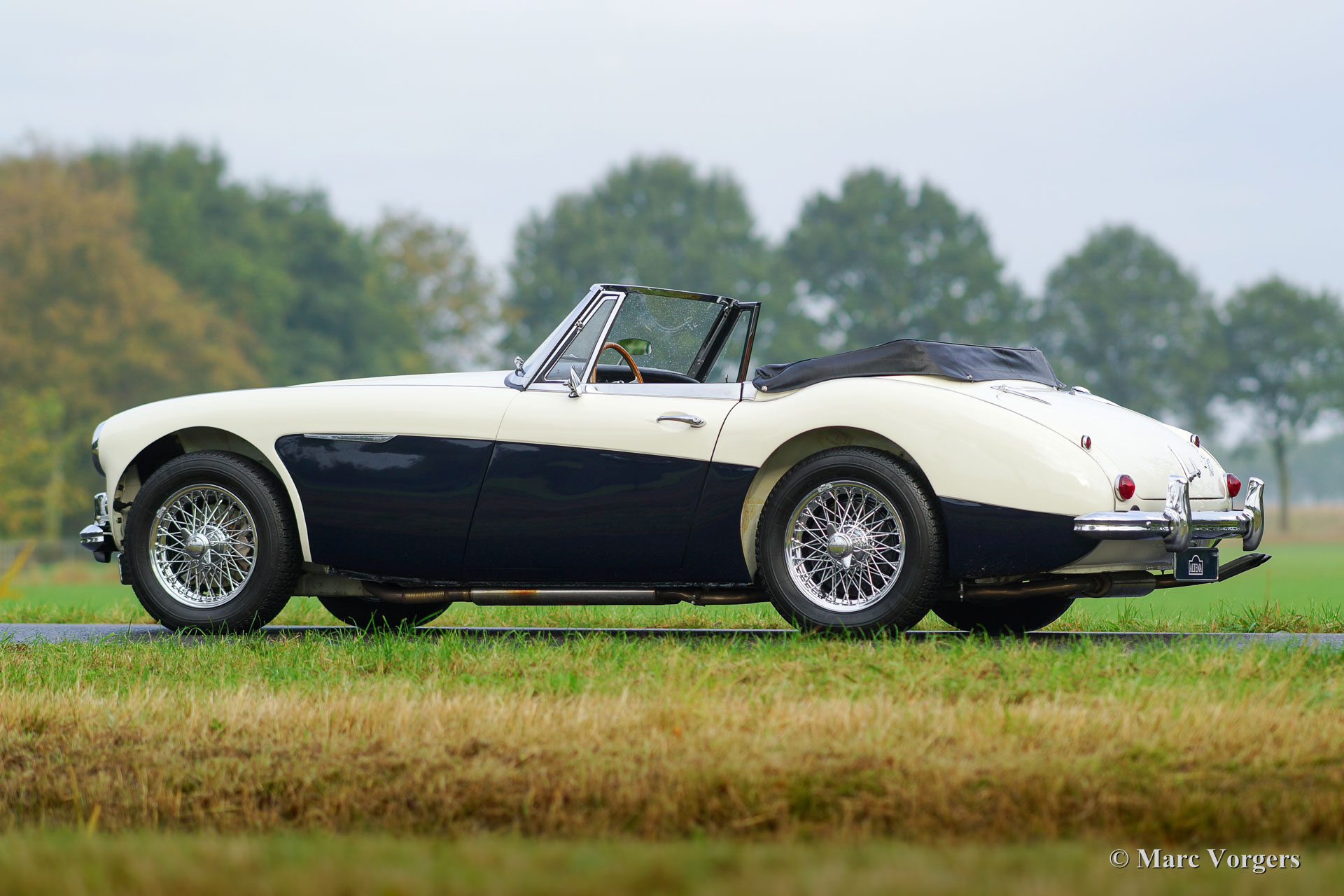 Austin Healey 3000 Mk III phase 1, year 1965. Chassis number HBJ8L300XX. Colour crème white over dark blue with a black leather interior and black carpet. Black vinyl hood and hood-cover. This fabulous ‘Big Healey’ was sold new in Colorado, USA. In the year 2004 the automobile was extensively restored and overhauled in the Netherlands. The car has driven only 3533 miles ever since. This fine Austin Healey is in excellent to superb condition and the car drives perfectly! The car features chrome wire wheels, AC generator (alternator), a dual circuit brake system, additional big Lucas spot lamps at the front, and a 70-litre aluminium petrol tank. The car comes complete with a Fiva Identity card. A beautiful ‘phase 1’ specimen!