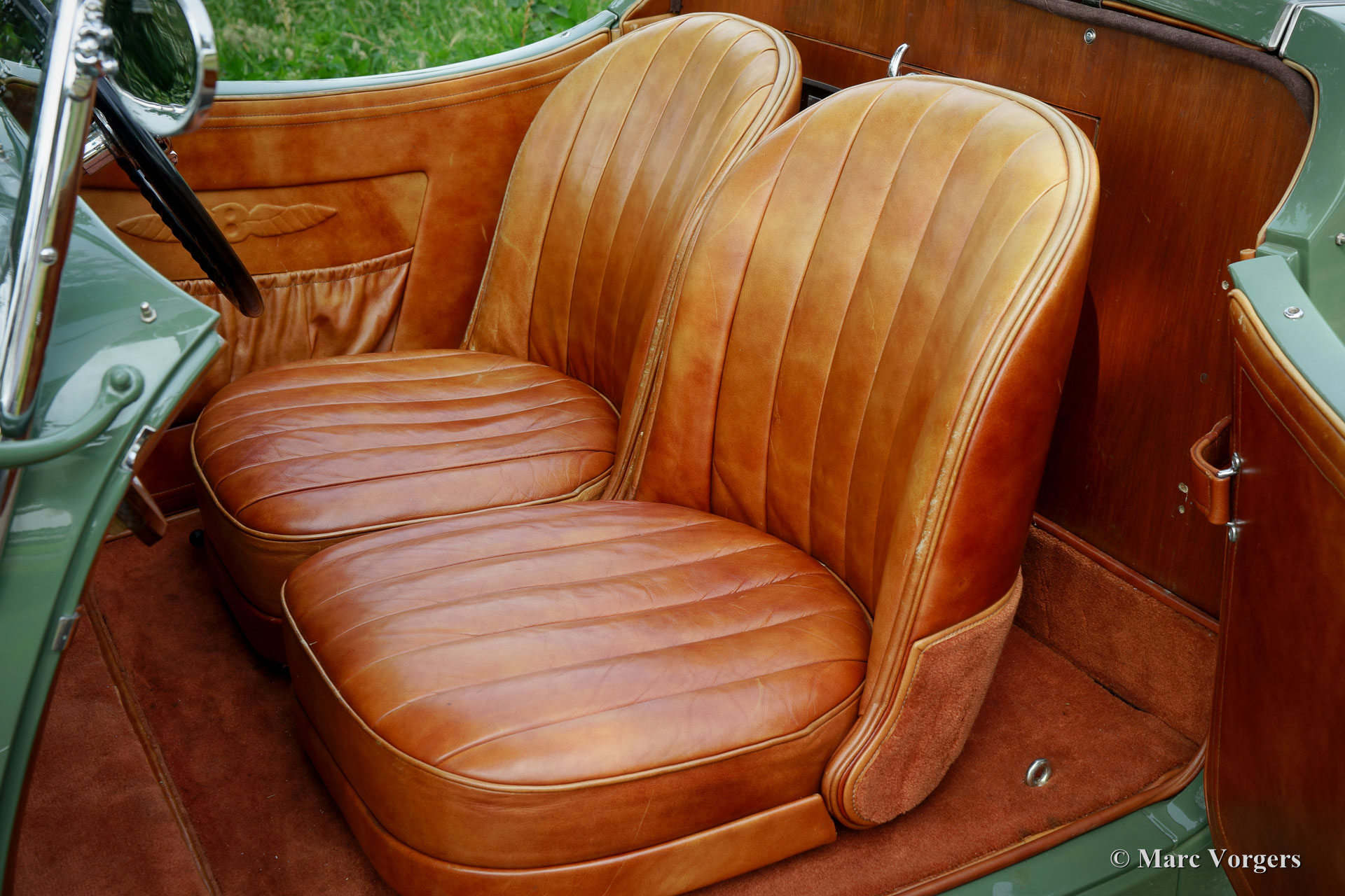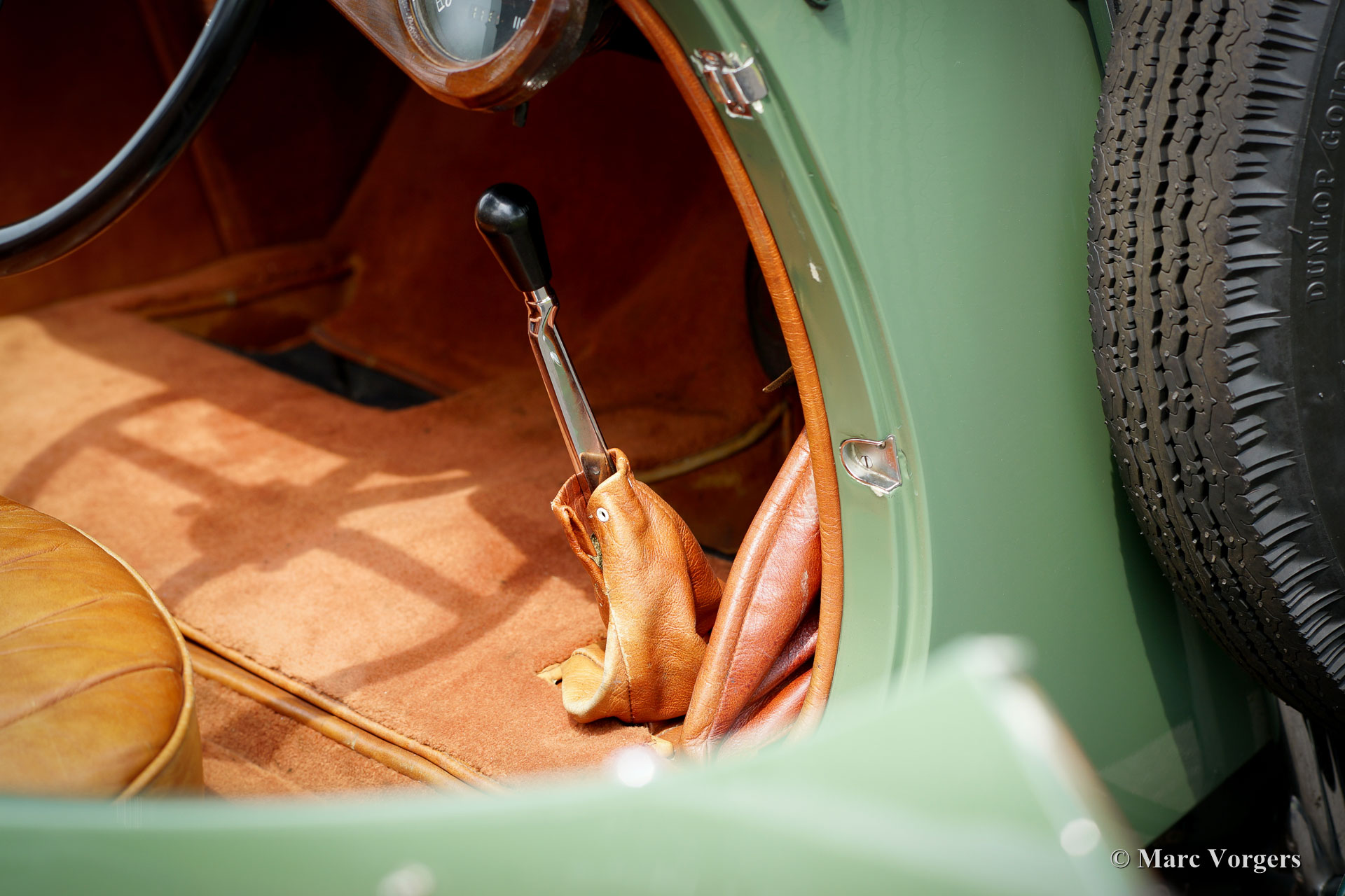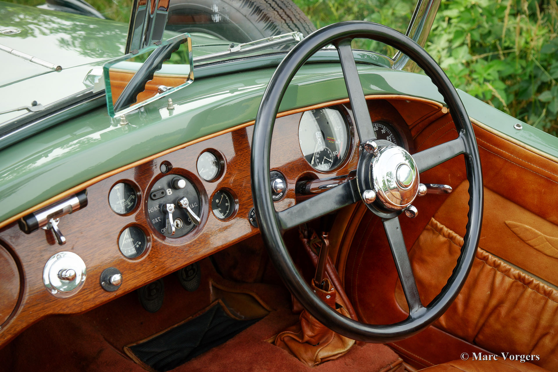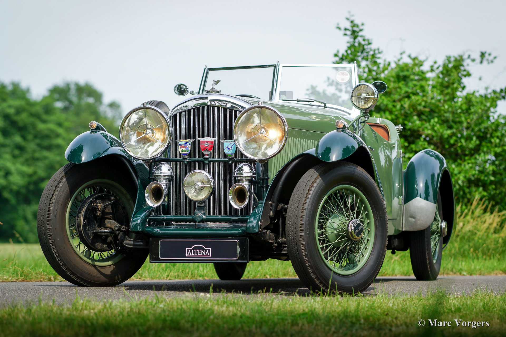 Bentley 3½ Litre Sports, year 1934. Colour two tone pale green/dark green with a cognac leather interior and matching carpet. Chassis number B111BL. This ‘Derby’ Bentley left the factory with an open tourer bodywork on 3 August 1934. The automobile was shipped to the first owner in South Africa. In the 1940ies the Bentley was shipped back to the UK. In the late 1980ies, early 1990ies the automobile was given the current beautiful two-seater sports bodywork by an English coach building firm. From this period a vast amount of restoration invoices are in file. This Bentley 3½ Litre Sports is in beautiful condition and the car drives absolutely majestic! The 1930ies Bentley slogan ‘The Silent Sports Car’ is very applicable indeed. The automobile feels rock solid and the car can be mastered and handled perfectly by seasoned motorists. This Bentley Sports is a sheer beauty in the masculine and rugged sense of the word. A highly desirable and unique Bentley.