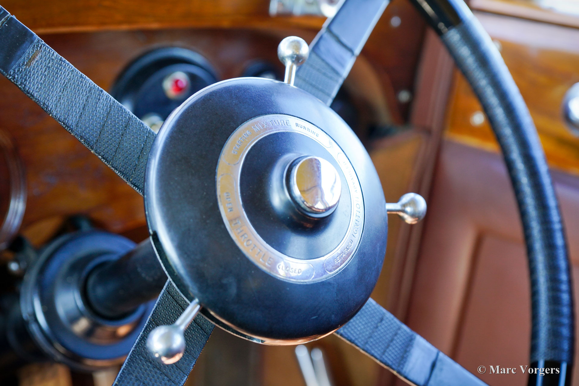 The Bentley 3 Litre was W.O. Bentley’s first design. The car was presented in 1919 but the first cars were sold in 1921. The four cylinder cars of rugged construction where in a class of their own for they combined the size and comfort of the big tourers and saloons with the road holding, and speed of the smaller sports- and racing cars. The Bentley was a true owner-driver car for the sporting motorist and connoisseur. The Bentley car could be had in three different types which were designated with three different radiator badges*. Red badge: short chassis speed model, Blue badge: the early short and then long chassis type for bespoke bodywork, Green badge: very rare and used for about eighteen 100 mph. These Green badge car won at Le Mans in 1924 and 1927 (Old Number Seven.) The 3-Litre was built from 1919 until 1929.