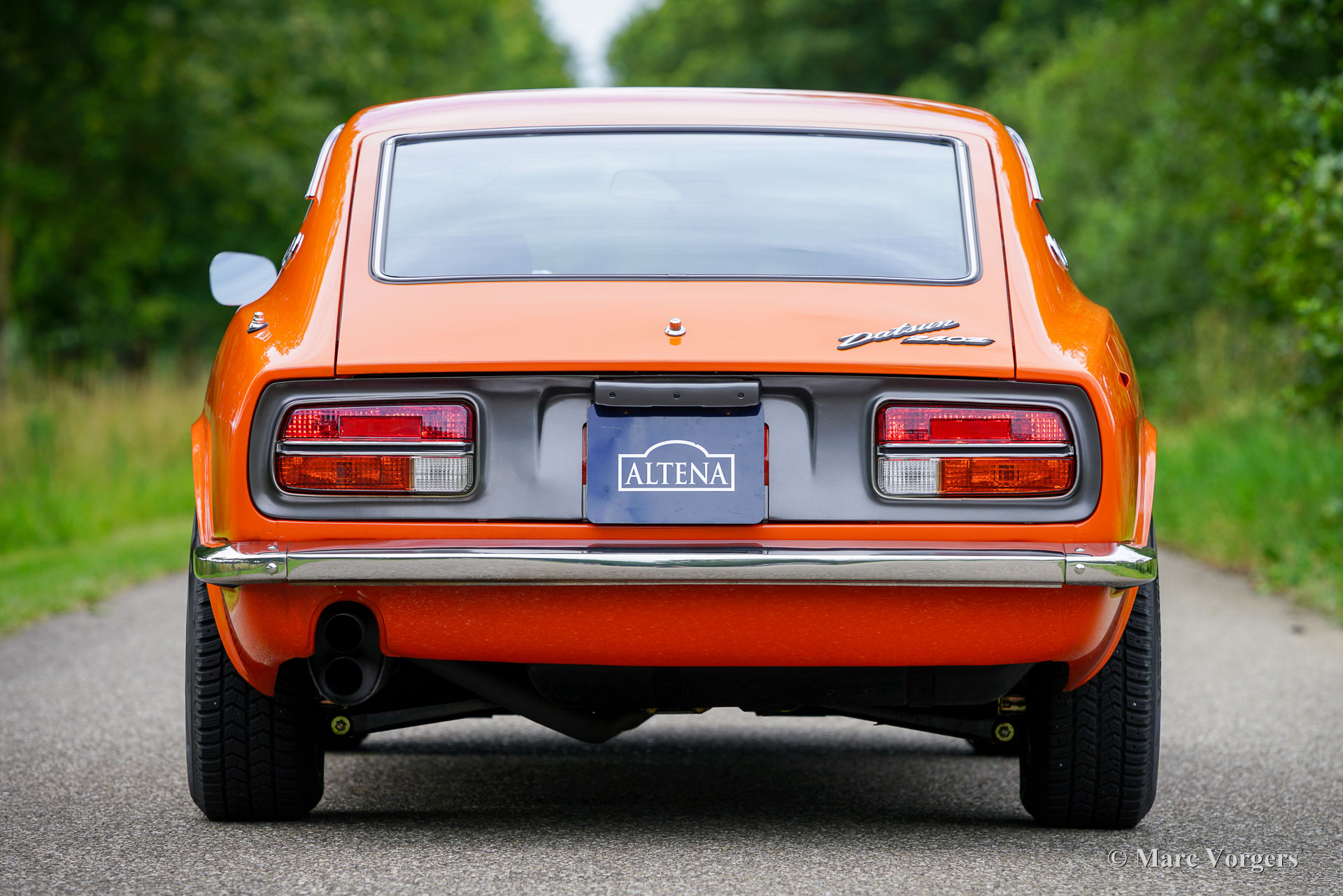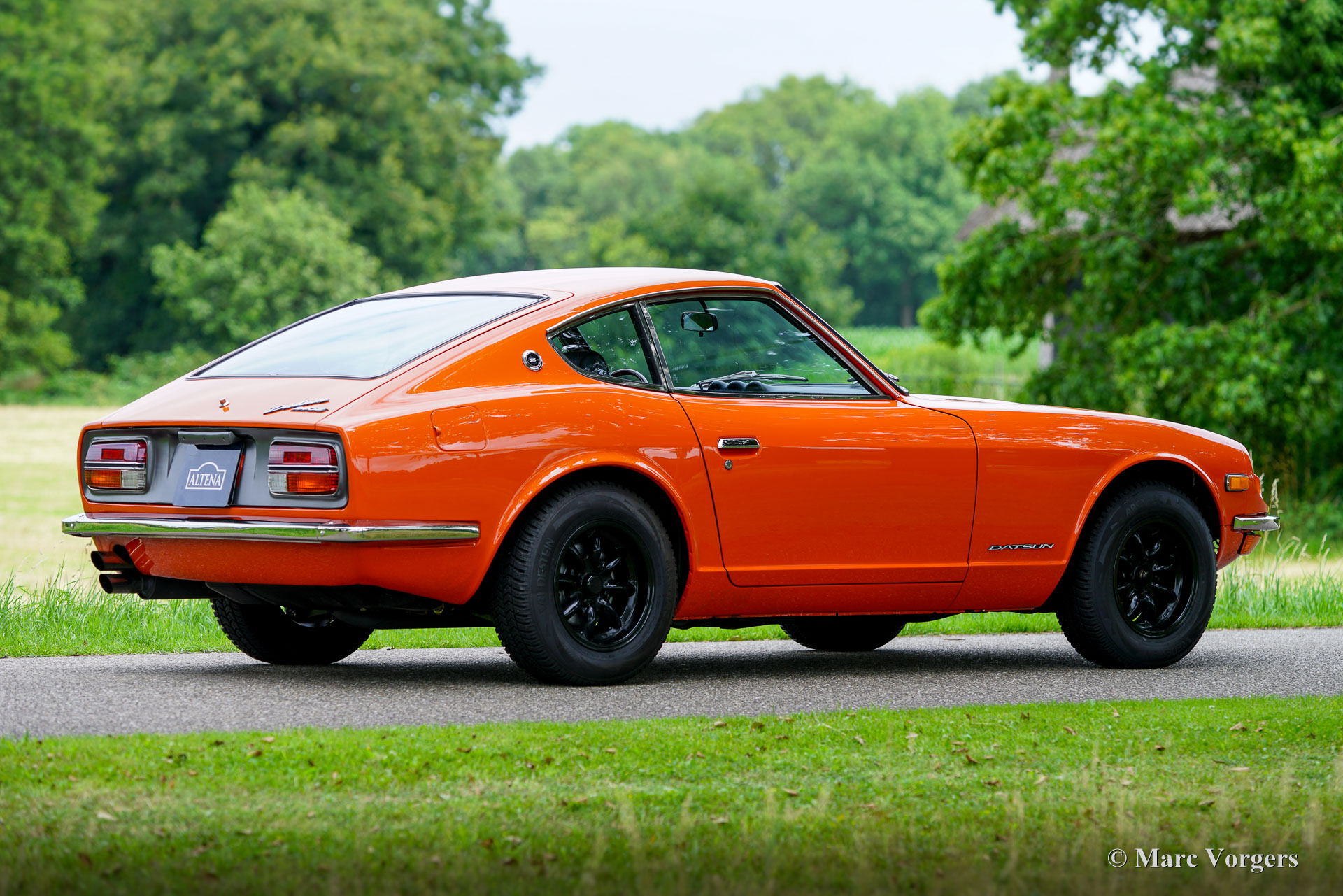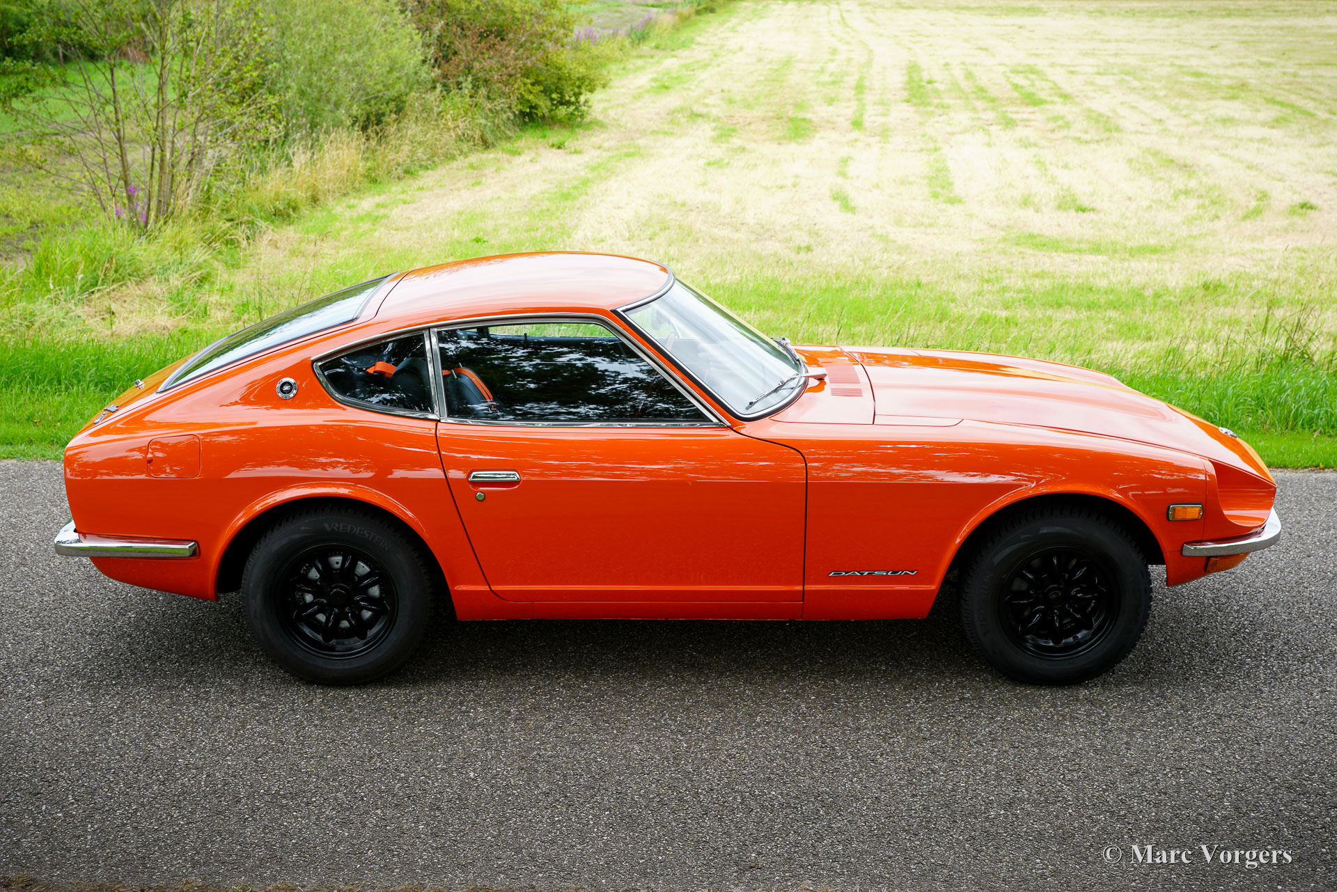 Datsun 240Z, year 1973. Exterior colour orange 918 combined with a black interior and black GB-style alloy wheels. This magnificent and iconic Datsun 240Z was sold new in California USA, in 2016 the car was imported in the Netherlands. In the period 2017-2018 the car was extensively restored to top condition by a Datsun specialist. The rust-free Californian car was restored to original specifications. Costs nor effort were spared aiming for perfection. The bodywork was given a new paint system from the bare metal (all original panels and a perfect panel fit!) and it shows the factory original spot welds. Everything was restored and overhauled, an extensive photo report of the works is present, as is a file with restoration invoices. During the restoration a few upgrades were installed. A five-speed gearbox, three twin-choke Weber carburettors, power steering, period correct bucket seats, four-point safety harnesses and a sports exhaust were added to upgrade the driving experience. Furthermore, this magnificent machine features black alloy GB-style rimes shod with Vredestein 185/70 14-inch tyres. This Datsun 240Z is in a superb top condition, and the car drives and handles perfectly. The ‘straight-six’ exhaust note is magnificent! It will be very hard to find another Datsun 240Z in a TOP restored condition. This is the automotive icon from Japan, loved by many around the globe. A highly desirable classic car that can be yours.