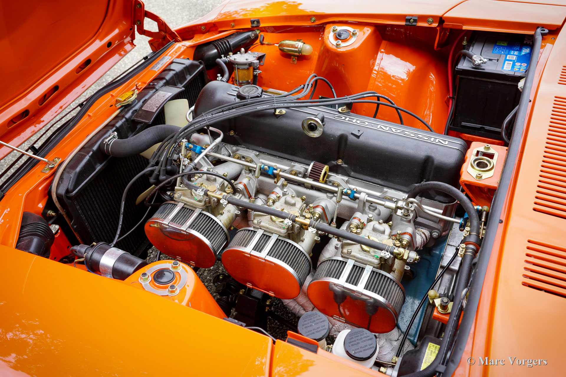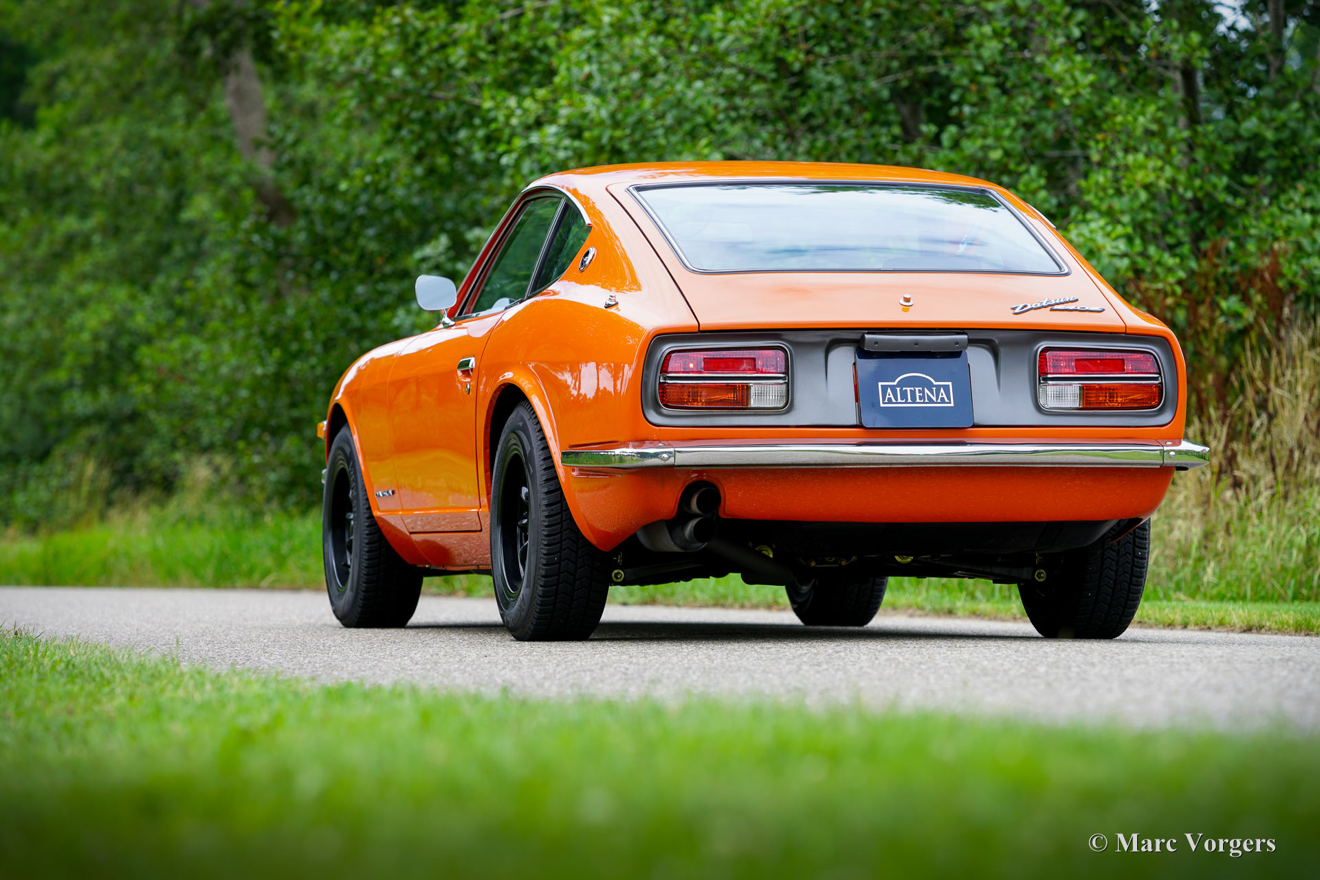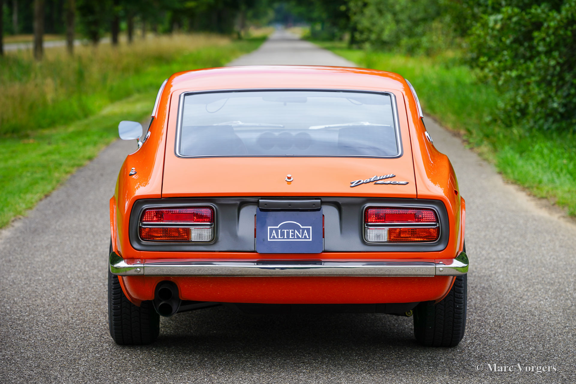 Datsun 240Z, year 1973. Exterior colour orange 918 combined with a black interior and black GB-style alloy wheels. This magnificent and iconic Datsun 240Z was sold new in California USA, in 2016 the car was imported in the Netherlands. In the period 2017-2018 the car was extensively restored to top condition by a Datsun specialist. The rust-free Californian car was restored to original specifications. Costs nor effort were spared aiming for perfection. The bodywork was given a new paint system from the bare metal (all original panels and a perfect panel fit!) and it shows the factory original spot welds. Everything was restored and overhauled, an extensive photo report of the works is present, as is a file with restoration invoices. During the restoration a few upgrades were installed. A five-speed gearbox, three twin-choke Weber carburettors, power steering, period correct bucket seats, four-point safety harnesses and a sports exhaust were added to upgrade the driving experience. Furthermore, this magnificent machine features black alloy GB-style rimes shod with Vredestein 185/70 14-inch tyres. This Datsun 240Z is in a superb top condition, and the car drives and handles perfectly. The ‘straight-six’ exhaust note is magnificent! It will be very hard to find another Datsun 240Z in a TOP restored condition. This is the automotive icon from Japan, loved by many around the globe. A highly desirable classic car that can be yours.