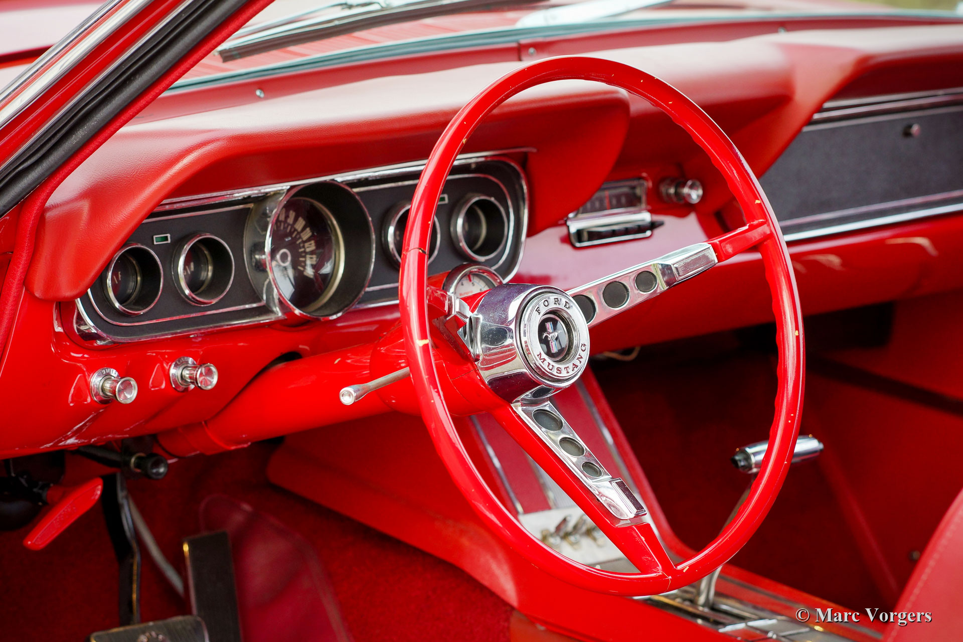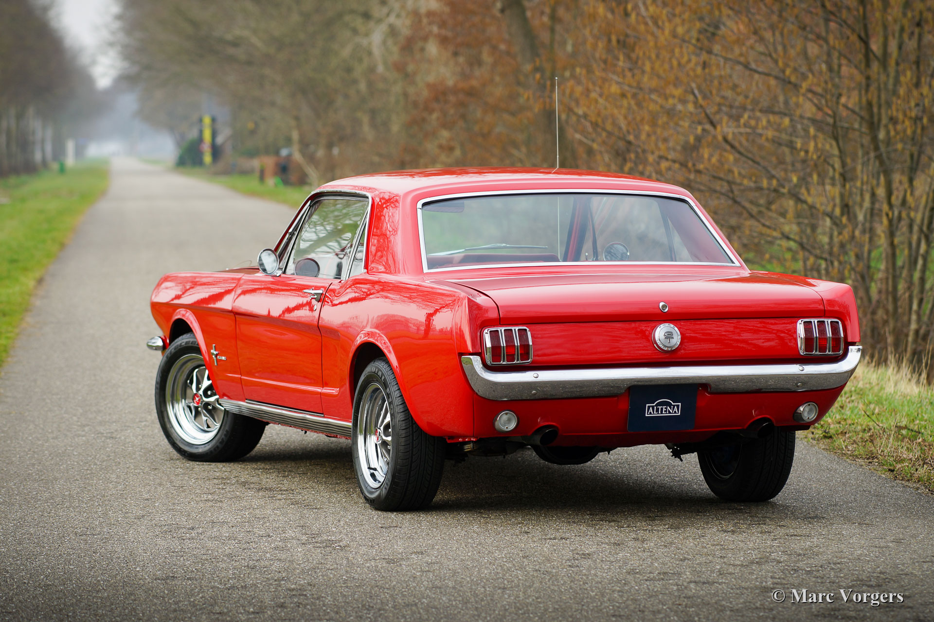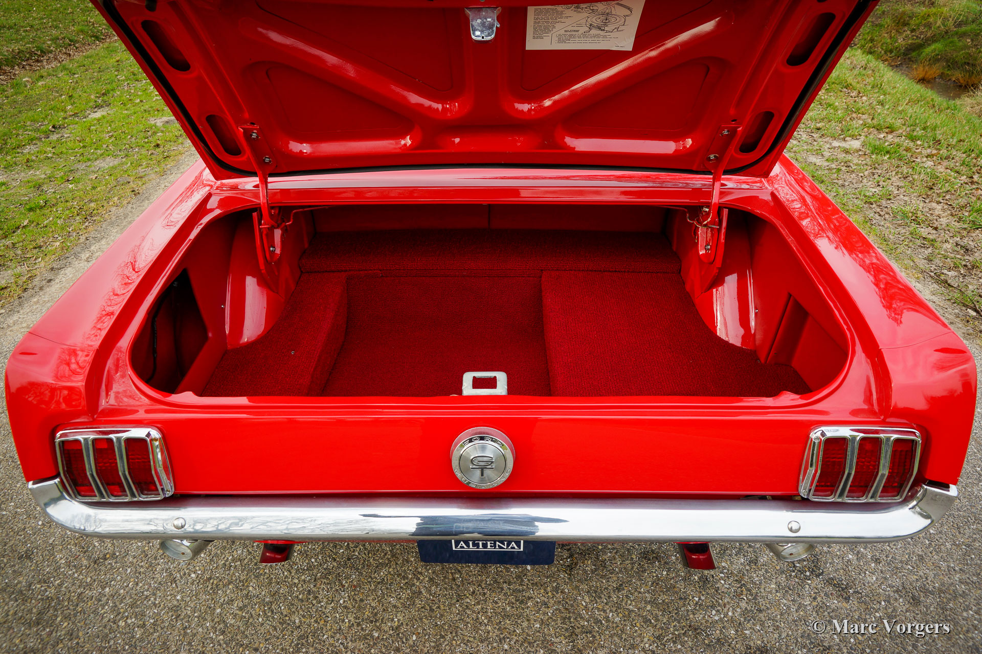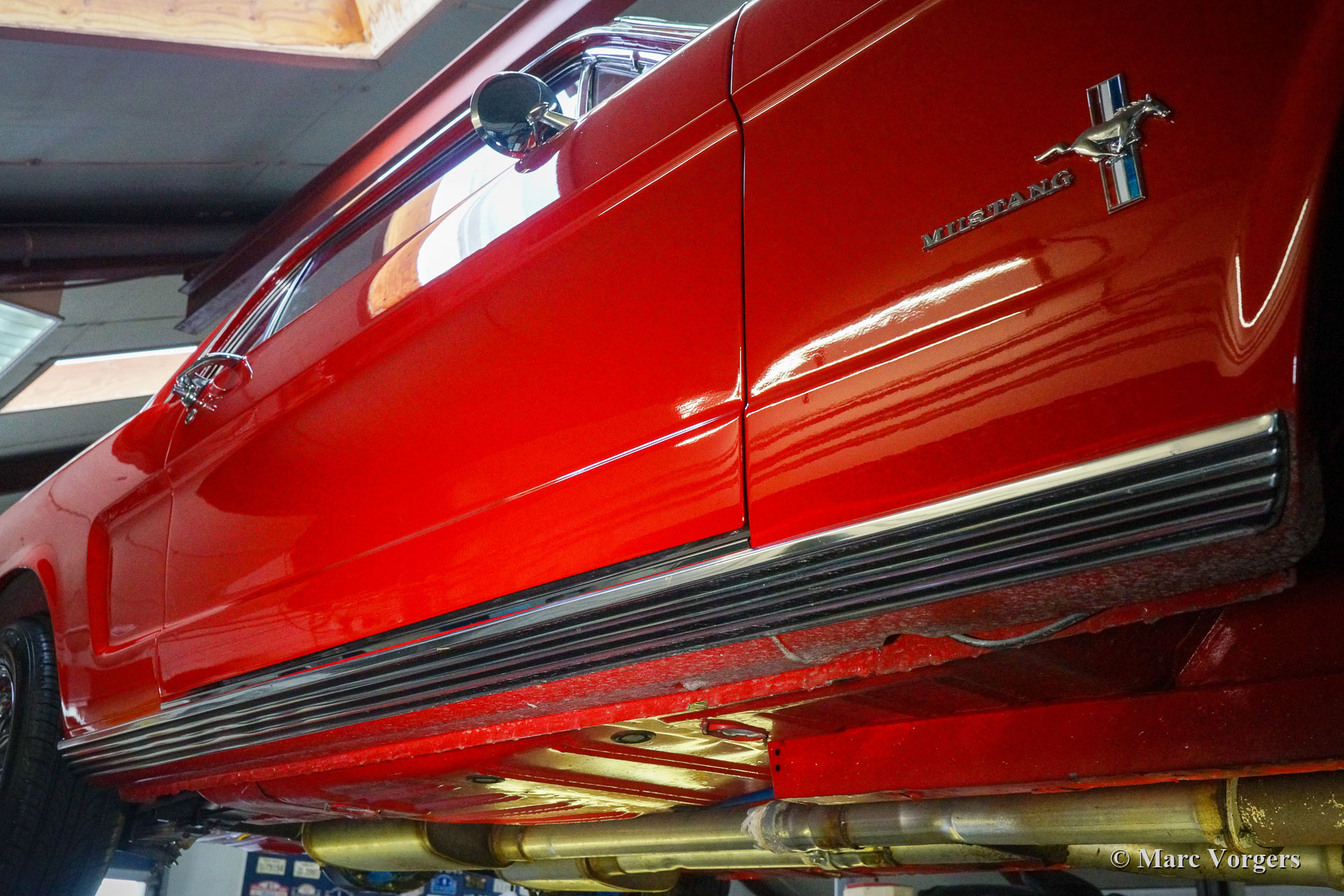 Ford Mustang Coupé, year 1966. Colour red combined with a red ‘Pony’ interior and red carpet. This gorgeous Ford Mustang was sold new in the USA where it was extensively restored in the years 2009 – 2011. The bodywork was restored from the bare metal and everything was restored, renewed and / or overhauled. The engine, gearbox, rear axle, and suspension were completely overhauled. A photo report and invoices of the restoration are present. The car was exported to the Netherlands in 2012. The car is in excellent to superb condition and it shows wonderful original details. The interior is in pristine condition, showing the original steering wheel and radio. You will only find a small tear in the headlining. The engine is a 5-Litre V8 unit which was up rated with cylinder heads and an intake manifold by Edelbrock. The engine is very powerful, and it sounds fantastic! The suspension was upgraded with special springs and shock absorbers giving a firmer ride. Furthermore, the car is fitted with tinted glass, an automatic 3-speed gearbox, and gorgeous original wheels with brand new tires. A lot of money was invested to get this Ford Mustang in this wonderful condition, a highly desirable example ready to enjoy to the fullest!